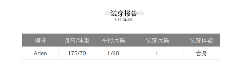 China (cm) 165 / 88-90 170 / 96-98 175 / 108-110 180 / 118-122 185 / 126-130
