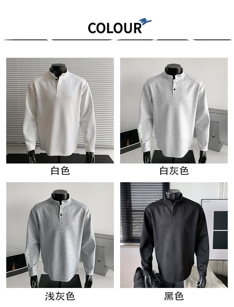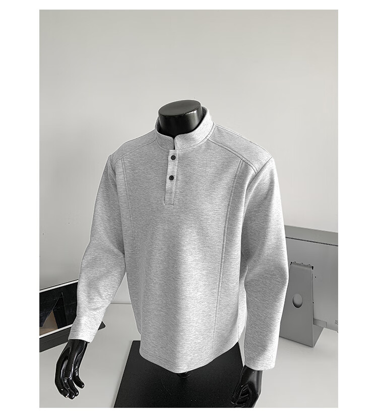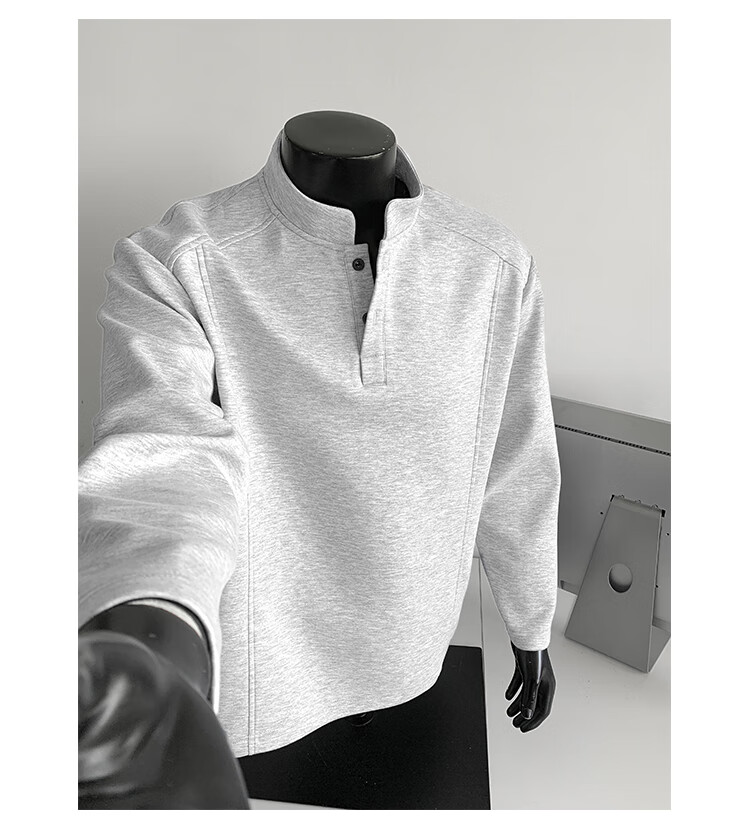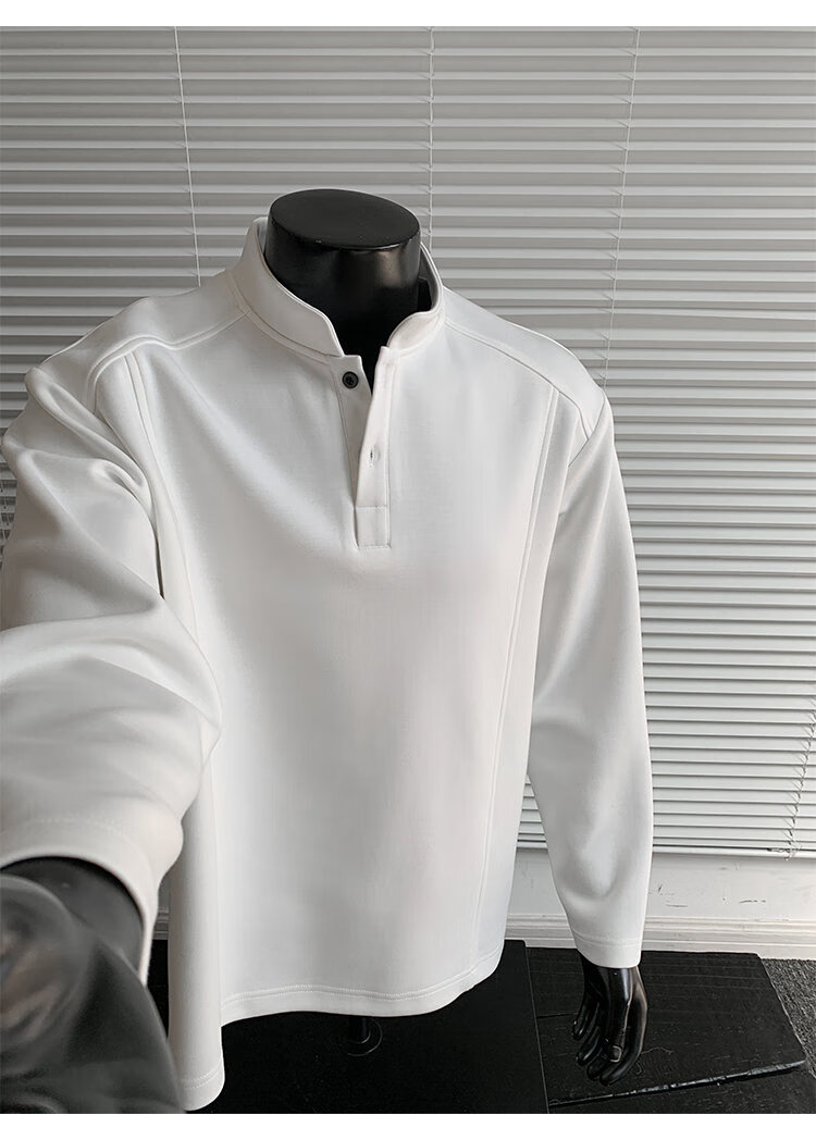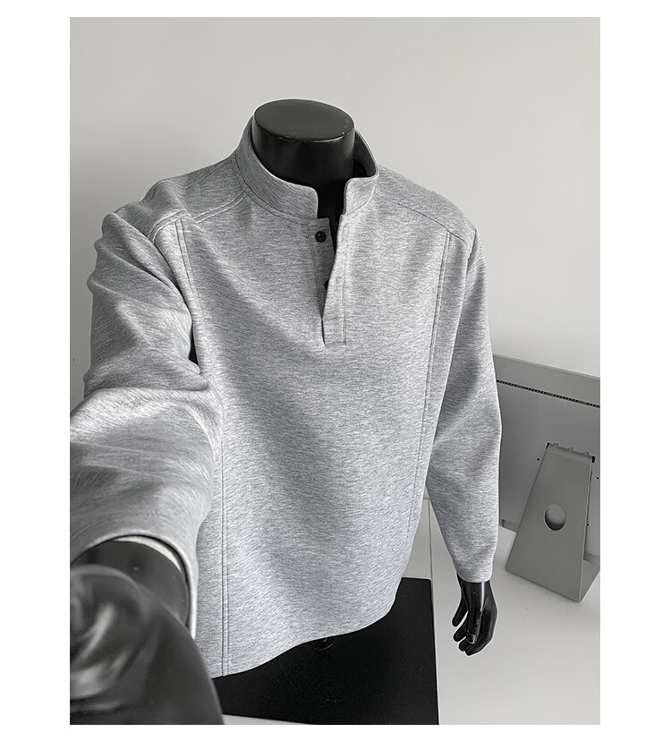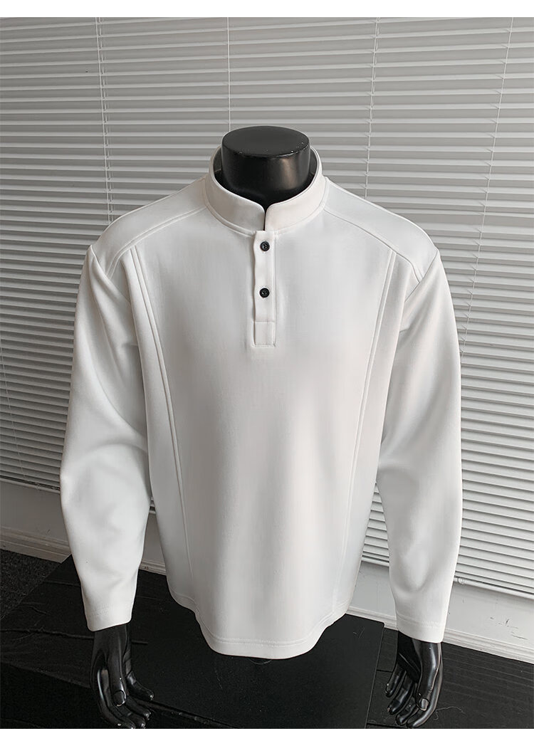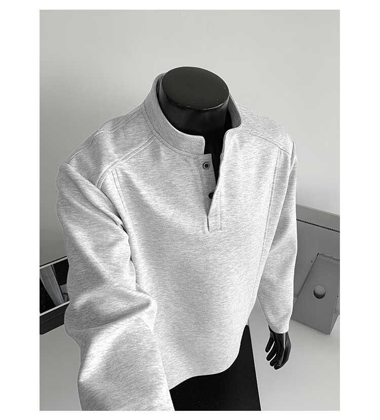 Introducing Henry collar, right shoulder, composite heavyweight long-sleeved T-shirt for men, autumn loose large size casual bottoming shirt, boys' clothes, white gray 4XL
