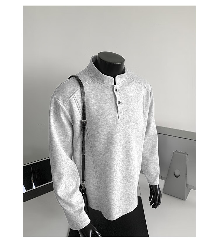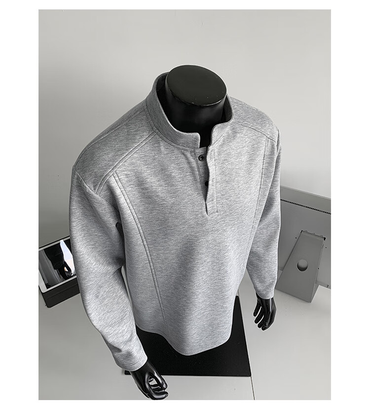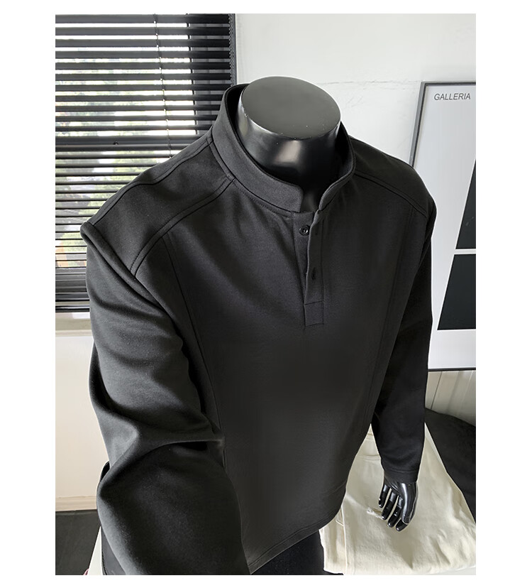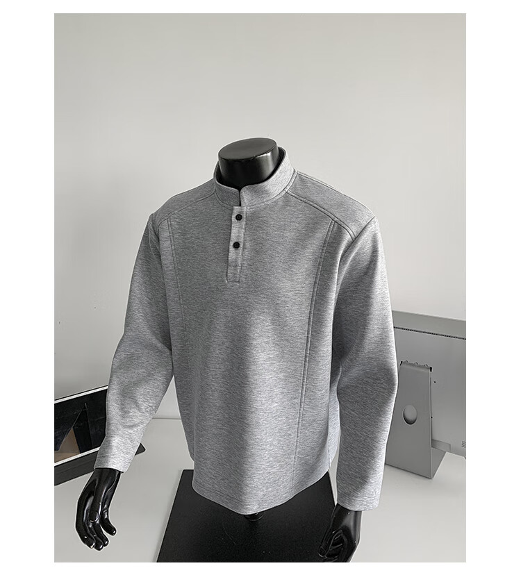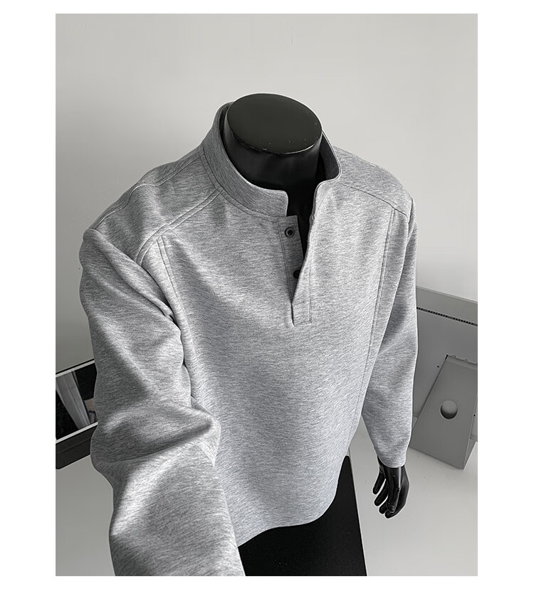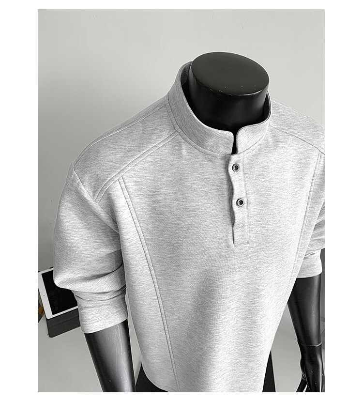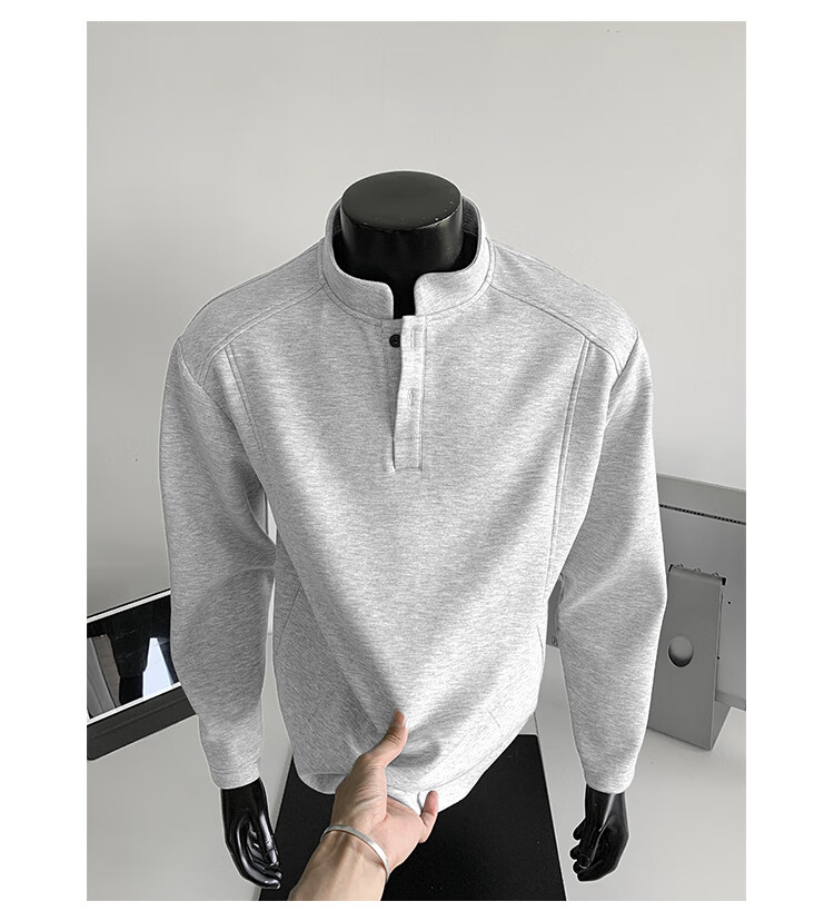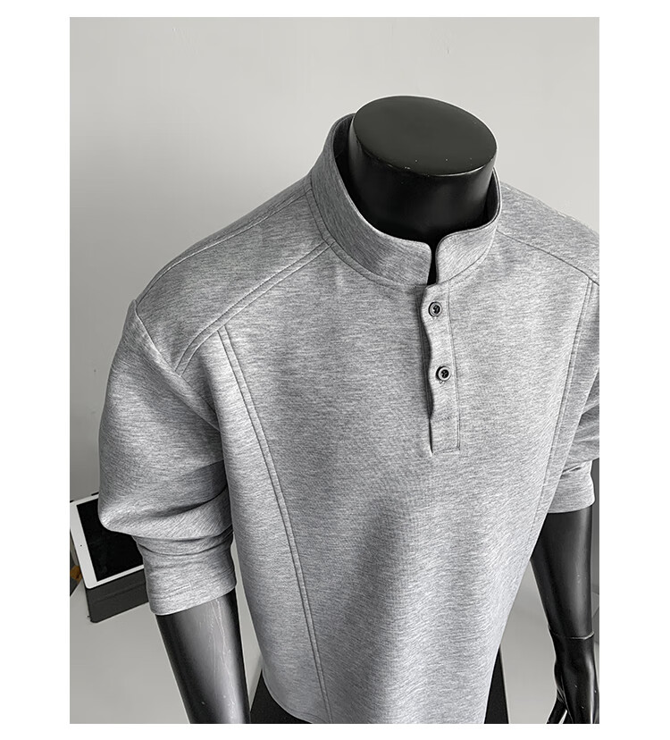 Introducing Henry collar, right shoulder, composite heavyweight long-sleeved T-shirt for men, autumn loose large size casual bottoming shirt, boys' clothes, white gray 4XL