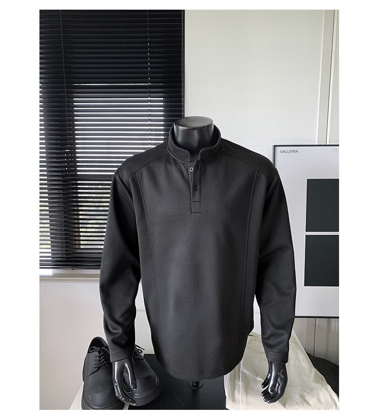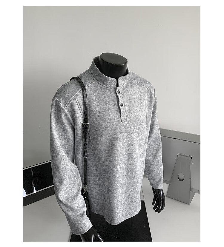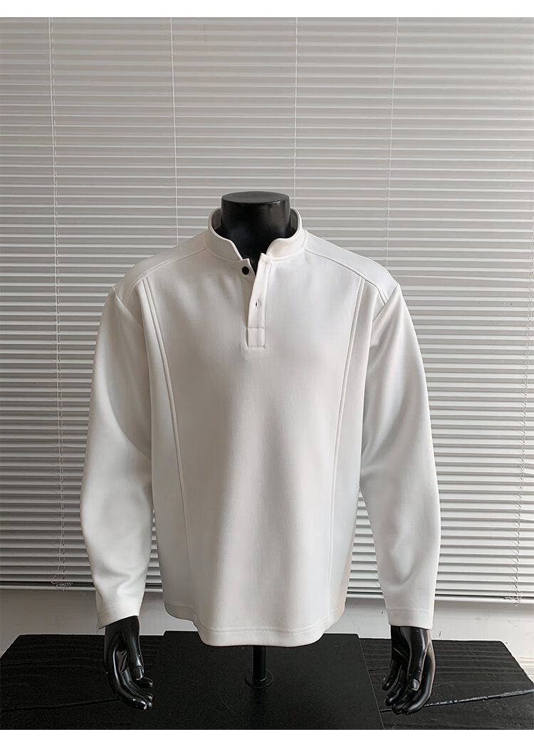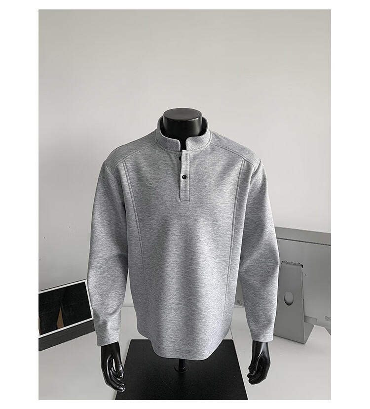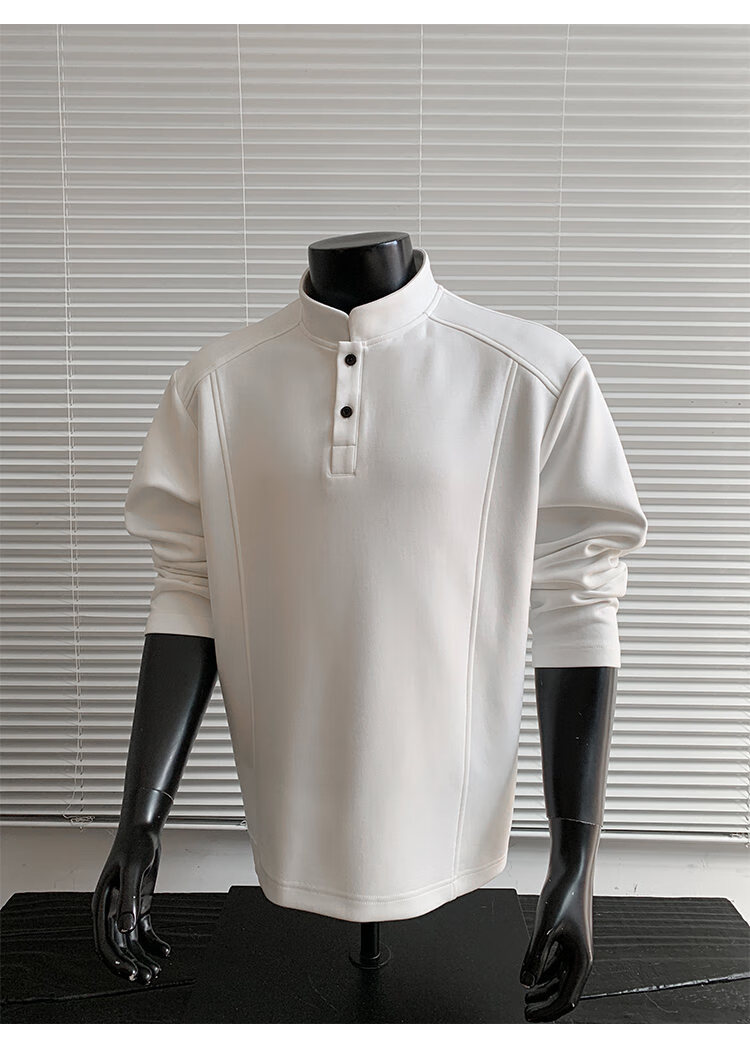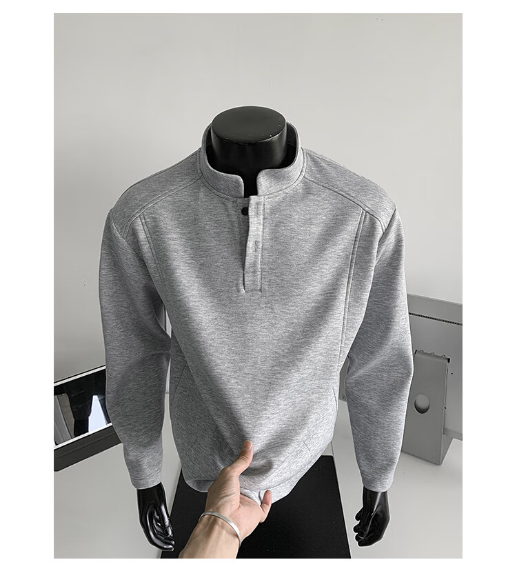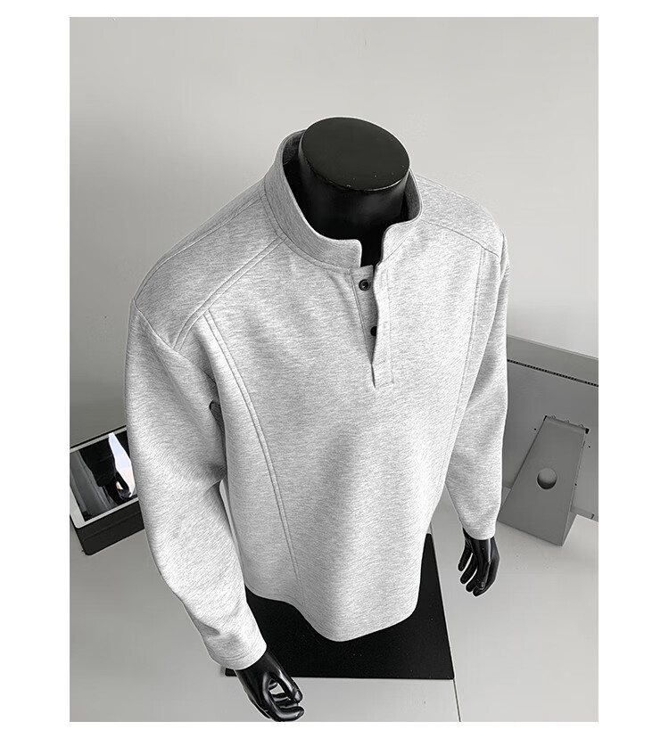 Introducing Henry collar, right shoulder, composite heavyweight long-sleeved T-shirt for men, autumn loose large size casual bottoming shirt, boys' clothes, white gray 4XL