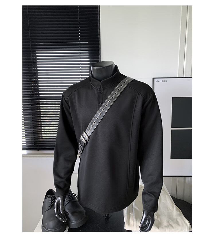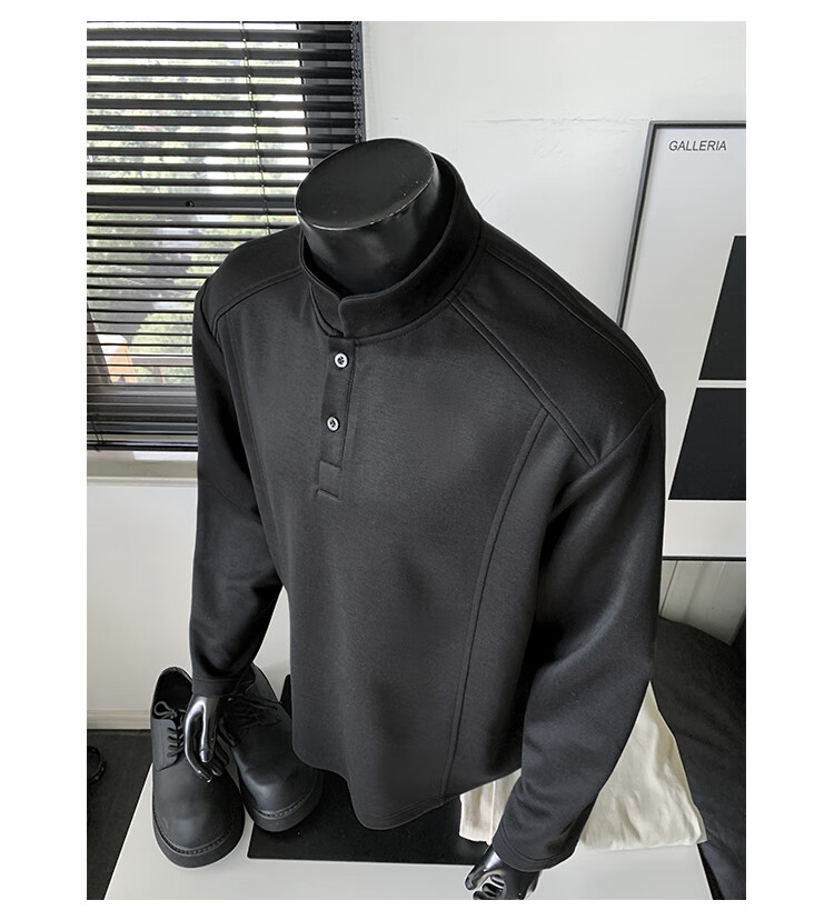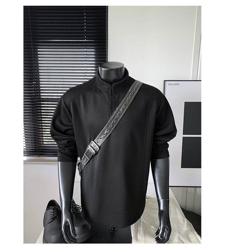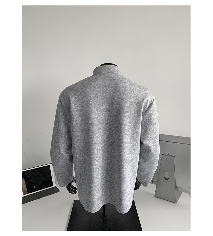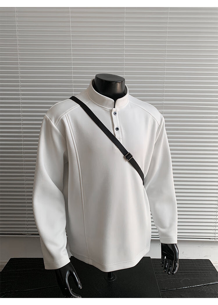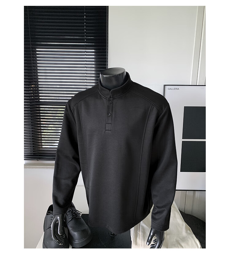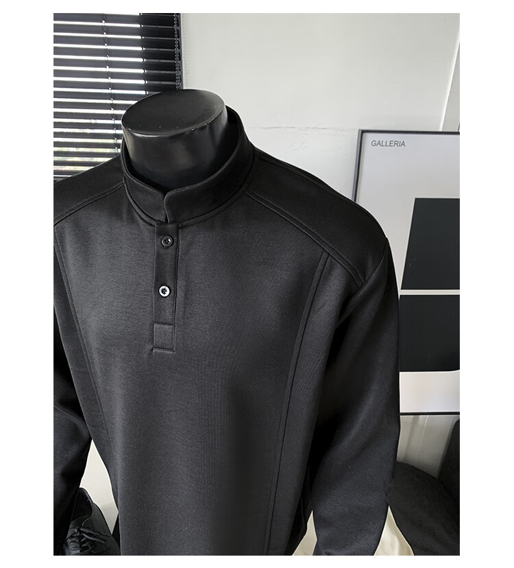 Introducing Henry collar, right shoulder, composite heavyweight long-sleeved T-shirt for men, autumn loose large size casual bottoming shirt, boys' clothes, white gray 4XL