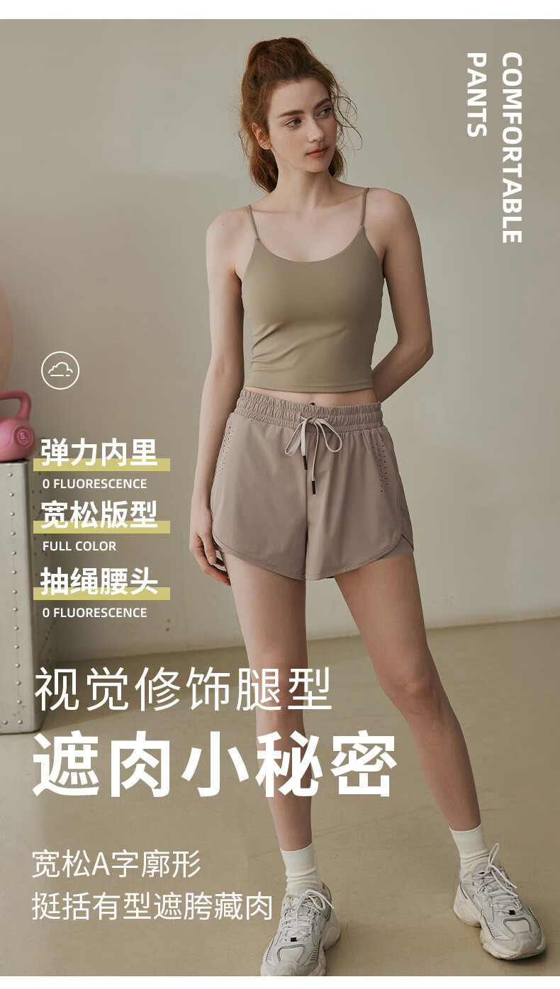Women's summer sports shorts, loose running outer wear, anti-exposure fitness clothing set, Pilates training yoga pants, Haiyan Gray M
