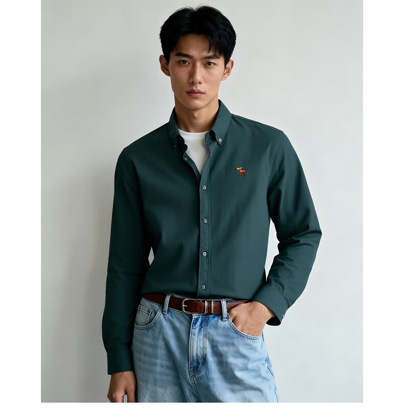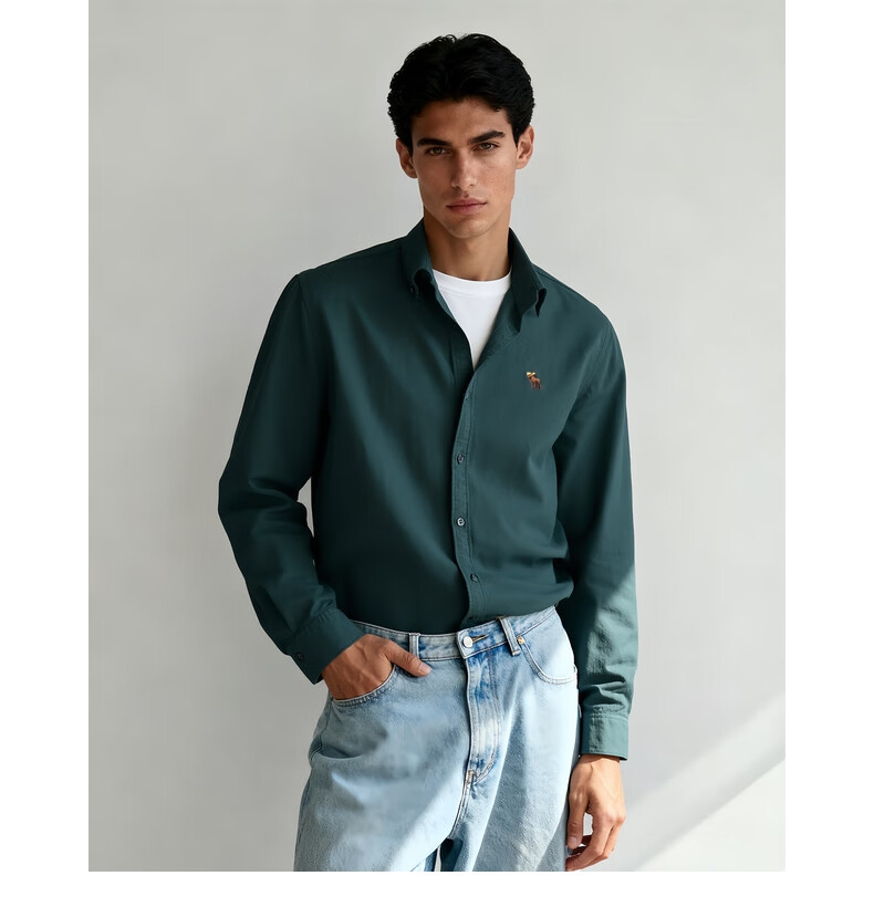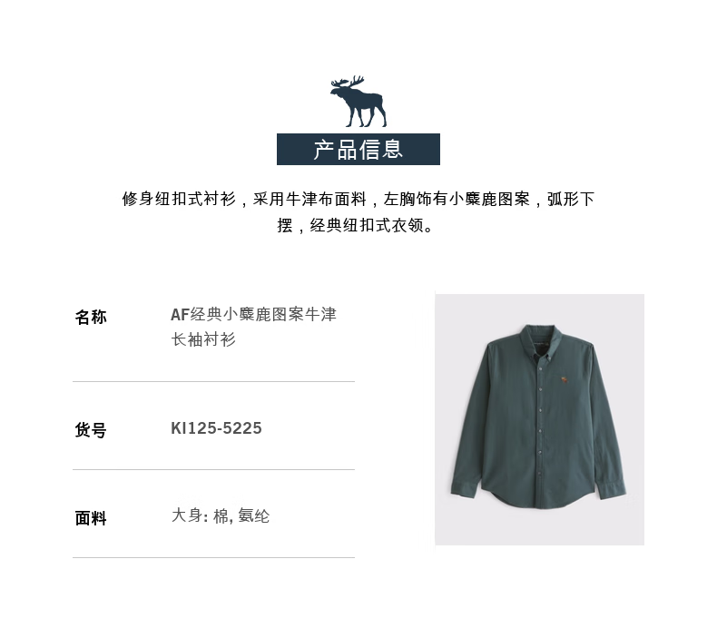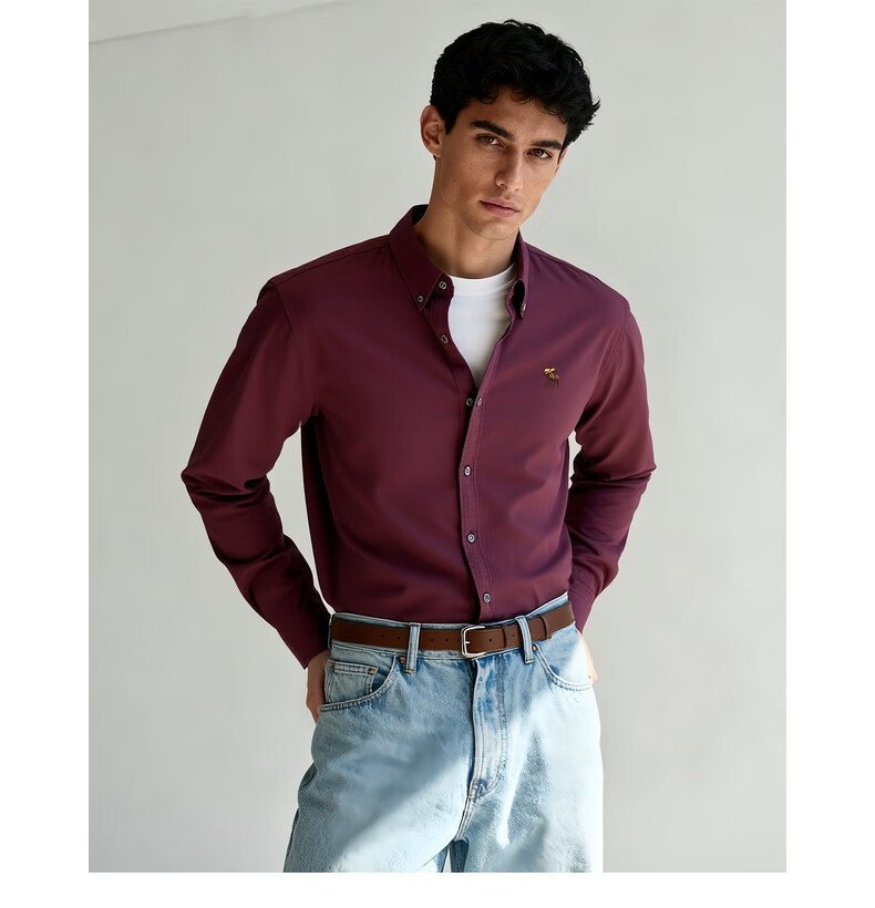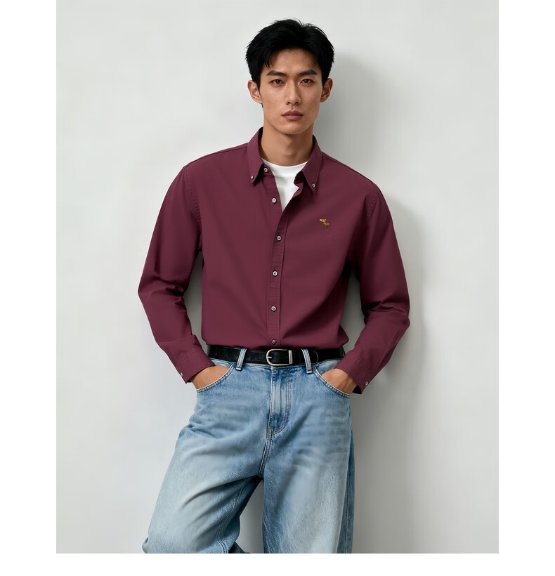 Abercrombie & Fitch Oxford shirt small elk pattern slim long-sleeved shirt 25 autumn men's 125-5225 purple M (180/100A)