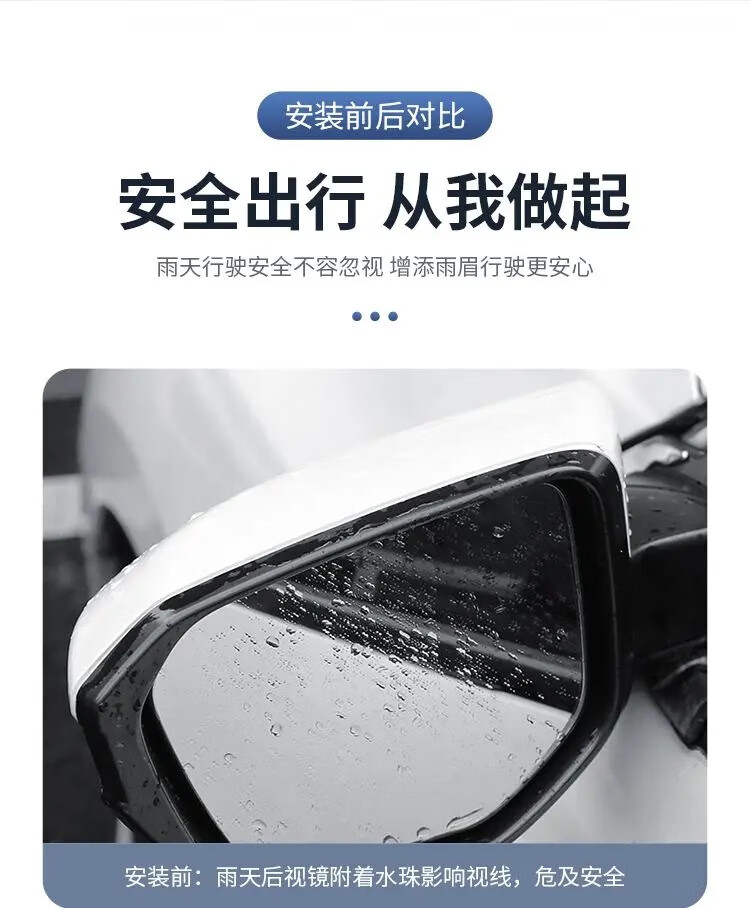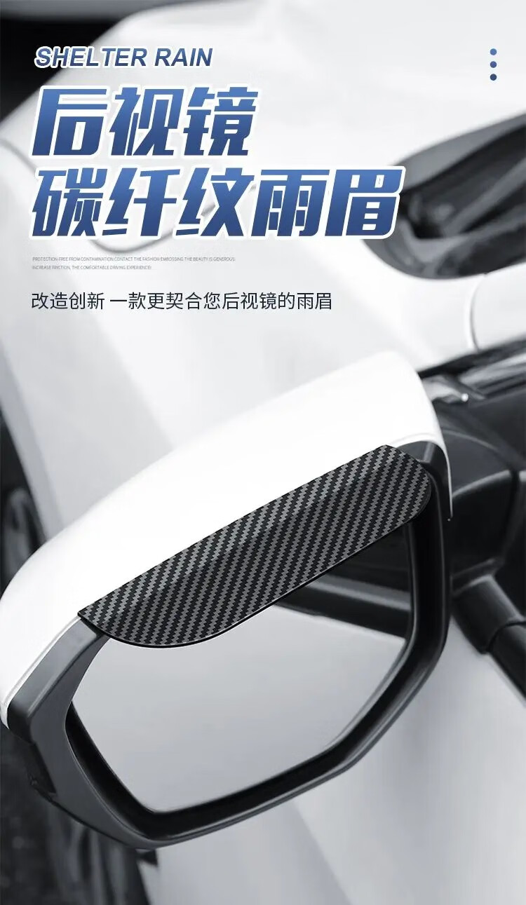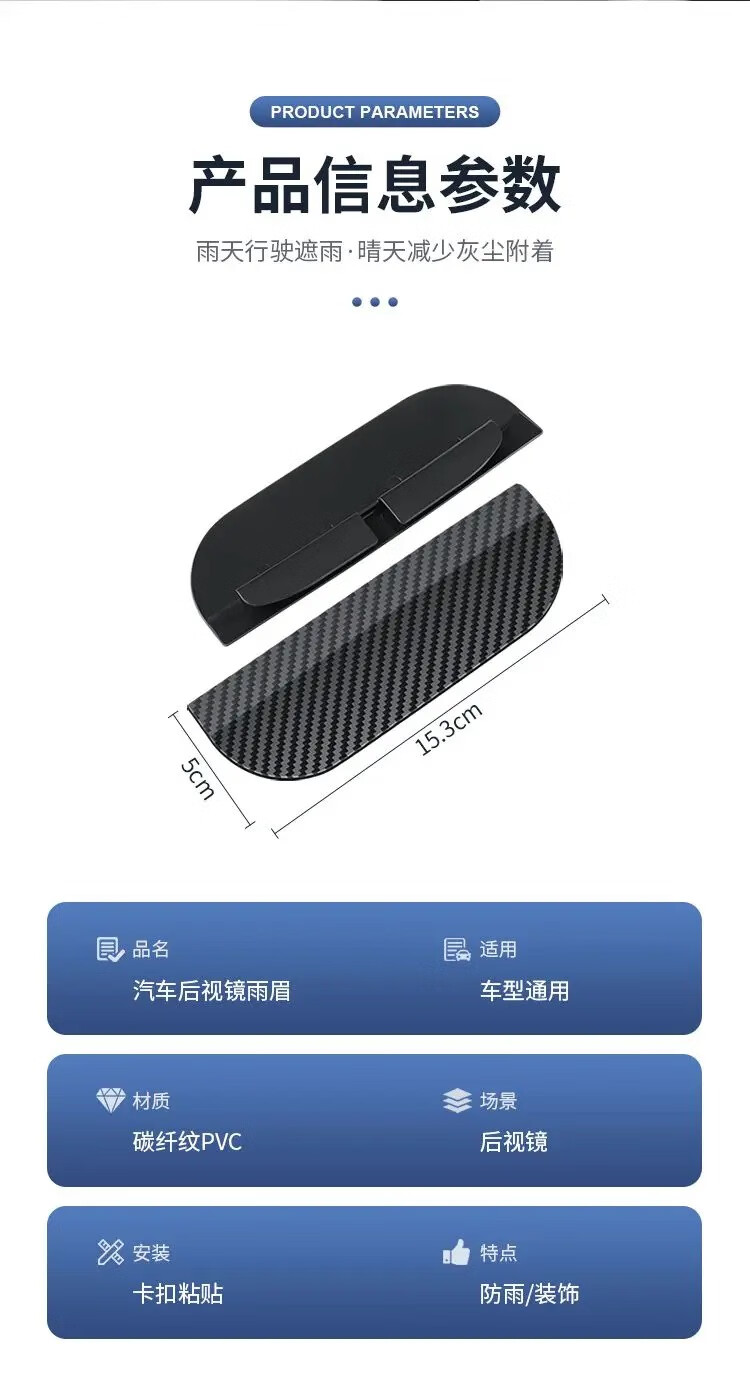 Car rearview mirror, rain-proof and rain-eyebrow snap-on rain shield, essential car accessory, rain shield, rain shield, black carbon fiber pattern, upgraded snap-on type, Changan pair