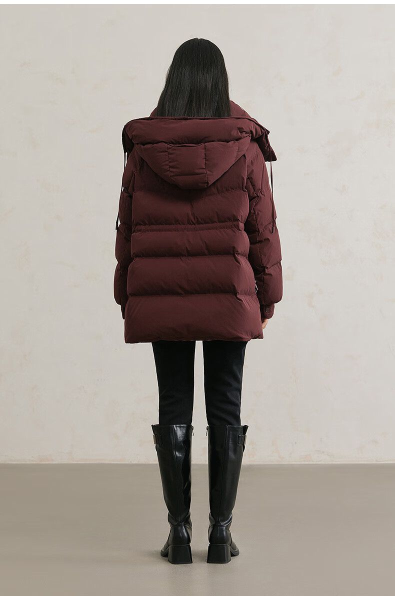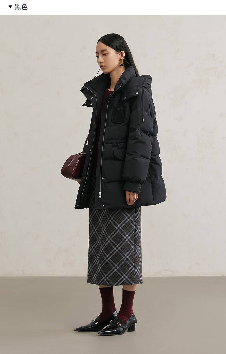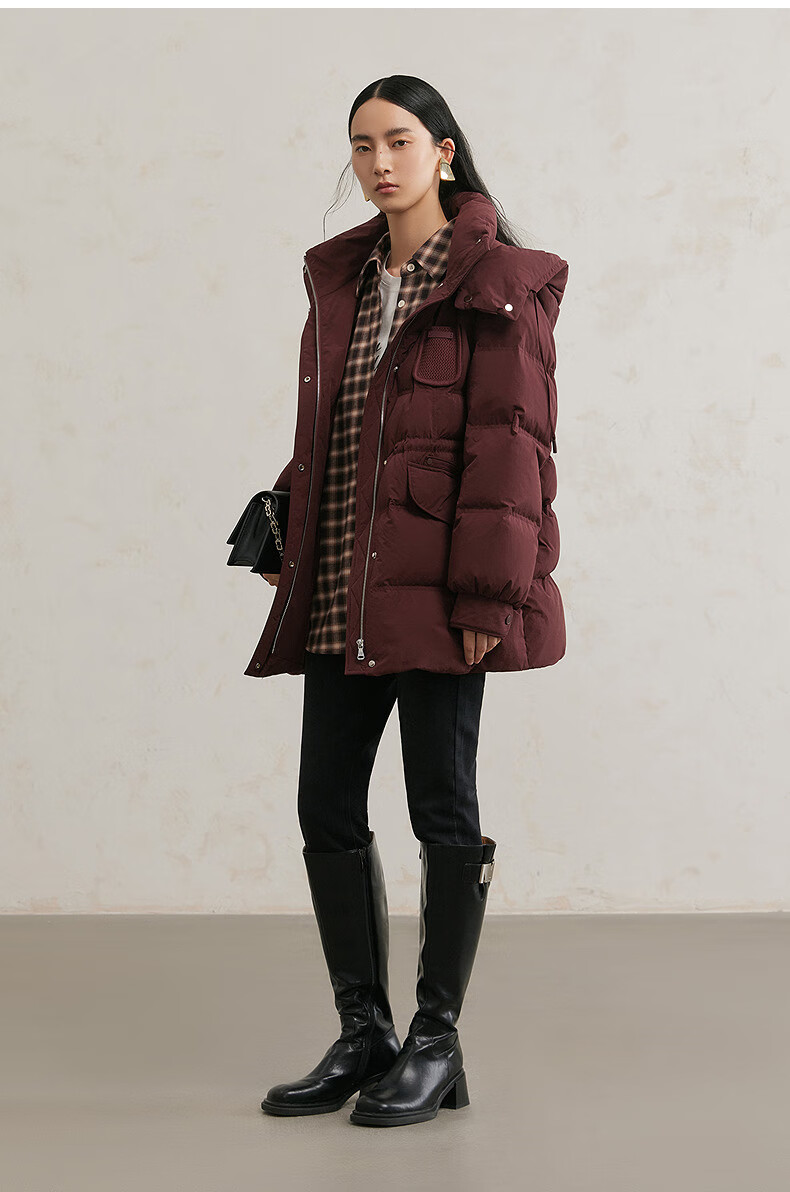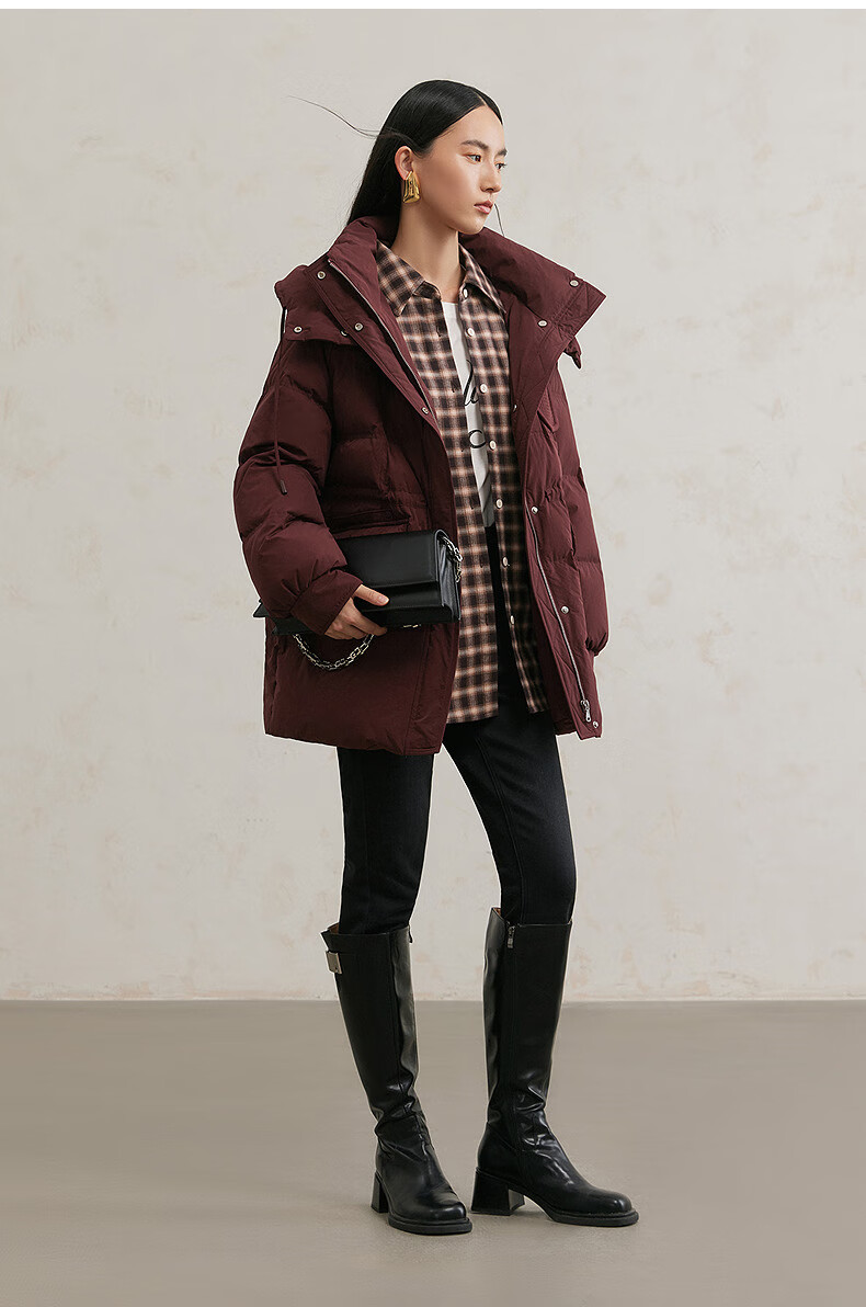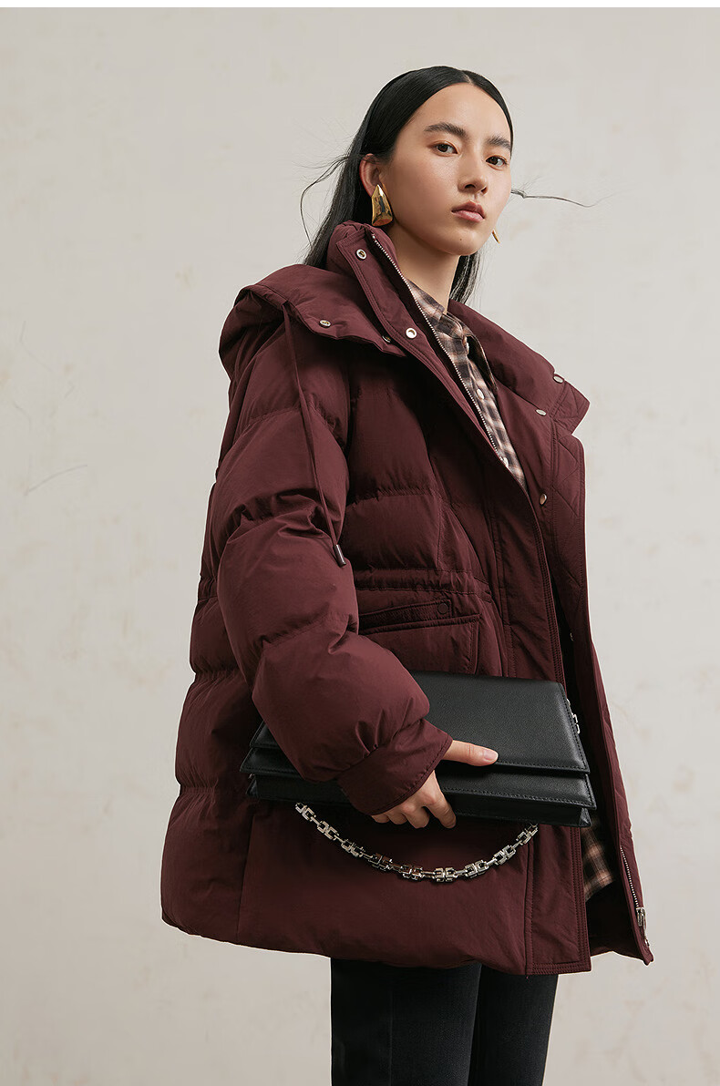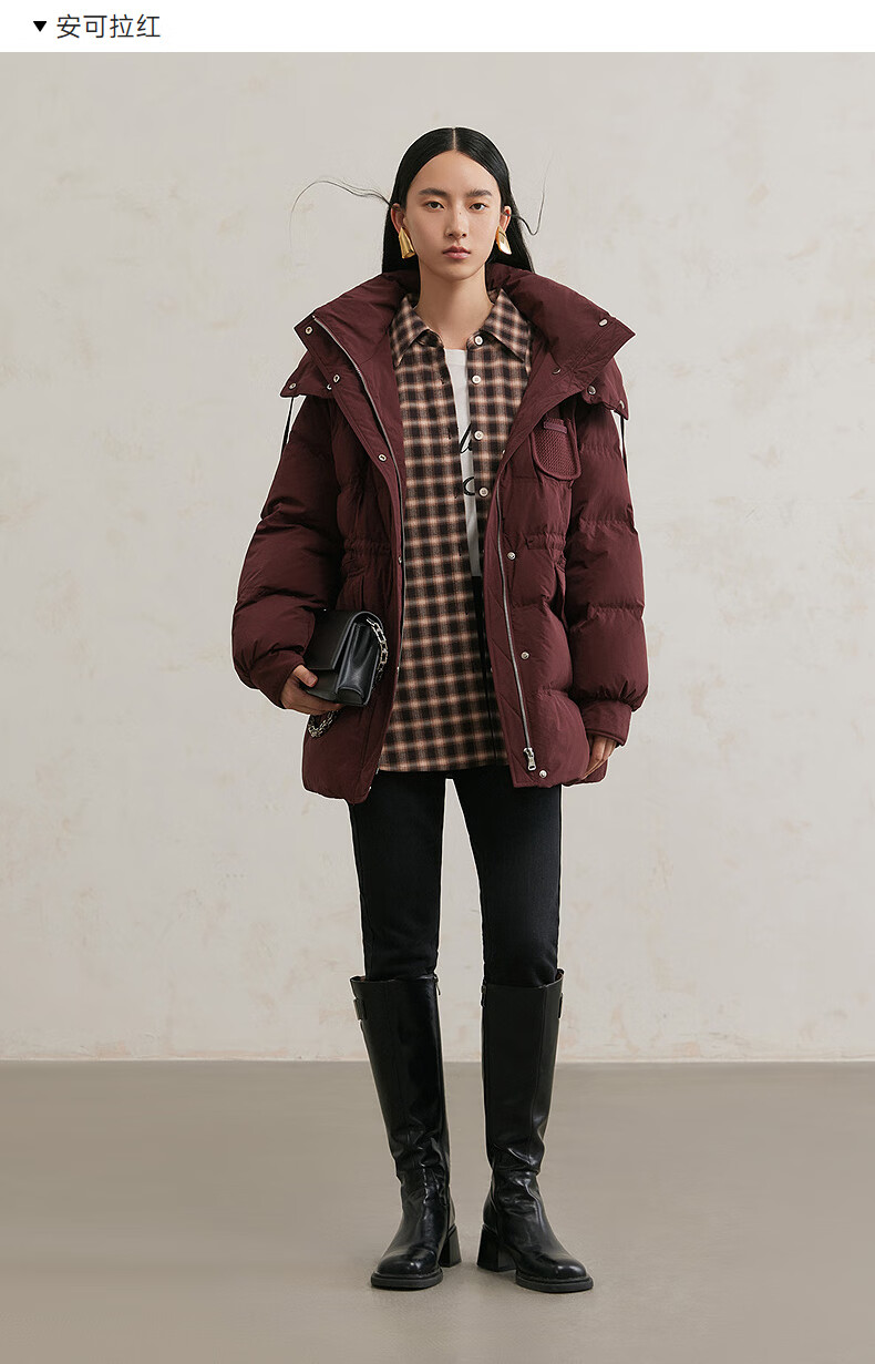 NEELLY Nali Shopping Mall's new winter style hooded mid-length casual commuter down jacket for women 90% white duck down Ankola red S