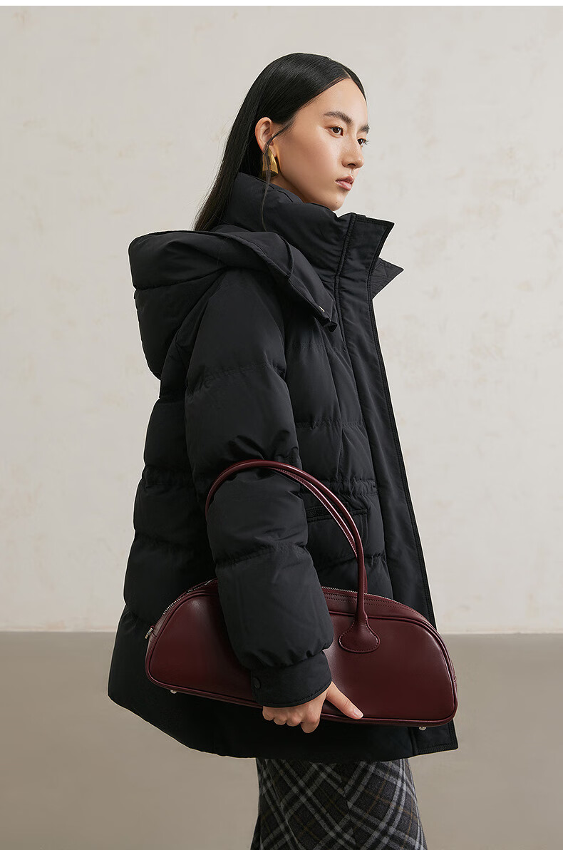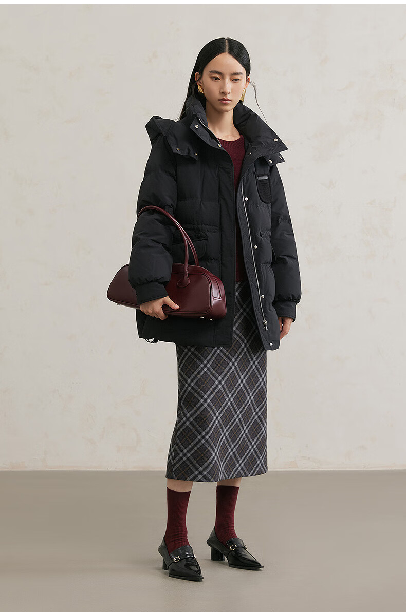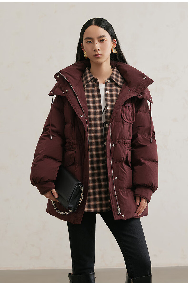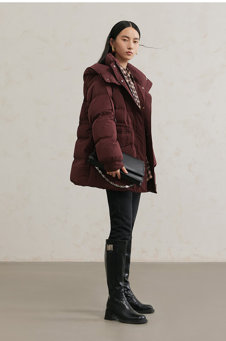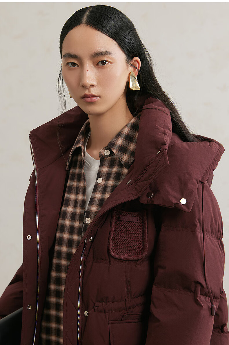 NEELLY Nali Shopping Mall's new winter style hooded mid-length casual commuter down jacket for women 90% white duck down Ankola red S
