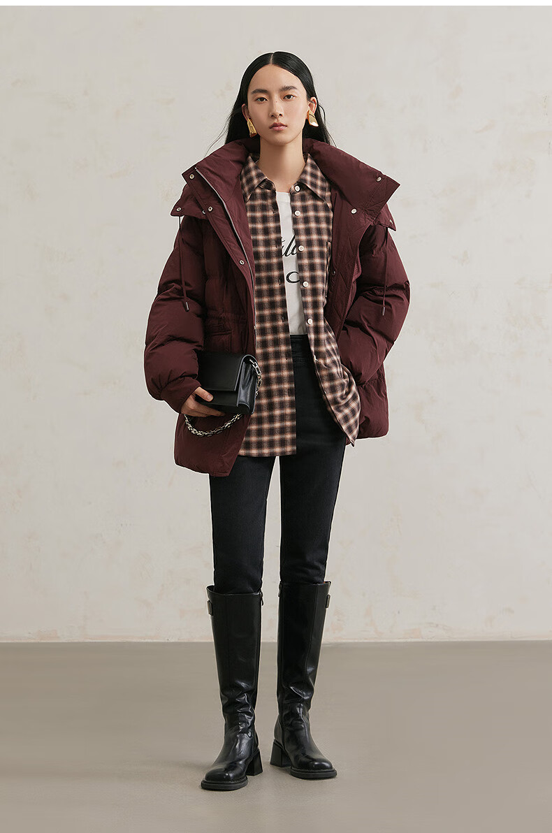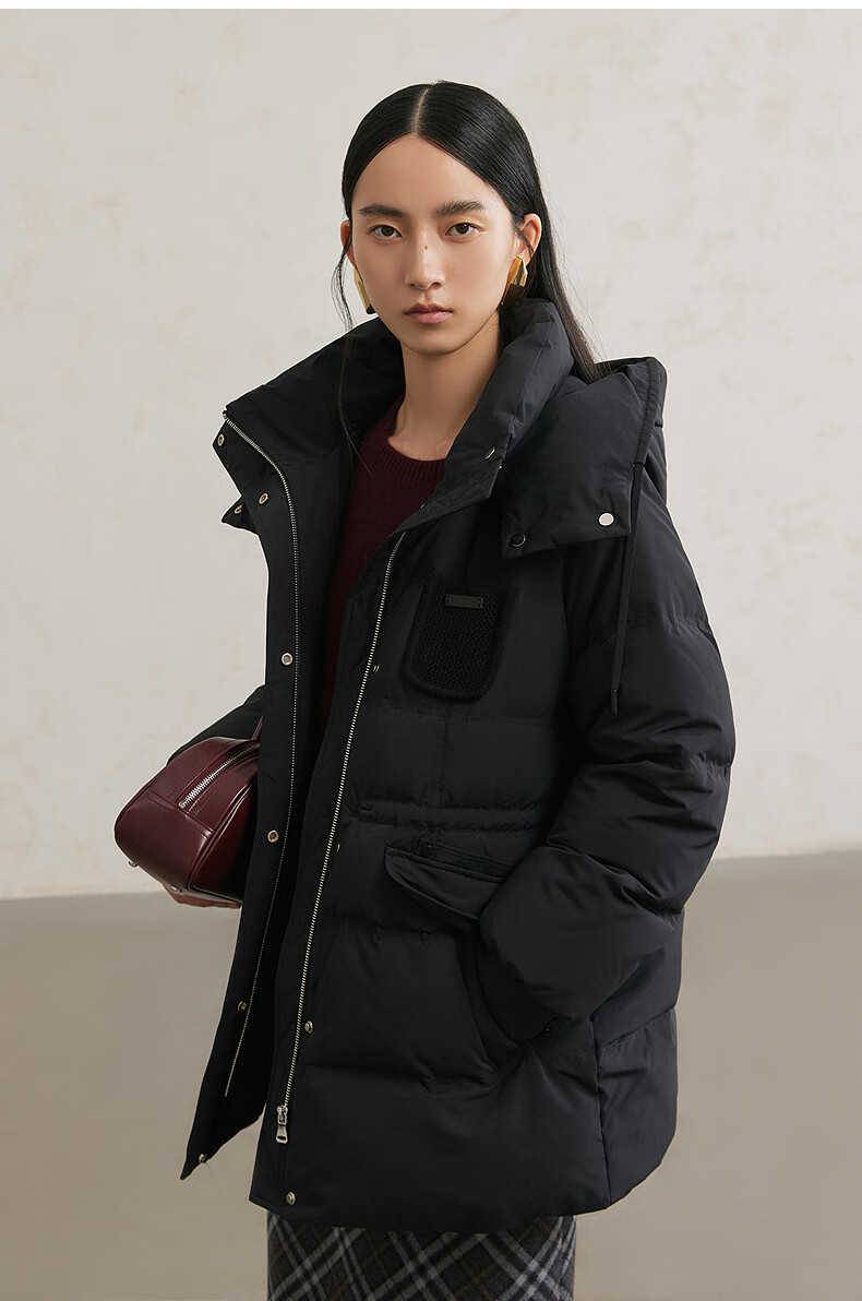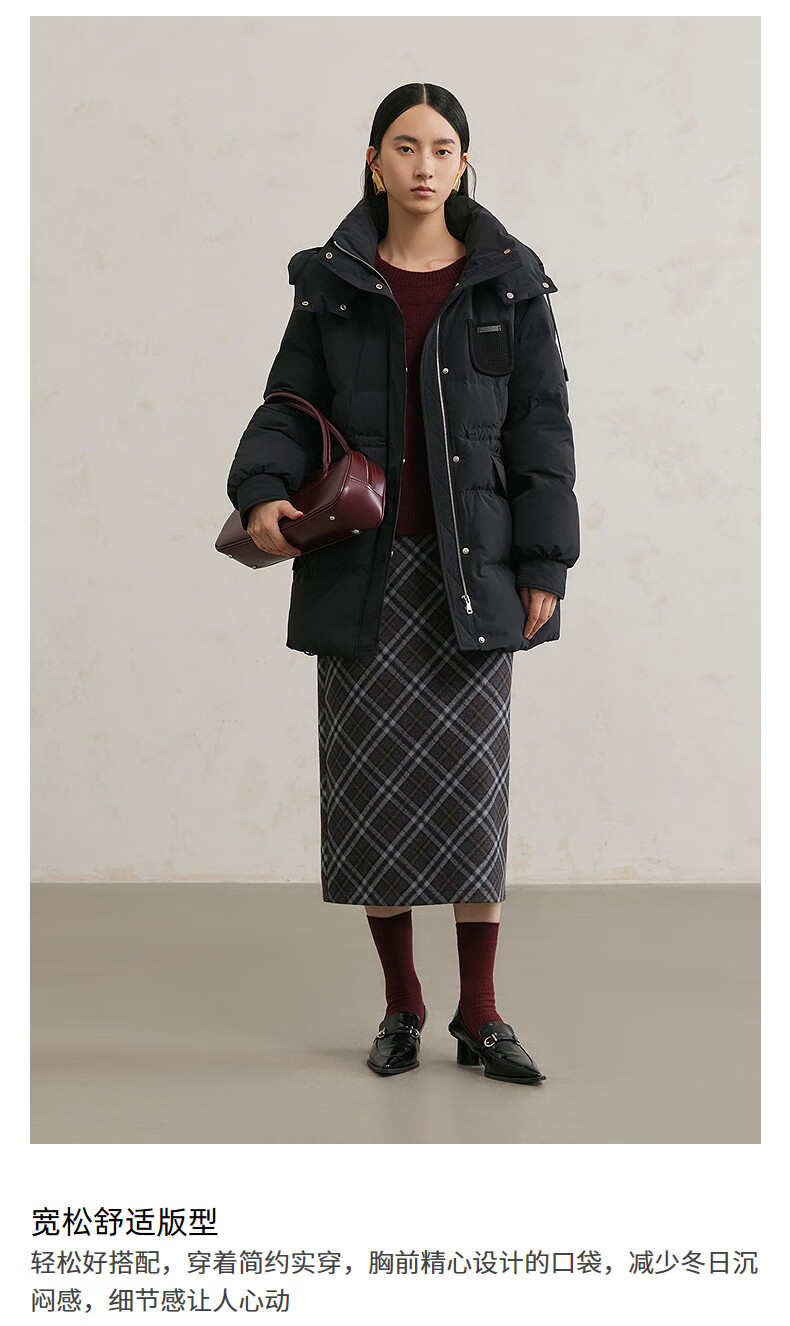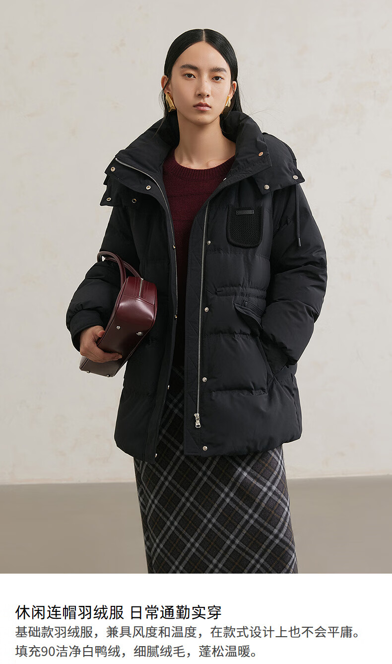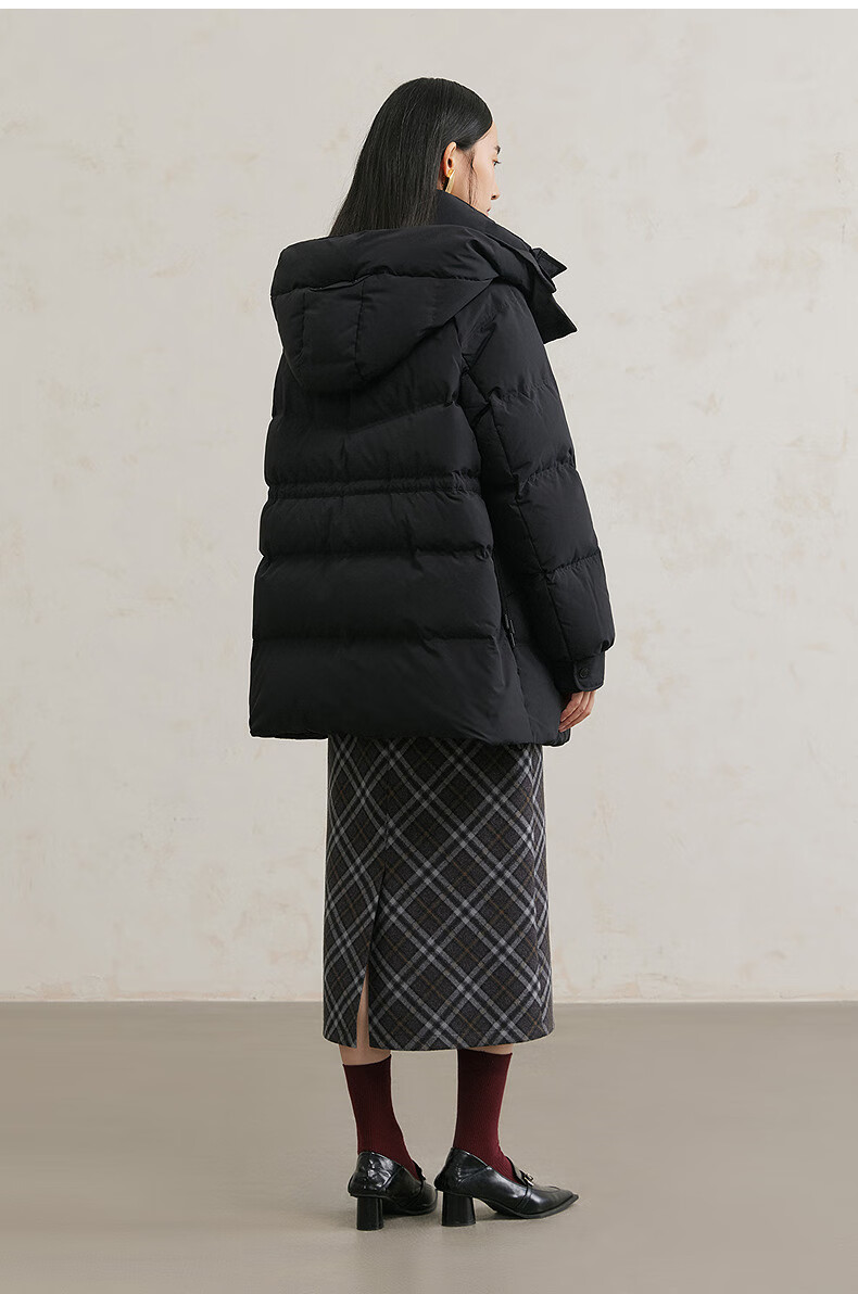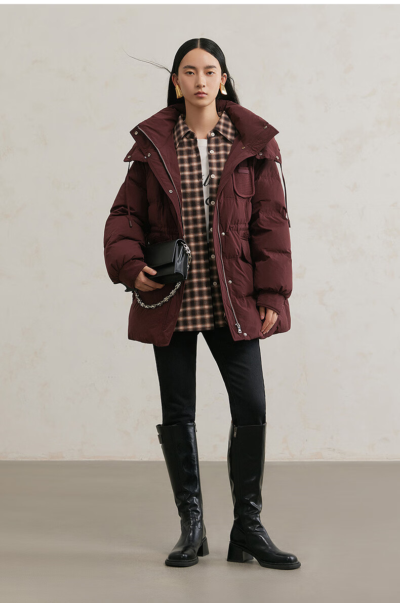 NEELLY Nali Shopping Mall's new winter style hooded mid-length casual commuter down jacket for women 90% white duck down Ankola red S