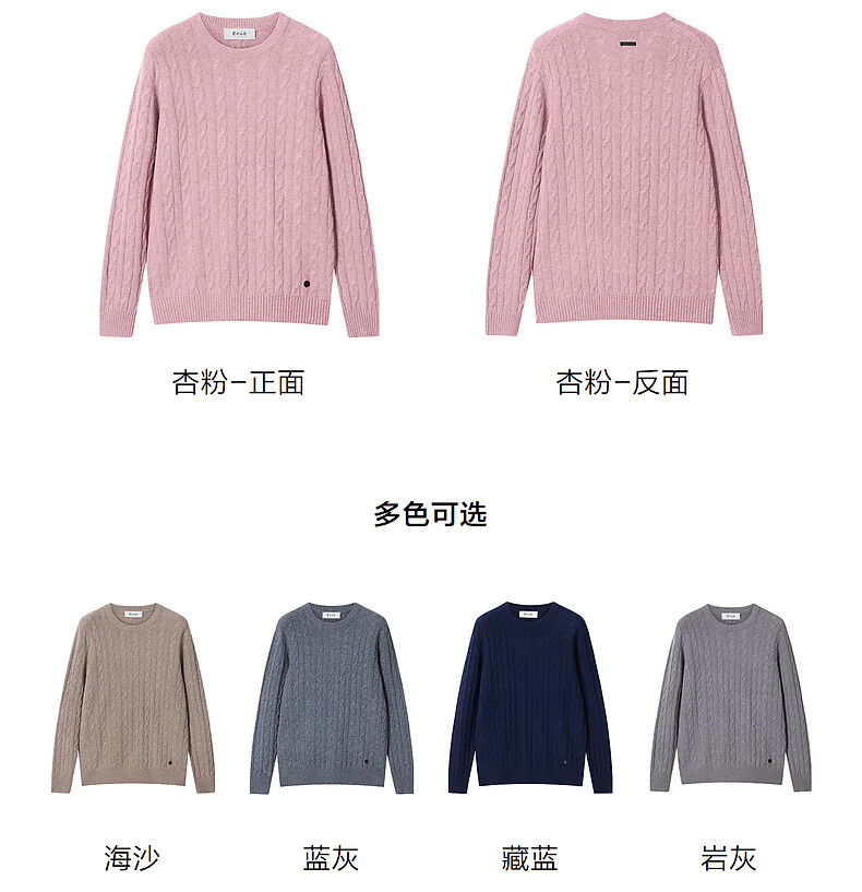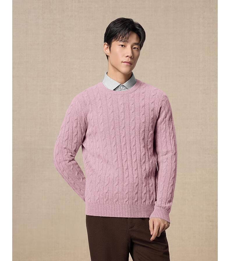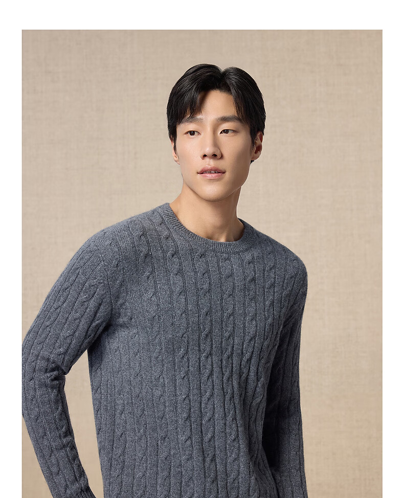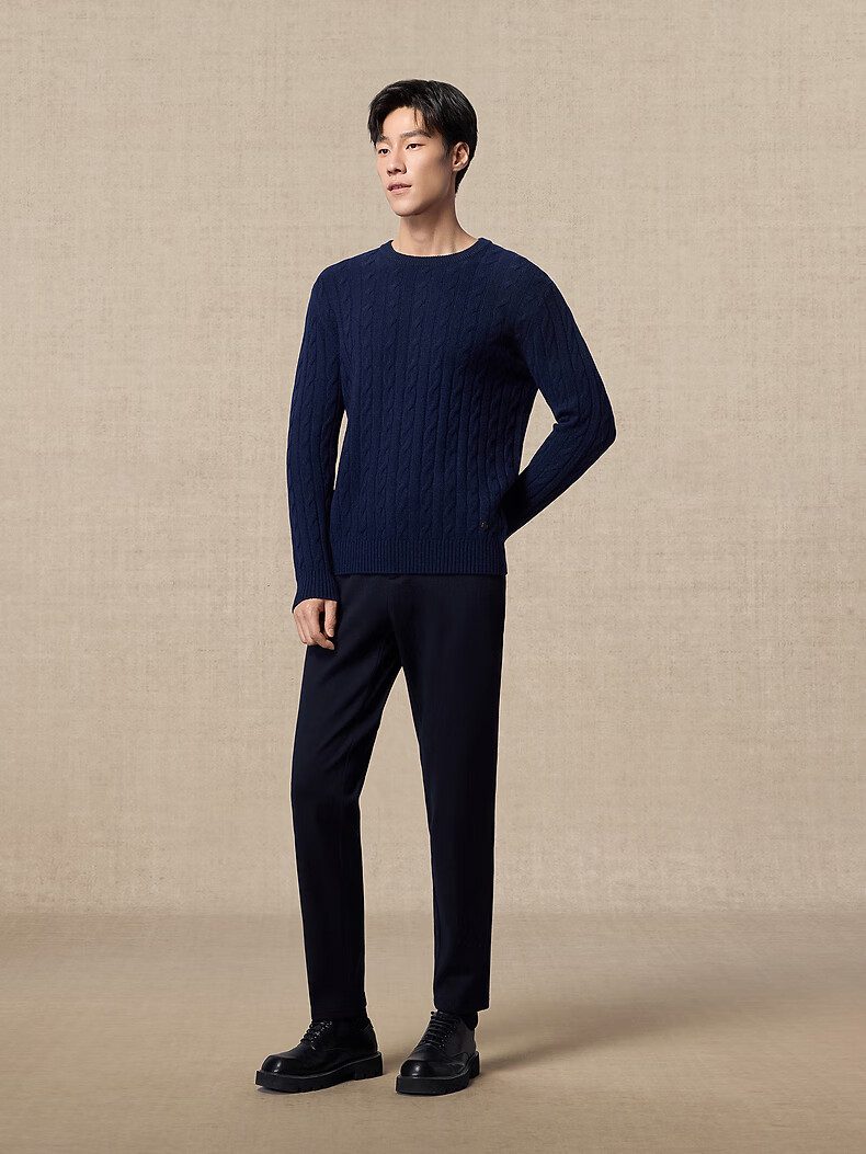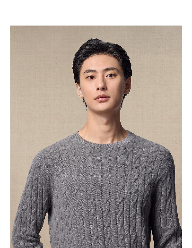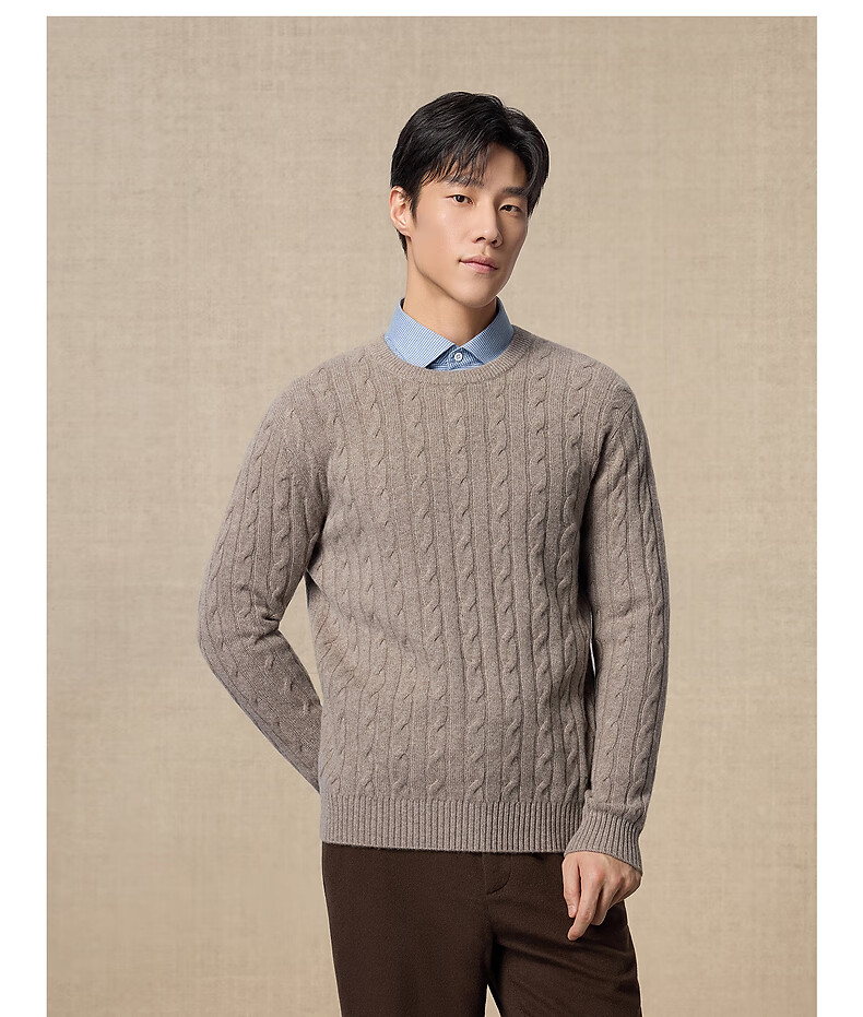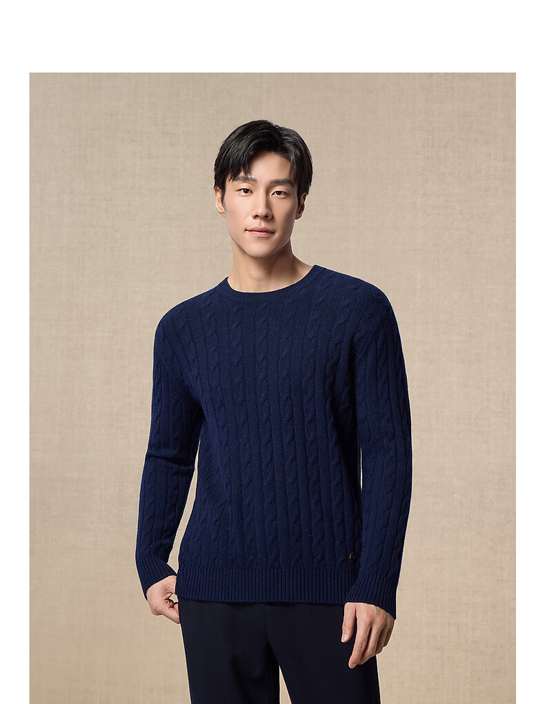 Ordos 1980 pure cashmere round neck cable tie comfortable long-sleeved sweater men's commuter cashmere sweater autumn and winter Haisha L 175/96A