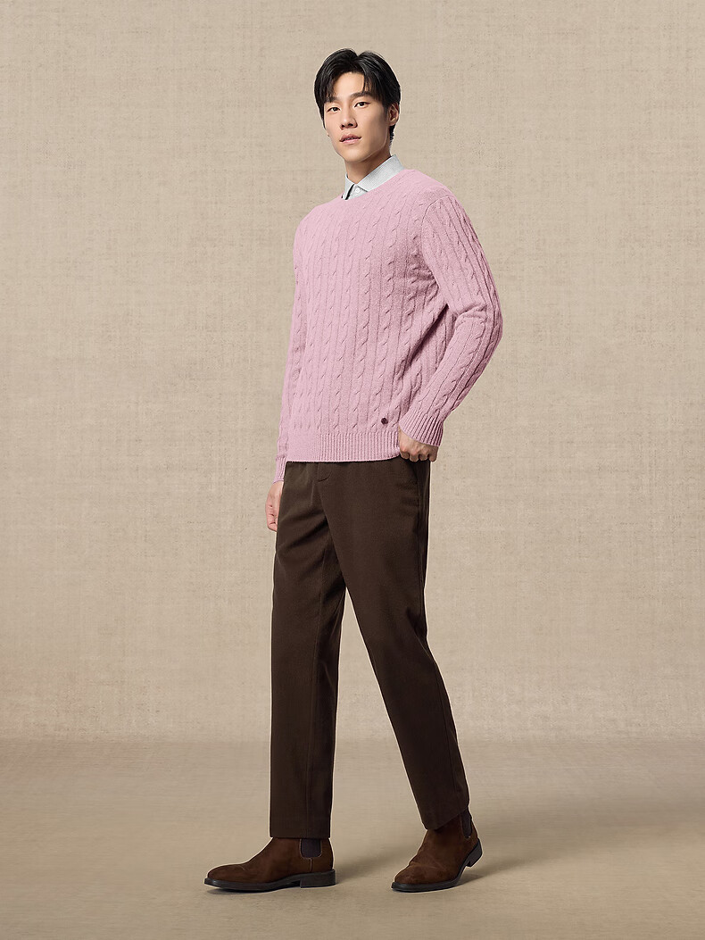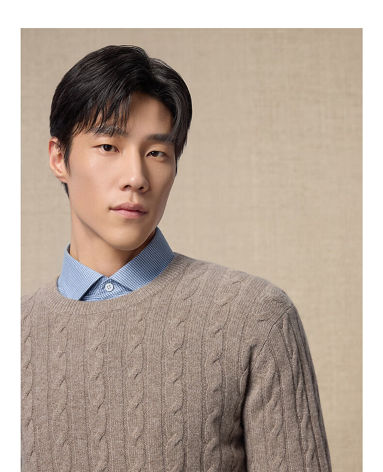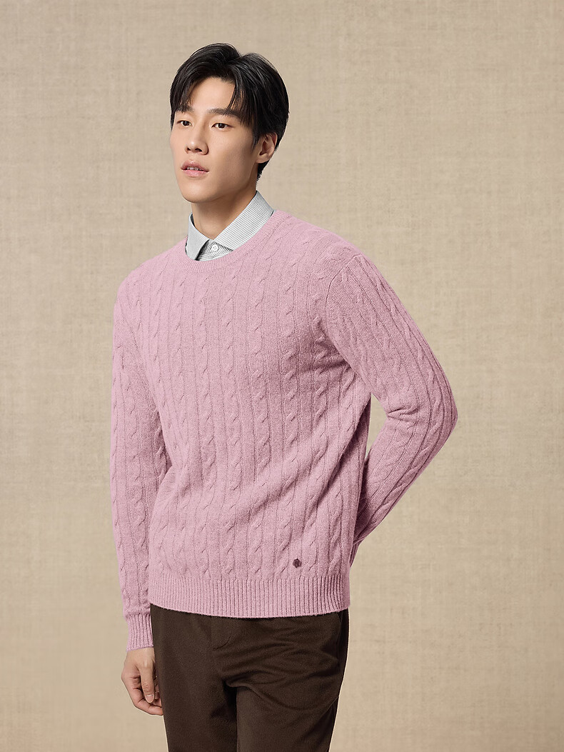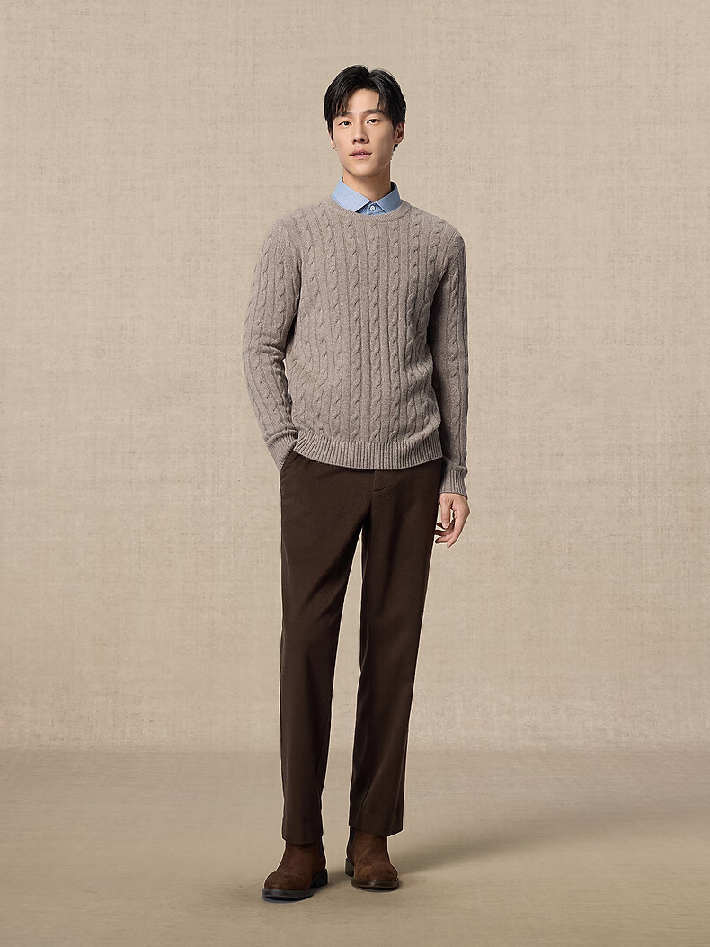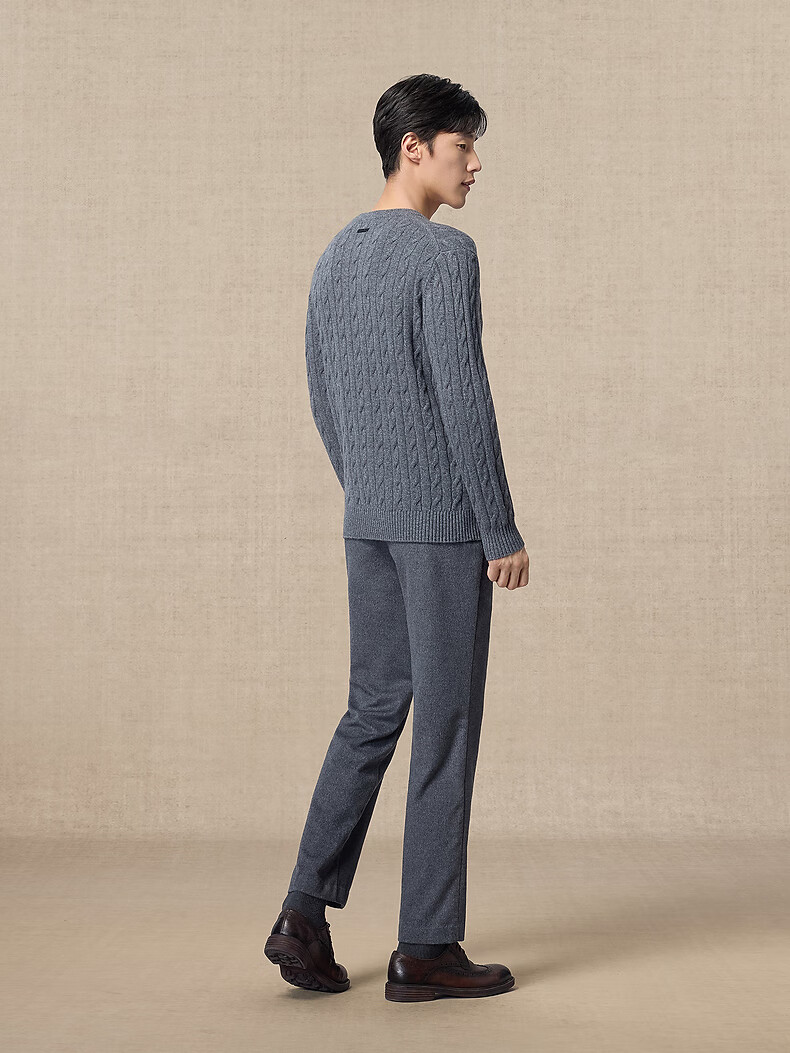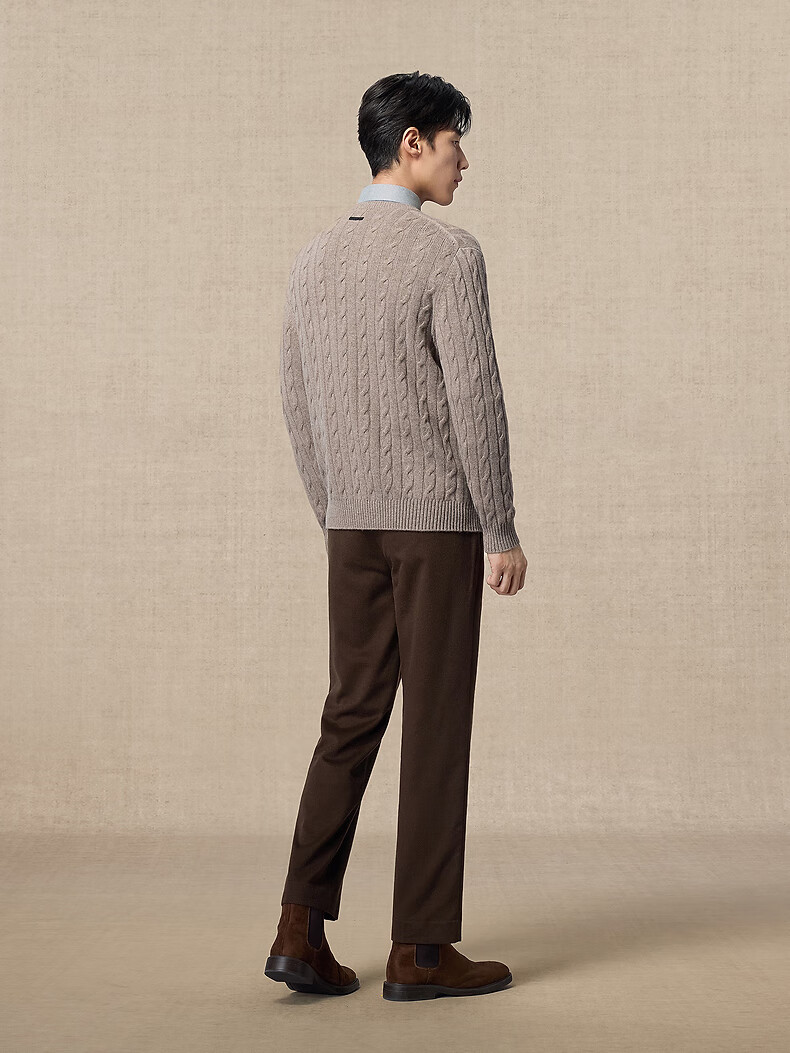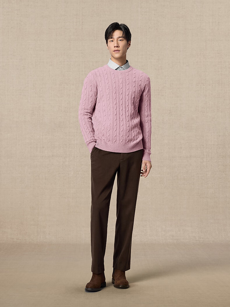 Ordos 1980 pure cashmere round neck cable tie comfortable long-sleeved sweater men's commuter cashmere sweater autumn and winter Haisha L 175/96A