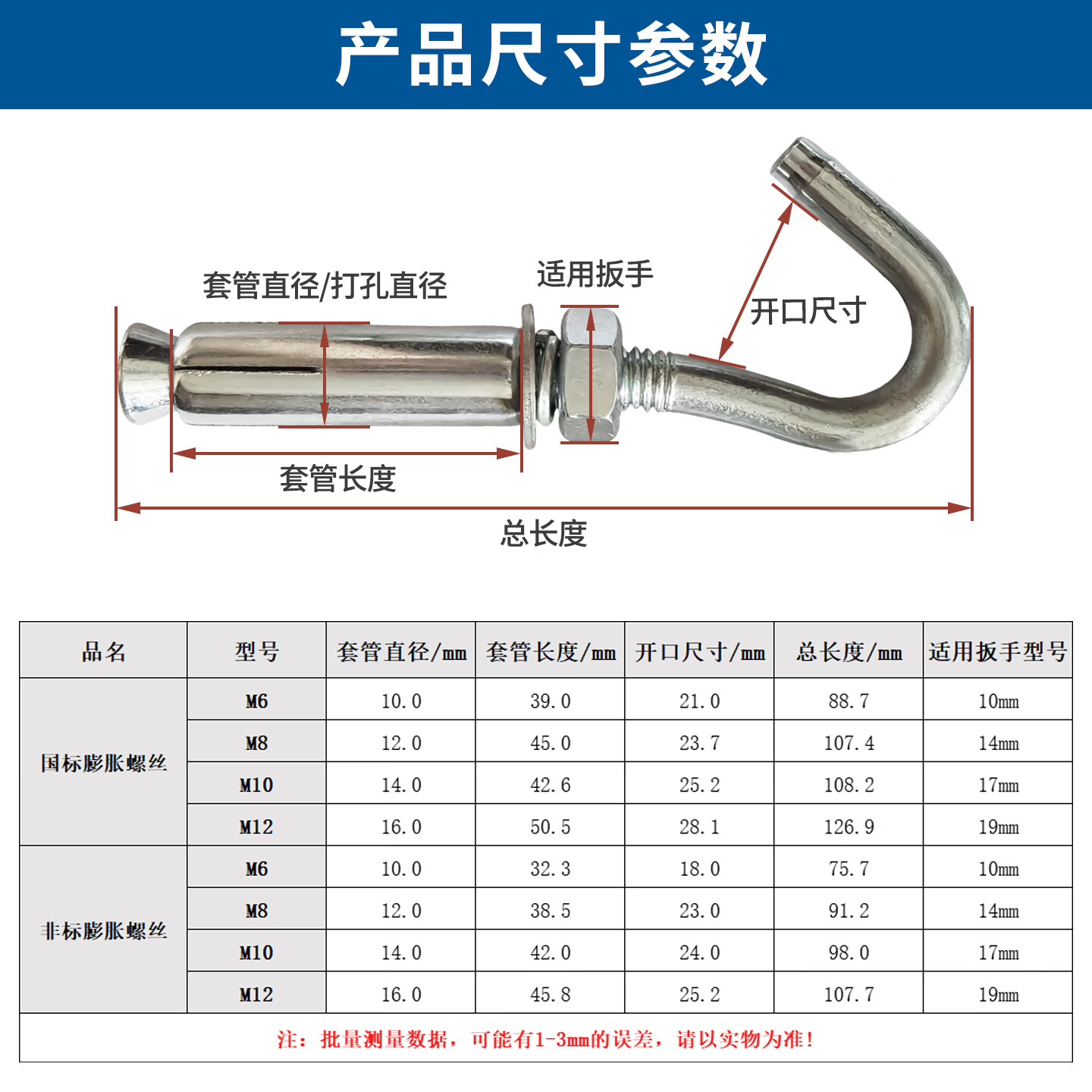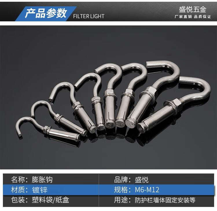 Expansion hook national standard galvanized screw expansion hook universal hook expansion bolt electric fan hook pull expansion bolt national standard M8 10 pieces