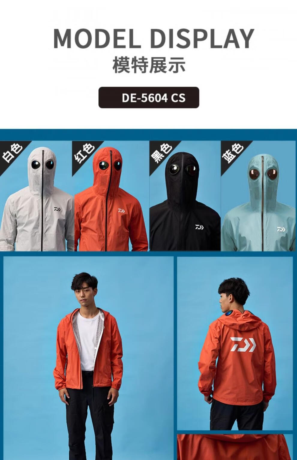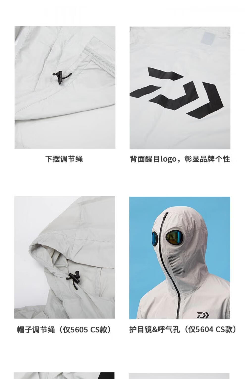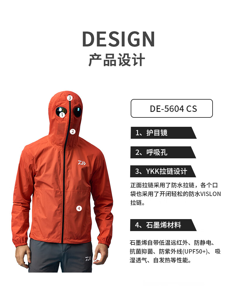 Dayiwa 21 New 56045605 Male Alien Sun Protection Suit Graphene Skin Thin Fishing Suit DE-5604CS (with goggles) Black XL