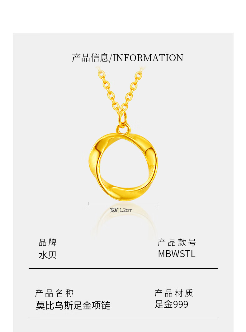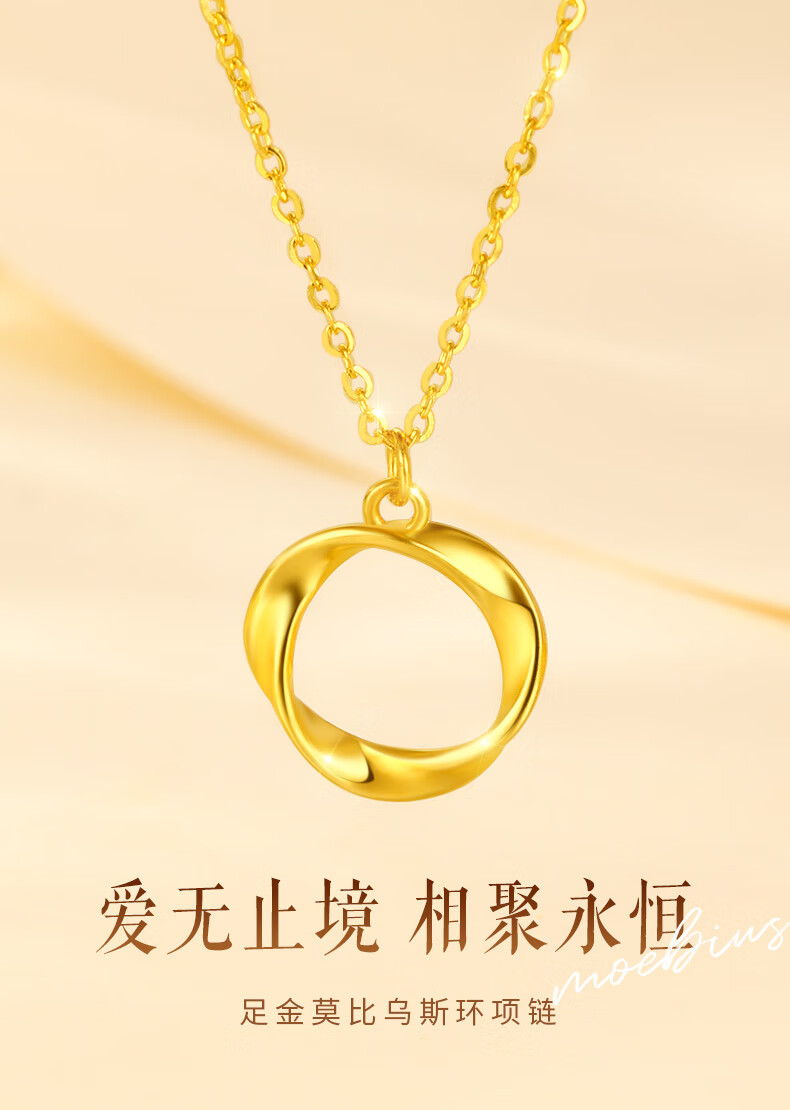 Water shell gold pure gold 999 pendant women's gold Möbius ring necklace set chain birthday gift for girlfriend Möbius ring (about 3.2g) more return less replenishment + brand gift box 40cm+3cm