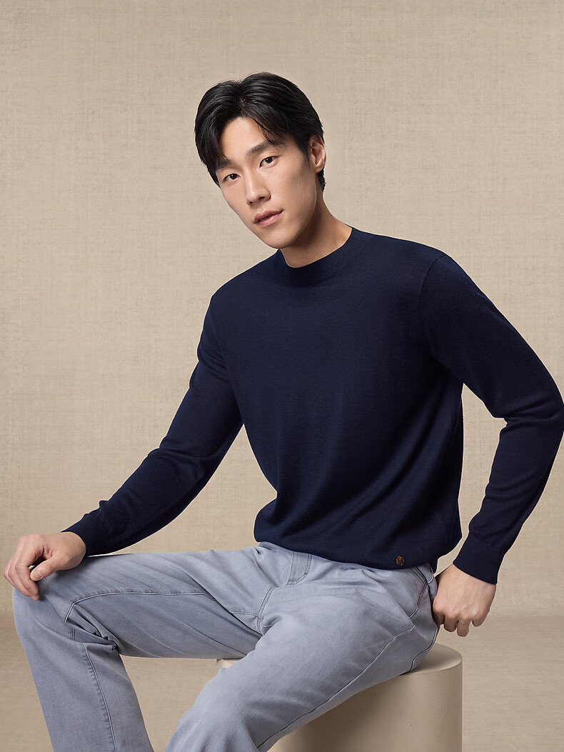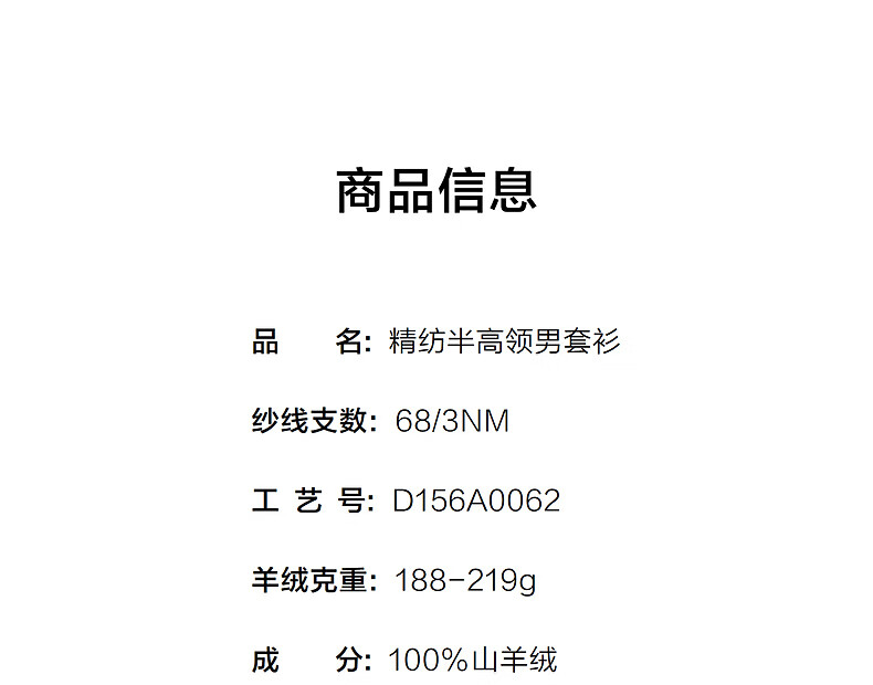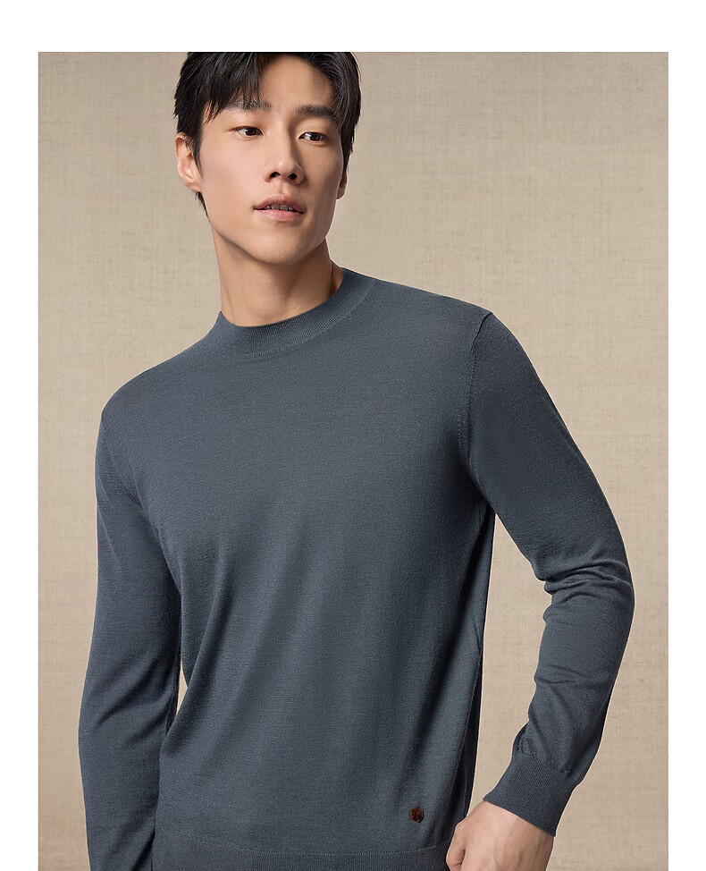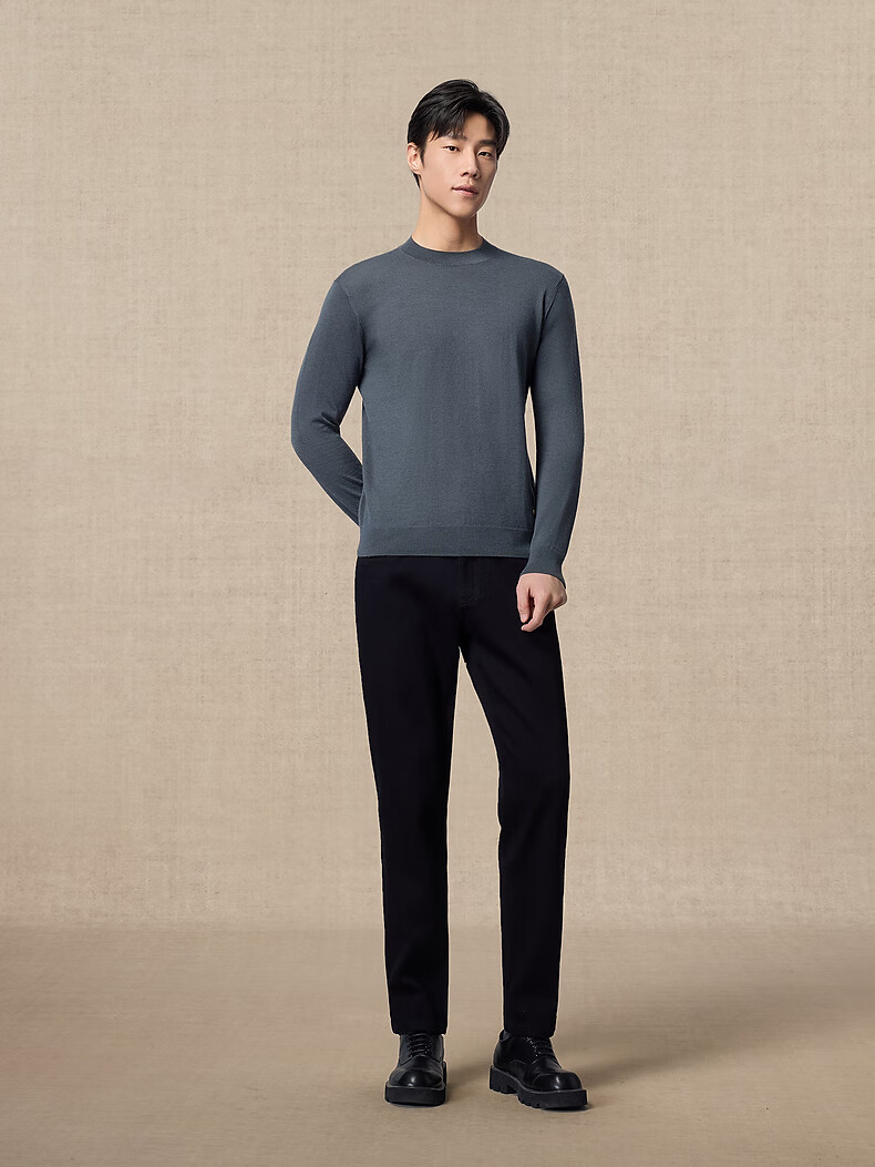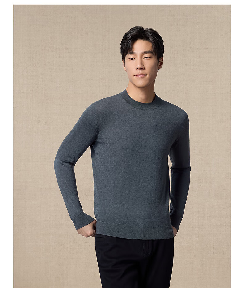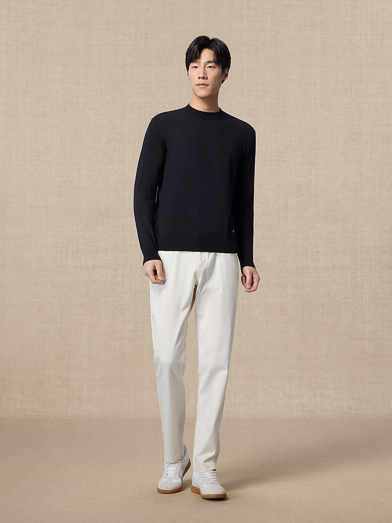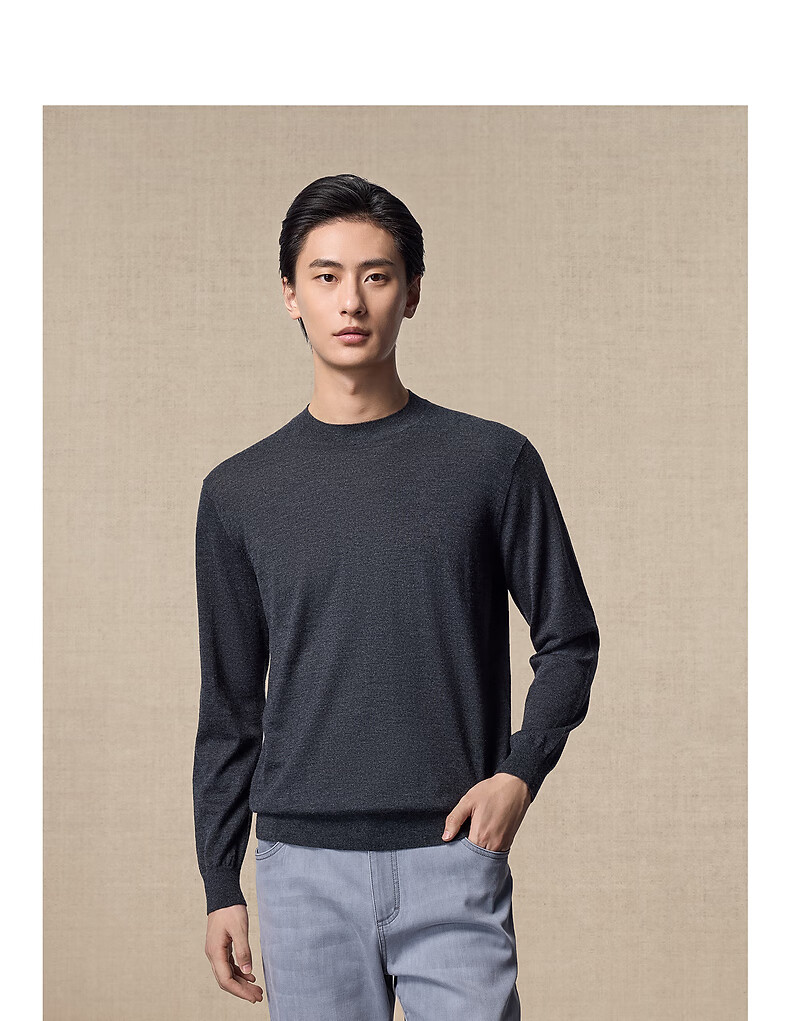 Ordos 1980 new worsted pure cashmere half turtleneck simple casual men's comfortable cashmere sweater autumn and winter pure black M 170/92A
