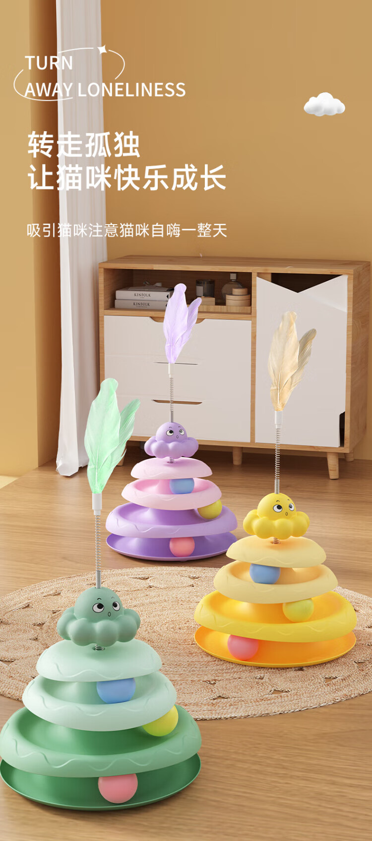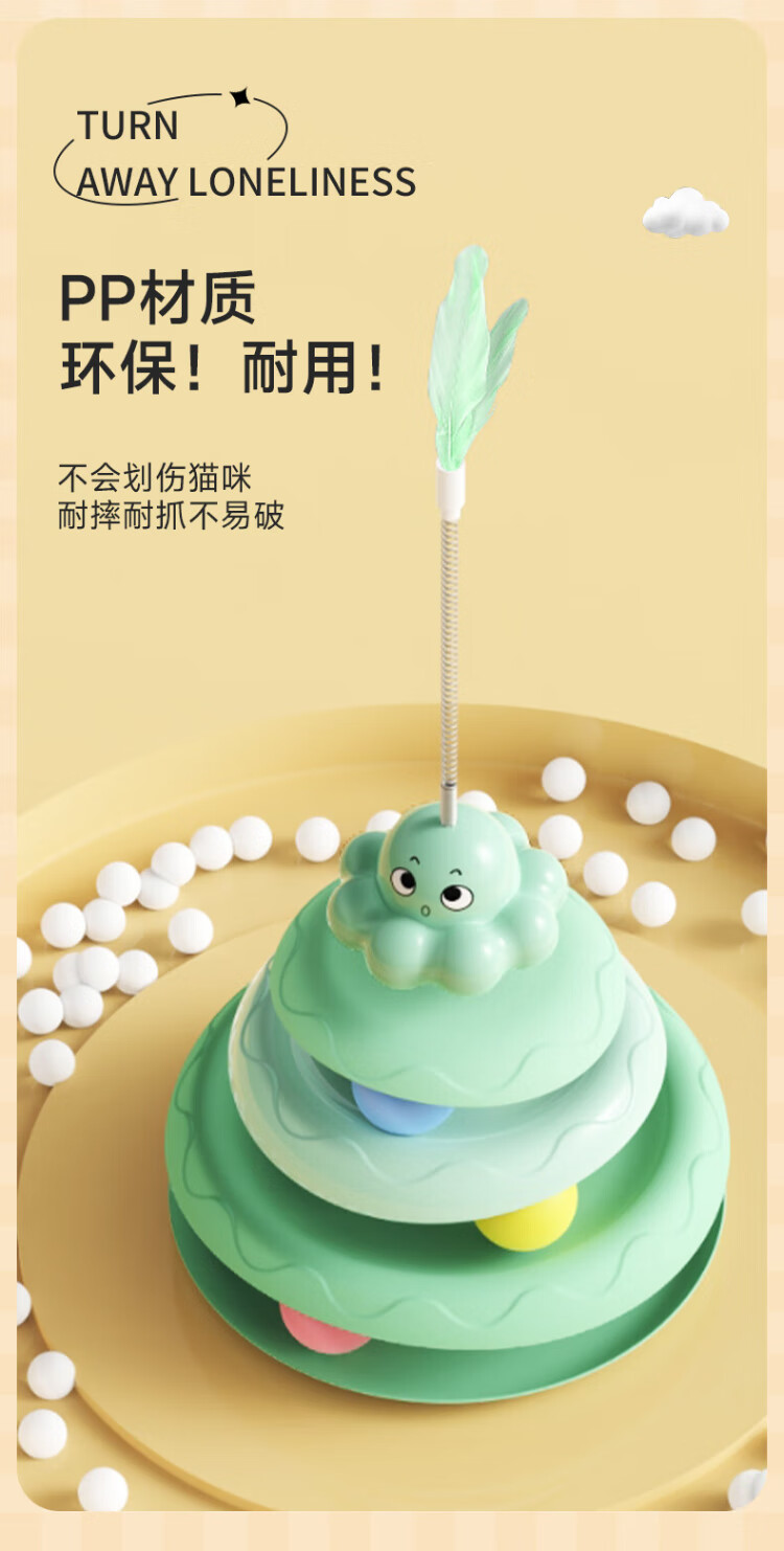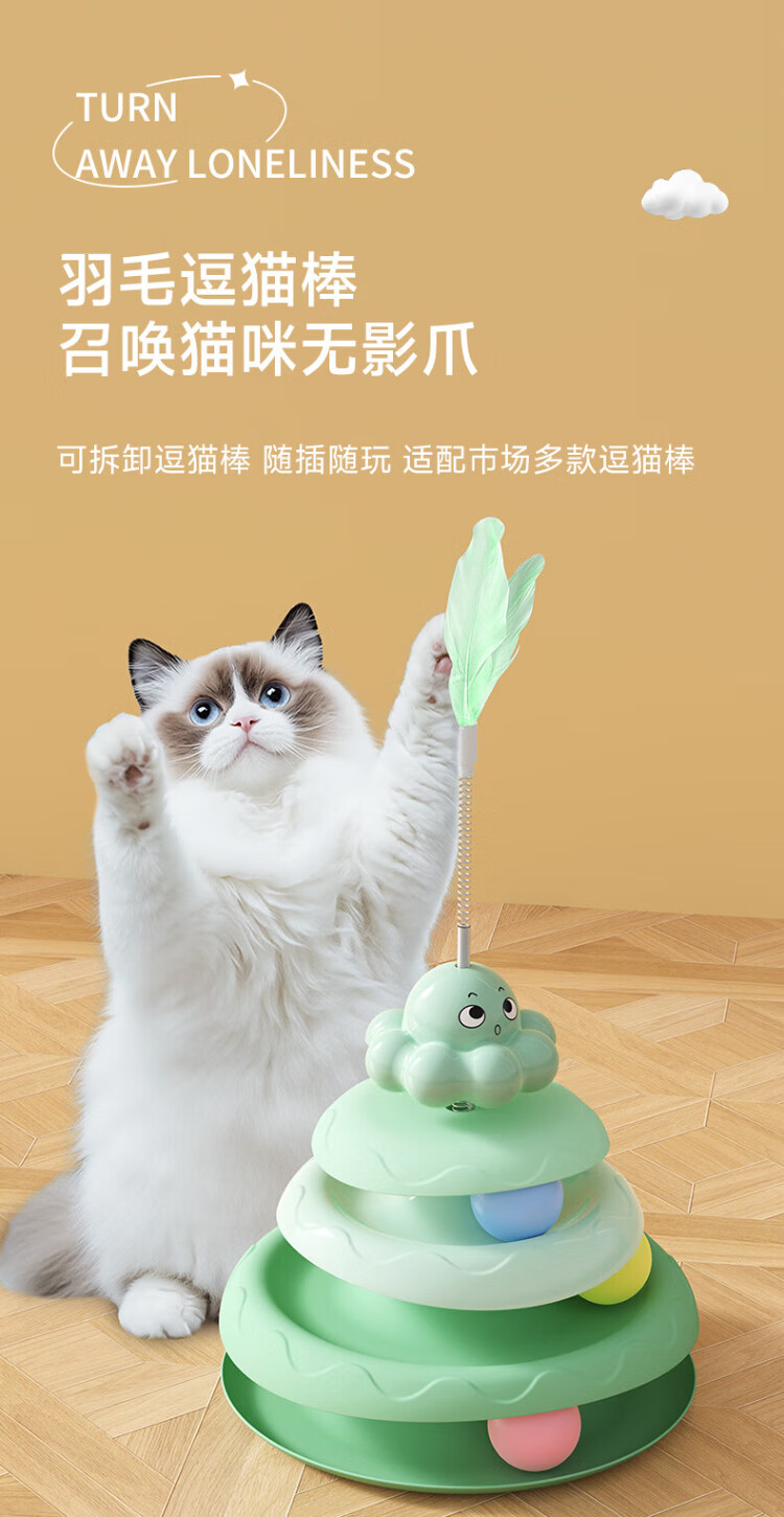 Guazhou shepherd cat toy, self-pleasure and boredom relief artifact, cat toy stick, feather spinner ball, cat toy, cat toy stick, cat toy, green cat spinner + simulated feathers, non-slip, scratch-resistant, not easy to break