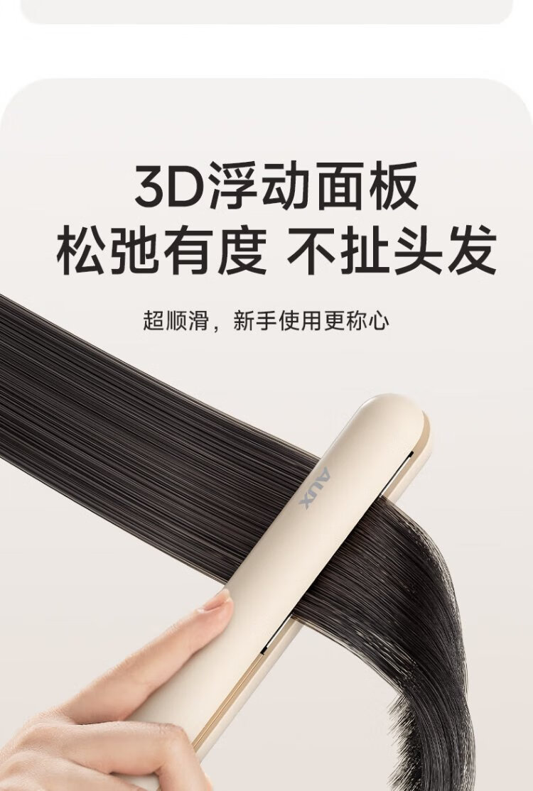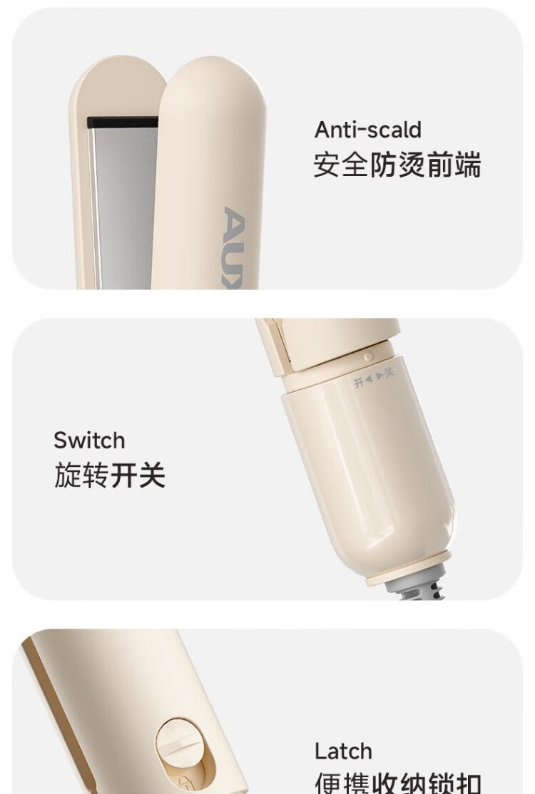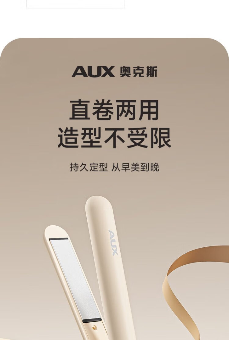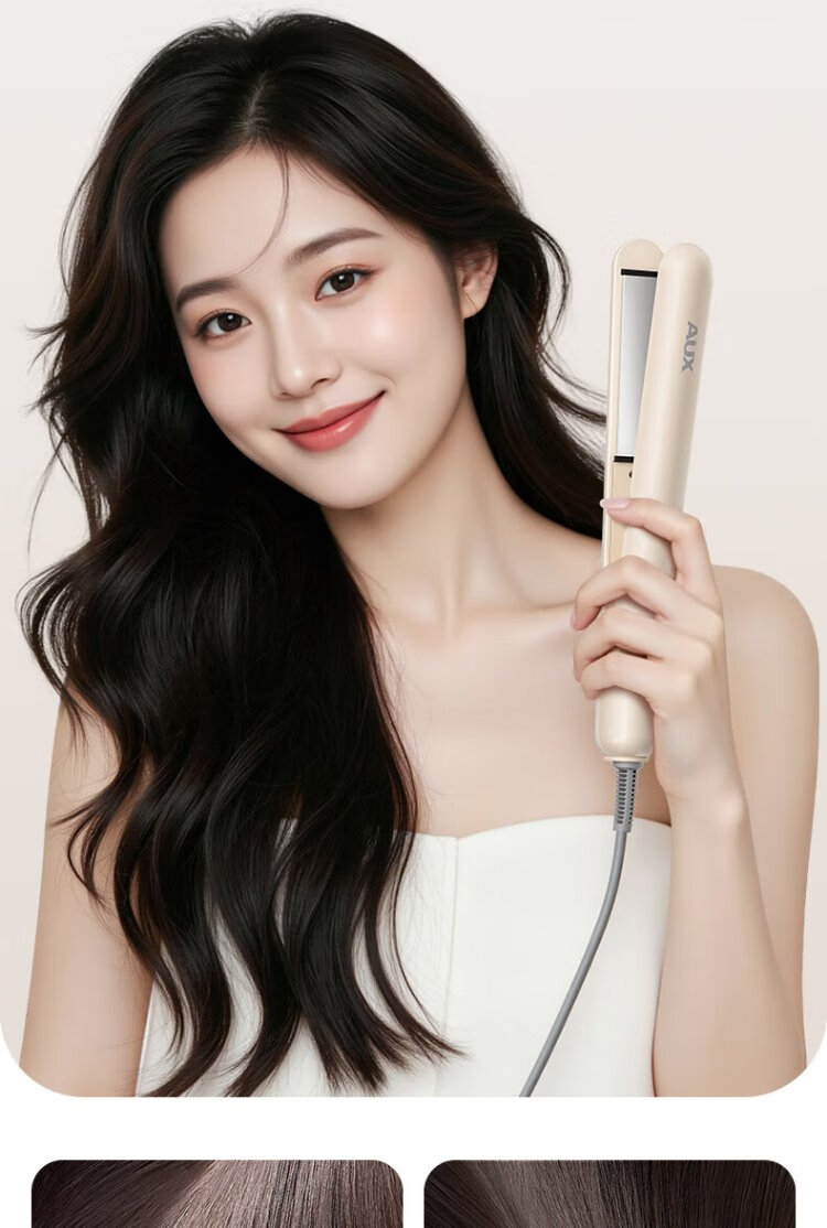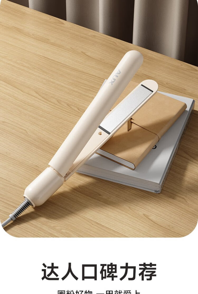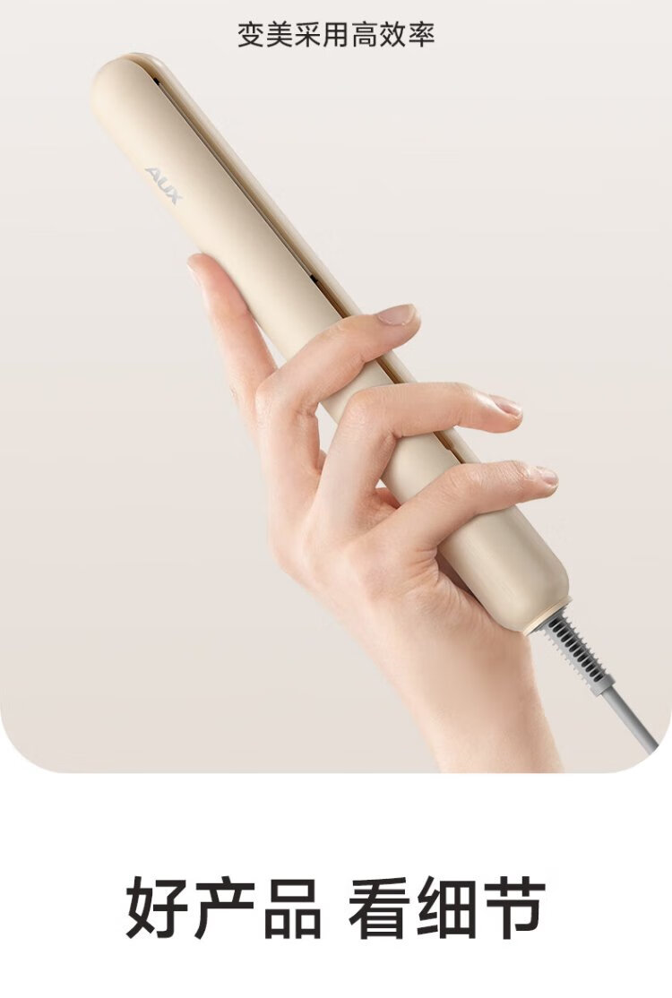 AUX small splint, mini portable straight plate clip for straight hair and curly hair, dual-purpose curling iron, does not hurt hair, prevents perm, small straight hair splint, low power special perm clip for bangs in dormitory, beige flagship model, plant essential oil + ceramic glaze hair care, 25W low power, no trip in dormitory