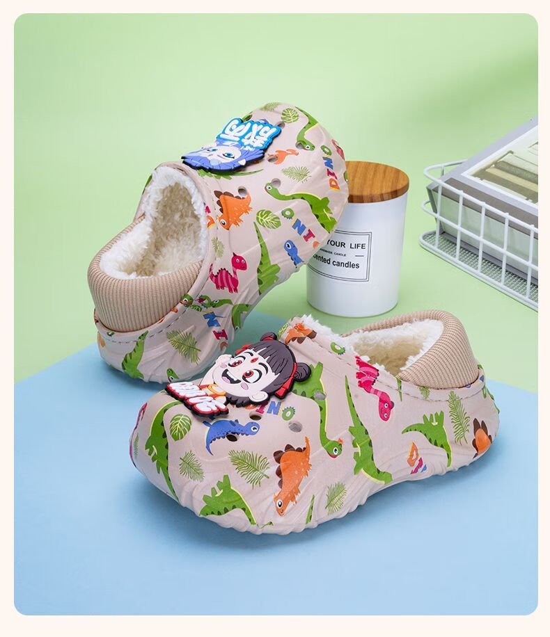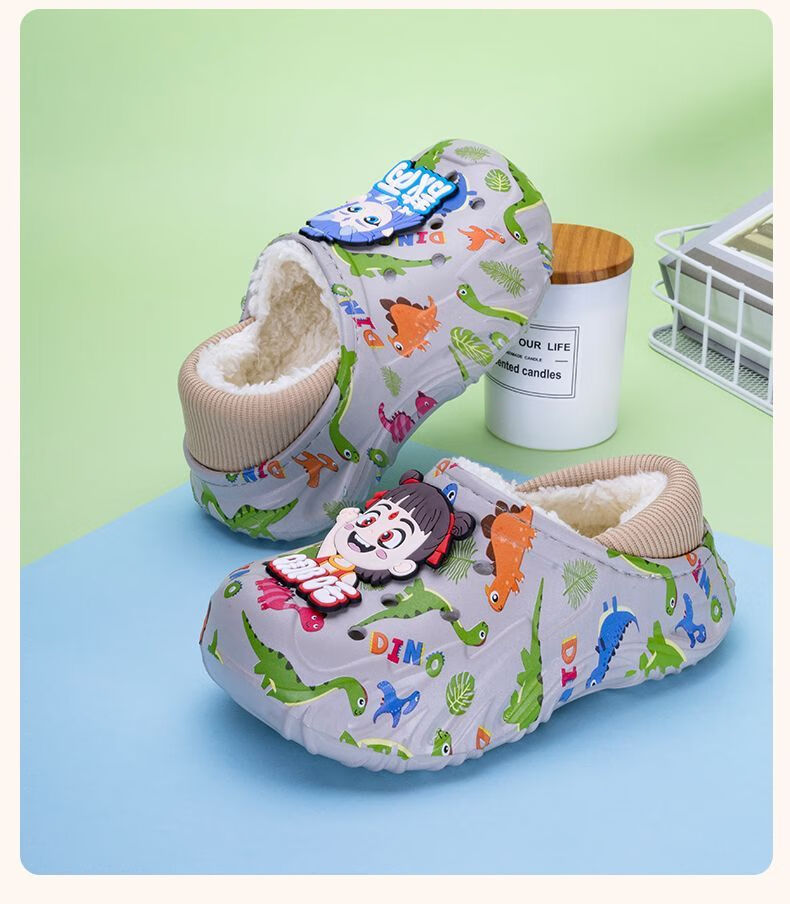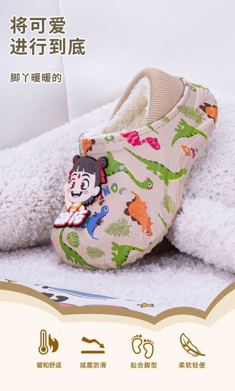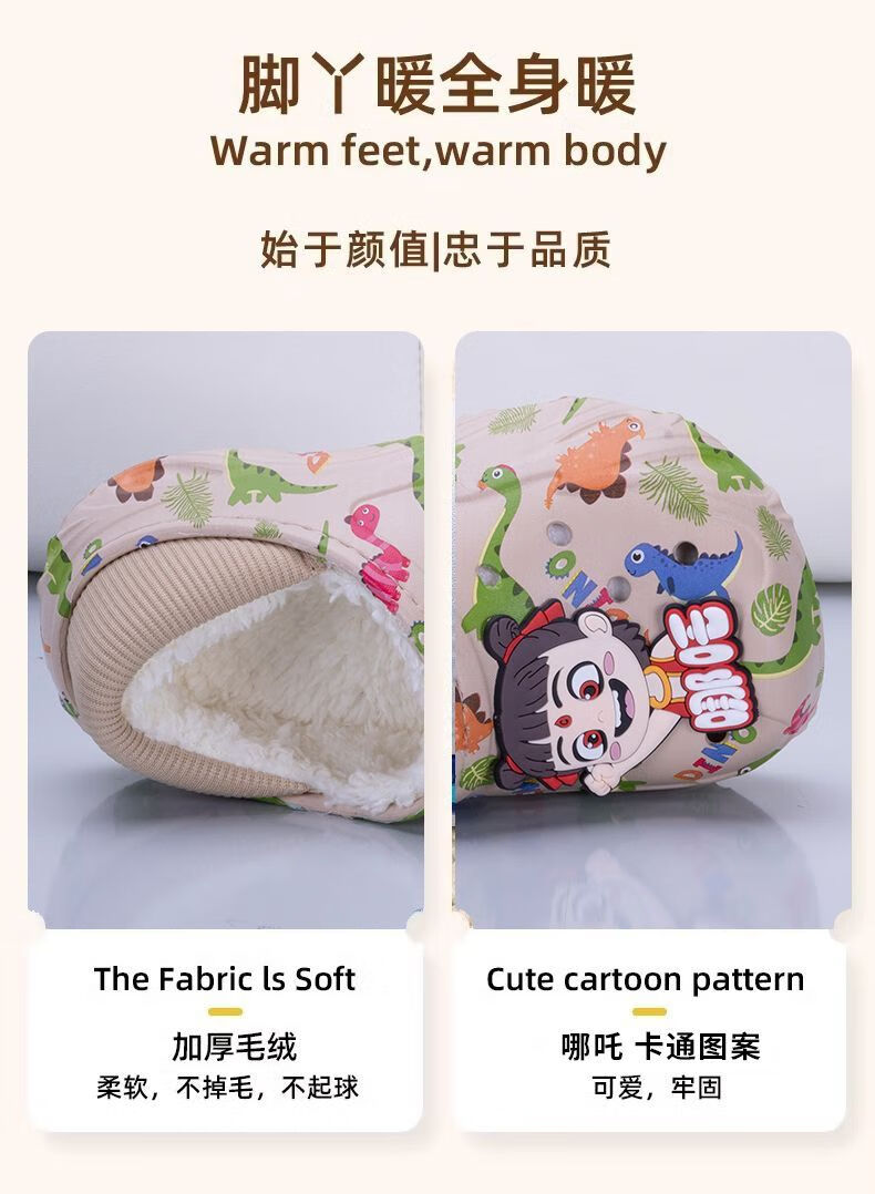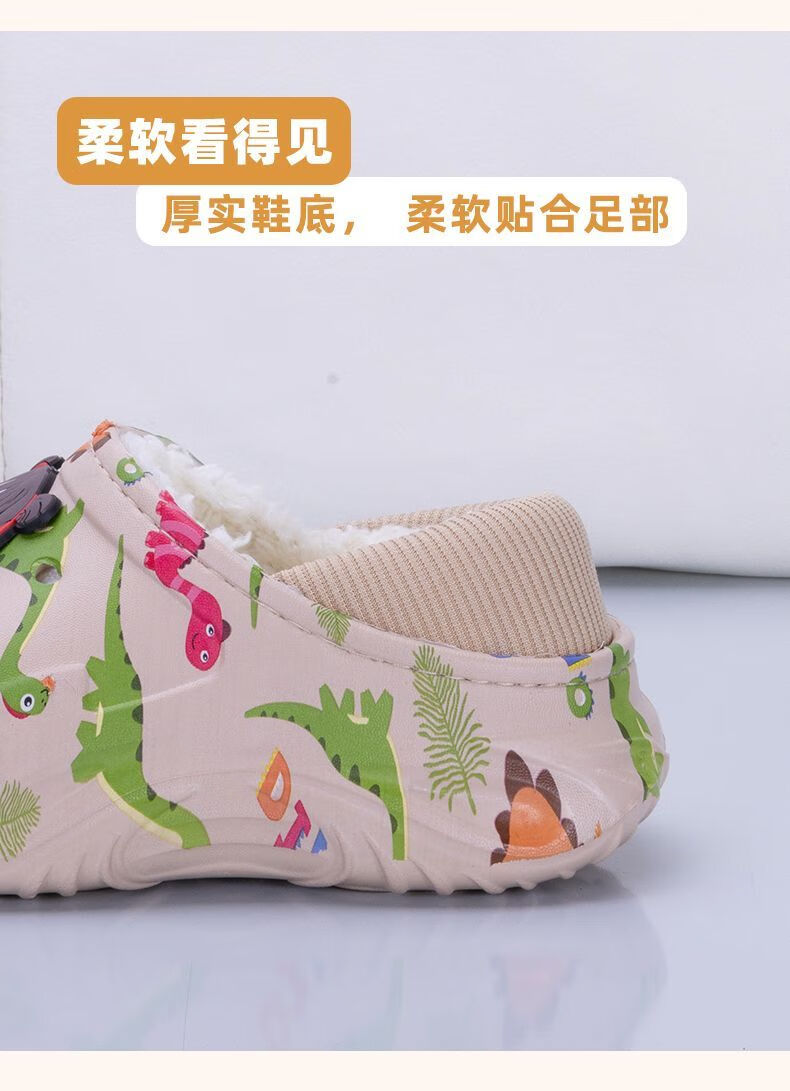 Children's cotton shoes, boys' velvet large cotton boots, winter 2025 new warm indoor home fashion cotton slippers for big children, khaki, main picture 32 32-33, inner length about 20cm