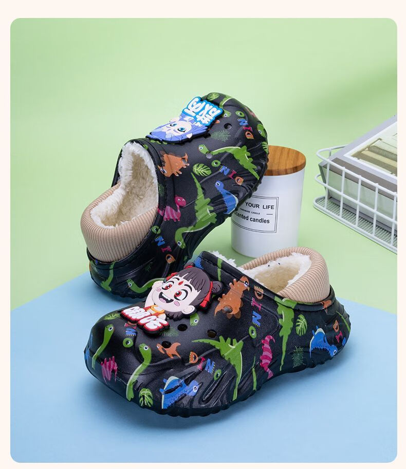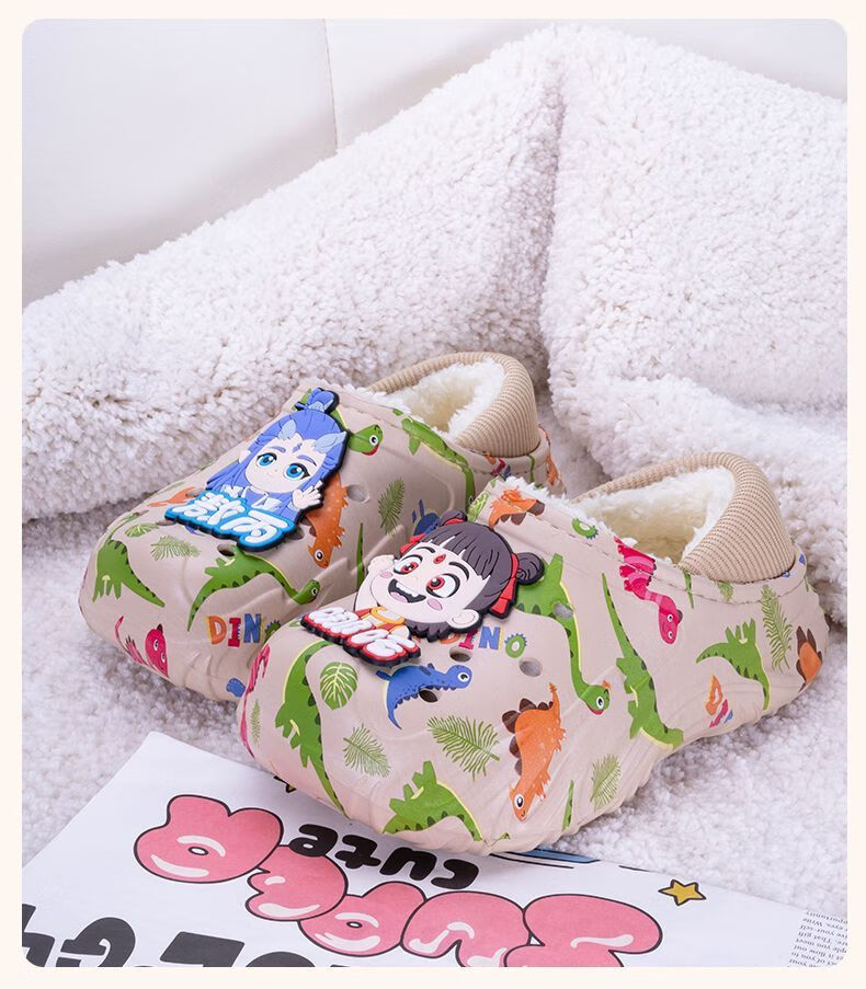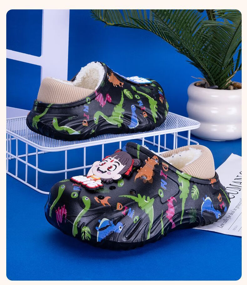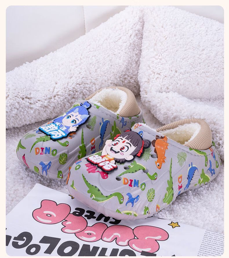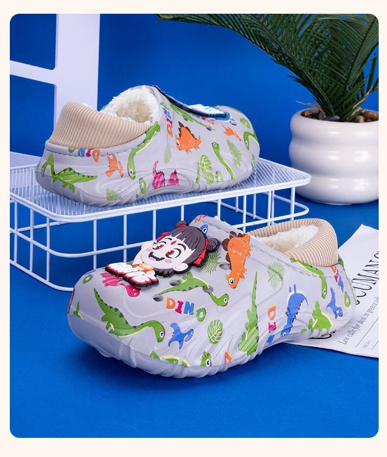 Children's cotton shoes, boys' velvet large cotton boots, winter 2025 new warm indoor home fashion cotton slippers for big children, khaki, main picture 32 32-33, inner length about 20cm