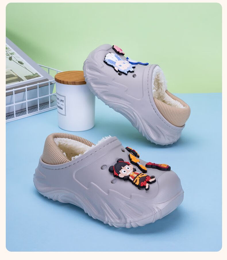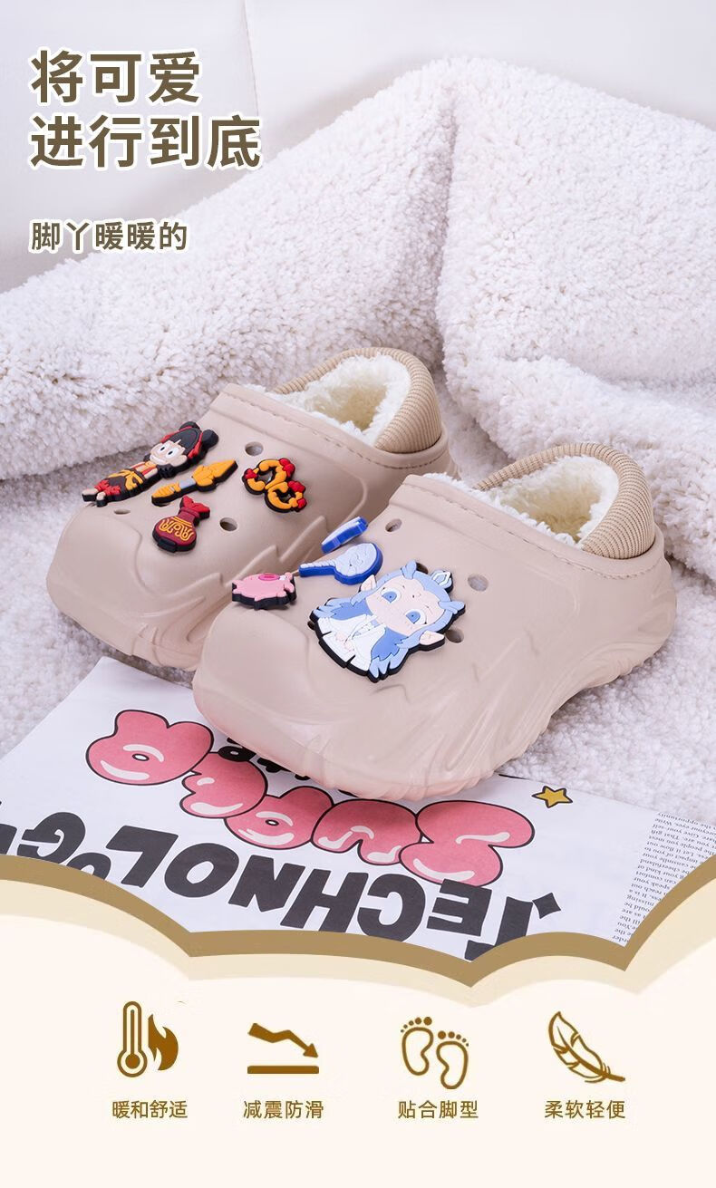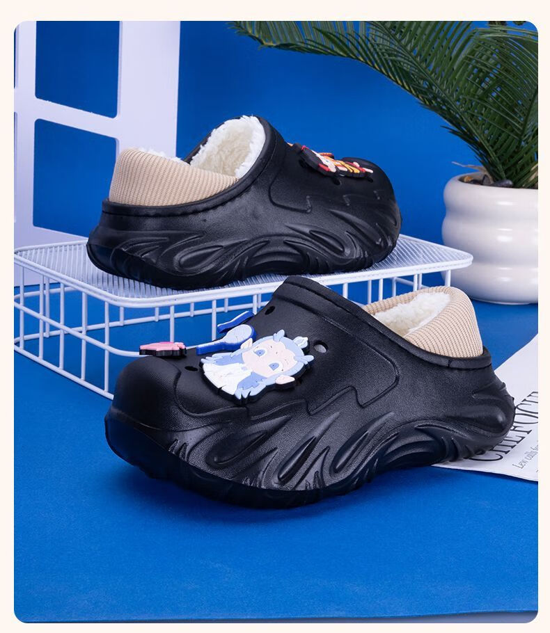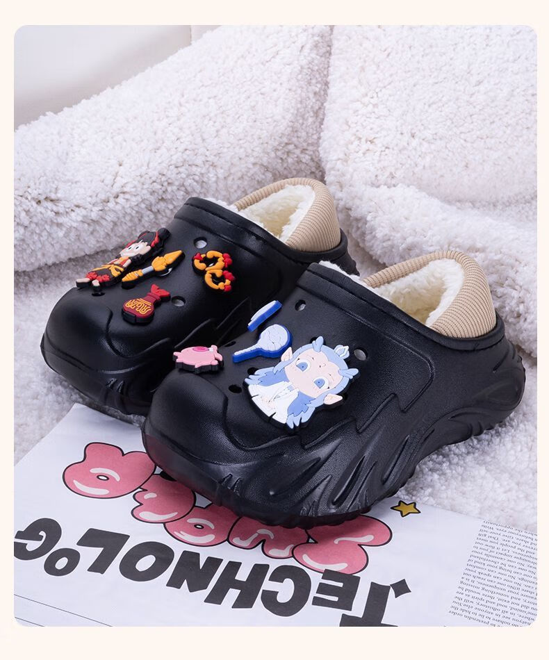 Children's Cotton Shoes 2025 Winter Baby Indoor Cotton Slippers Warm Home Shoes Boys and Girls Non-Slip Wool Slippers Bag Heel Black Free Nezha Shoe Flower 34 34-35 Inner Length About 21cm