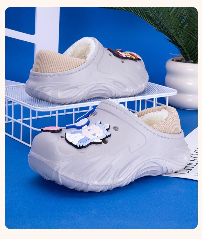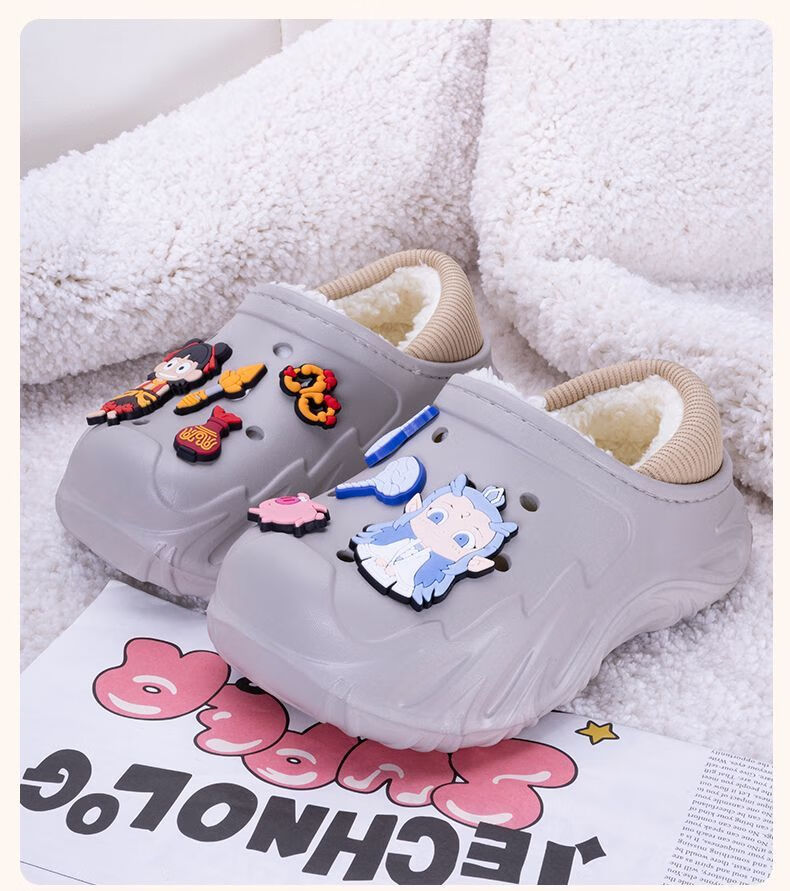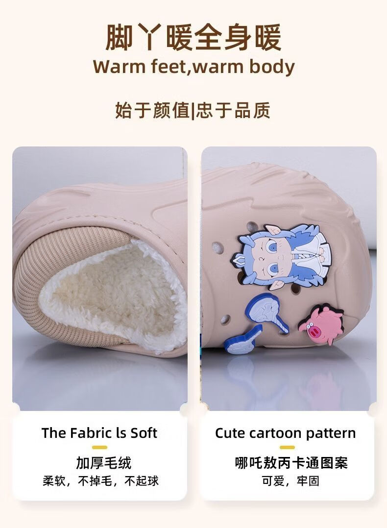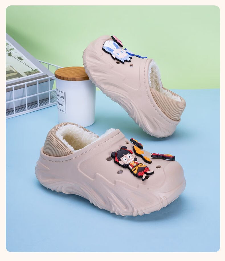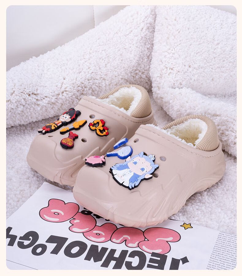 Children's Cotton Shoes 2025 Winter Baby Indoor Cotton Slippers Warm Home Shoes Boys and Girls Non-Slip Wool Slippers Bag Heel Black Free Nezha Shoe Flower 34 34-35 Inner Length About 21cm