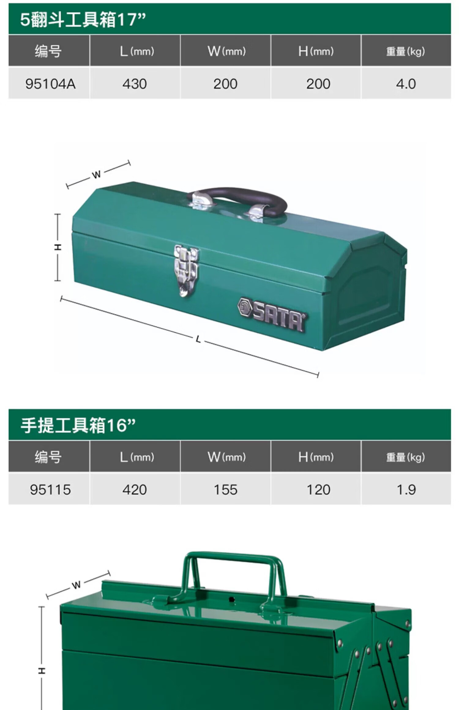 Металлический ящик для инструментов Shida Ящик для хранения инструментов из листовой стали Портативная сумка для инструментов 95101/95102 Портативный 95139 Металлический ящик для инструментов с двумя ящиками 20 дюймов