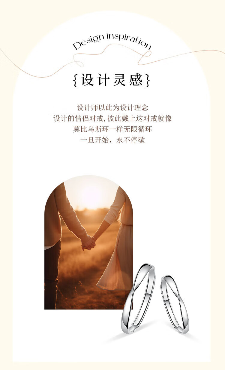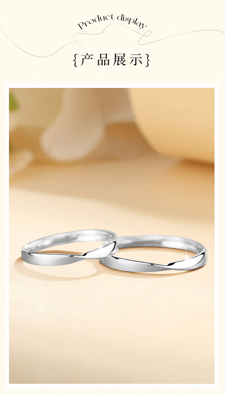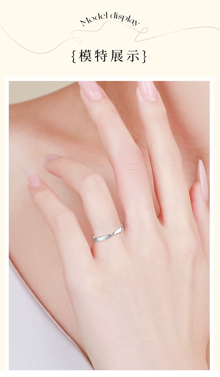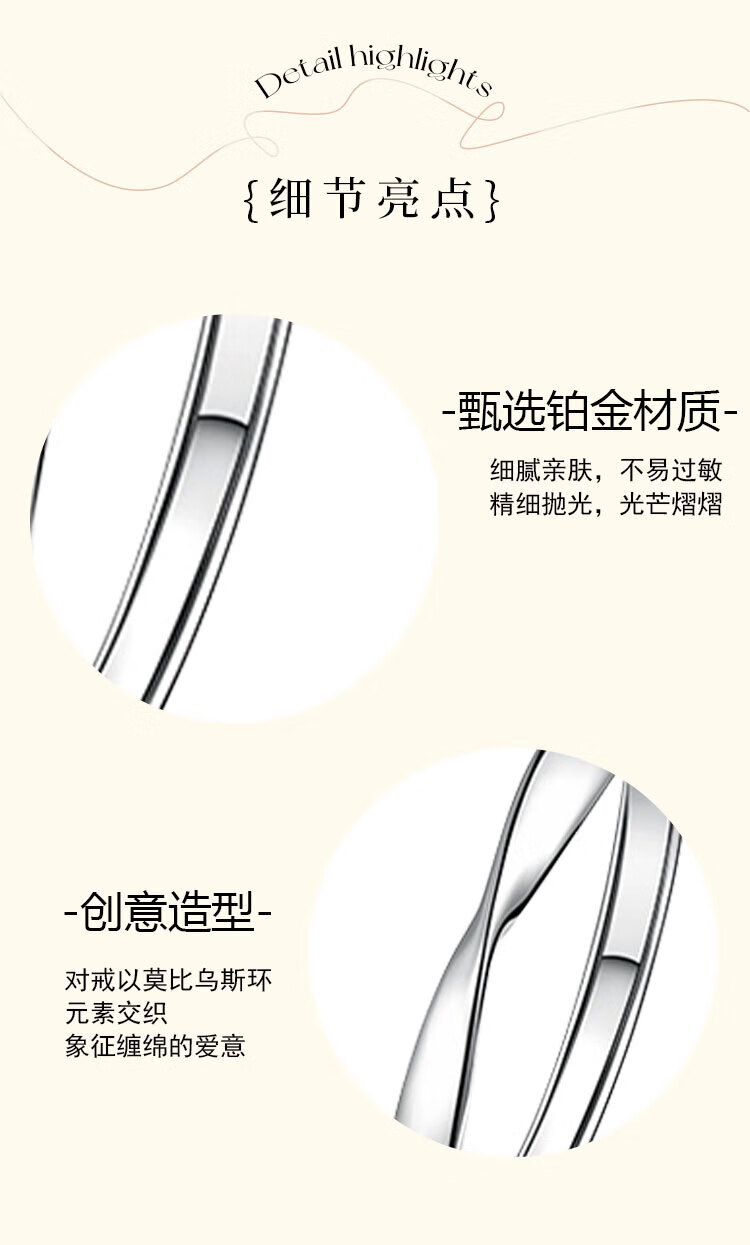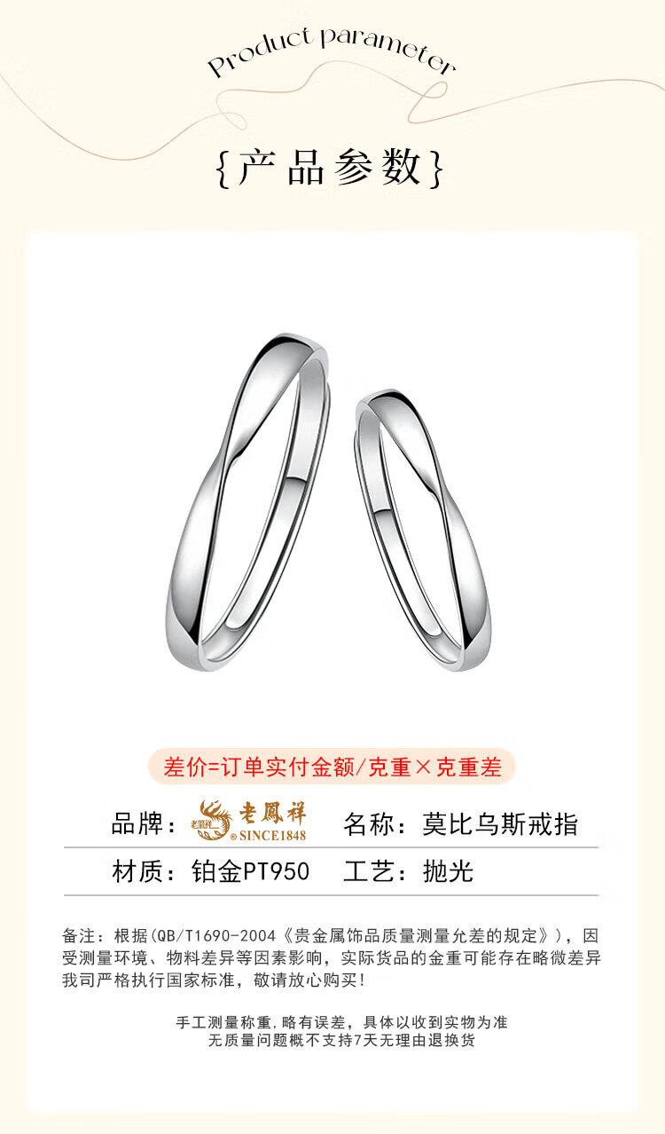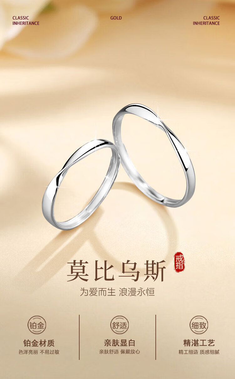 Lao Fengxiang pt950 platinum Möbius ring for men and women, live ring, Valentine's Day birthday gift for girlfriend and wife, Möbius ring for women, about 1.3g