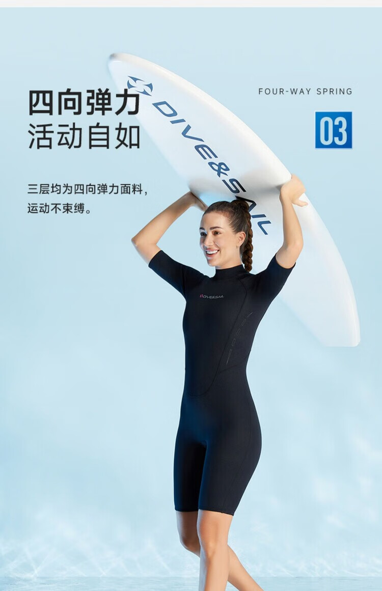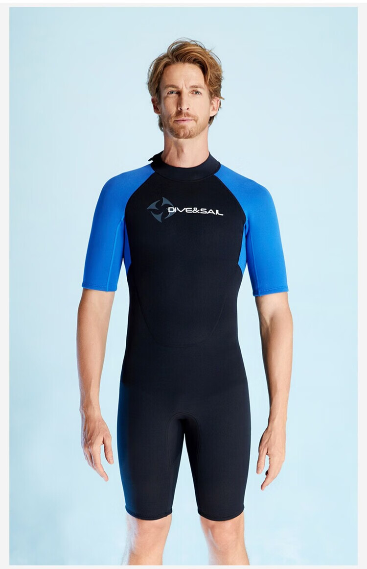 Triathlon Swimming Coldproof Gel Jacket Plus Size Couple 1.5MM Warm One-piece Diving Suit Men's Snorkeling Free Diving (Male) 132213 Black and Blue 1.5MM Back Open Short One-piece European Version S