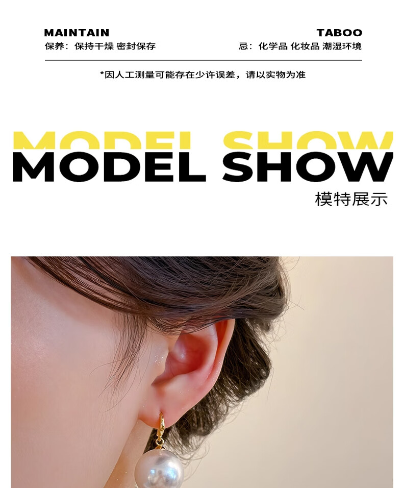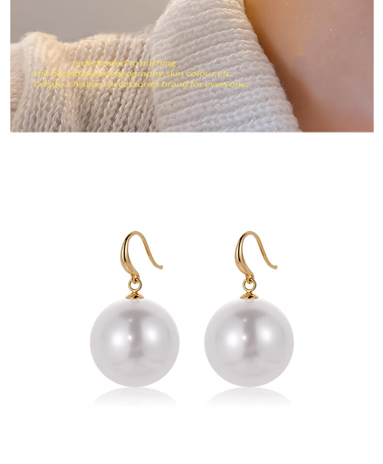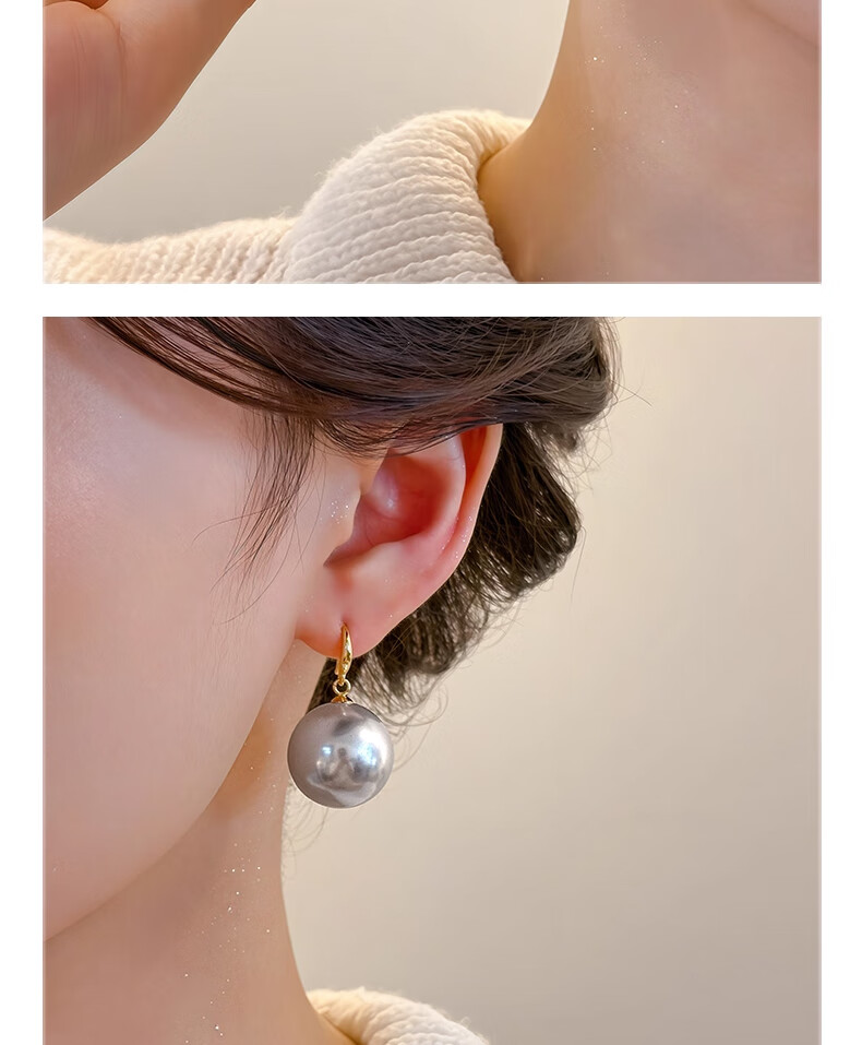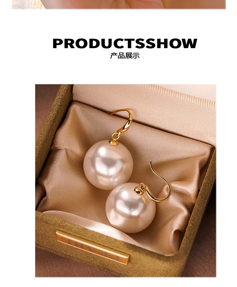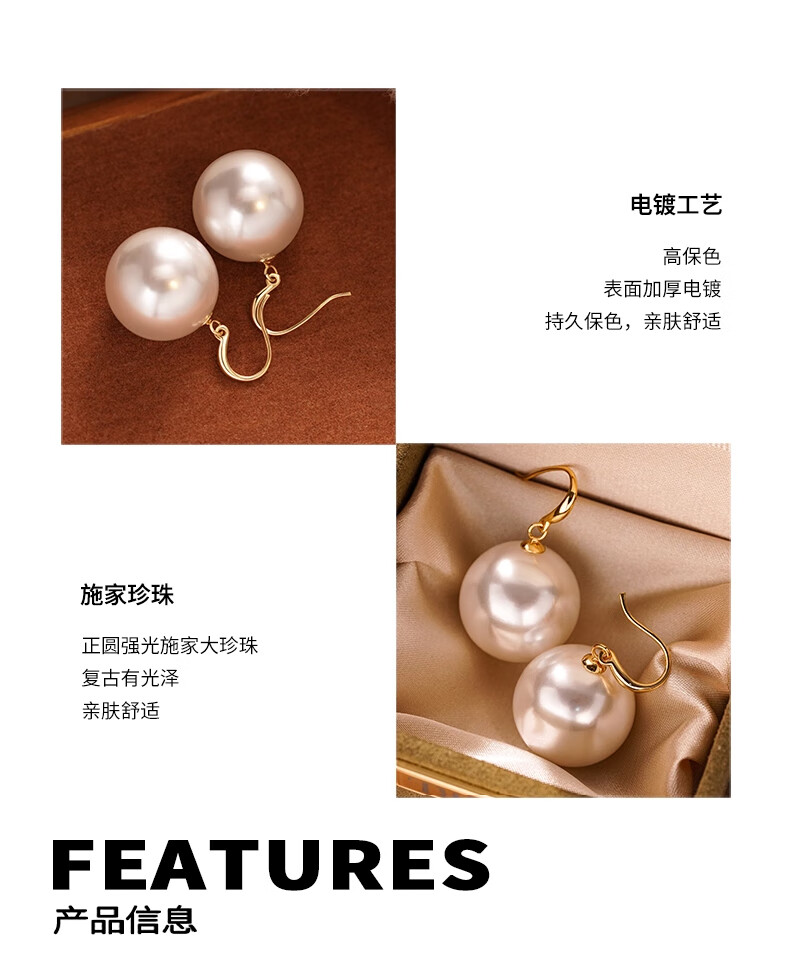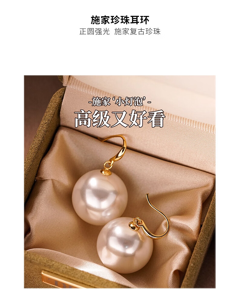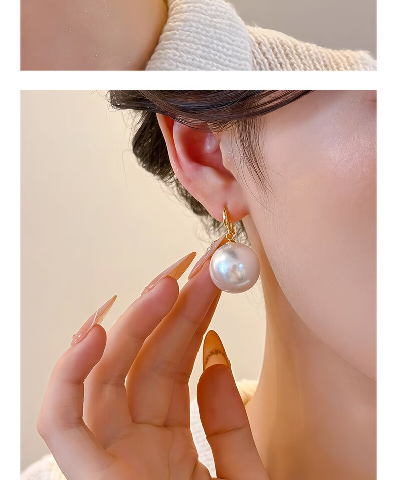 Qi Xiaomi large Shijia pearl earrings women's earrings 2025 new high-end light luxury earrings temperament round face earrings a pair of white large pearl earrings the same style as Liu Shishi