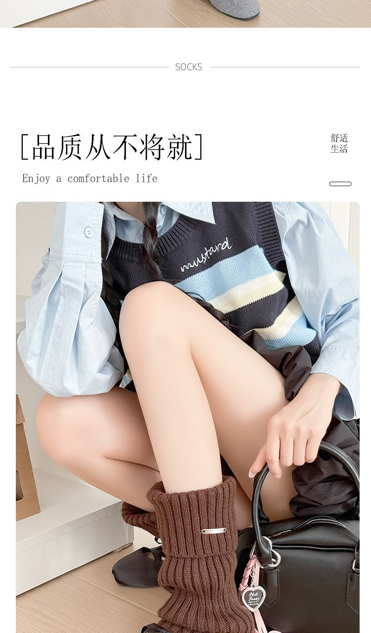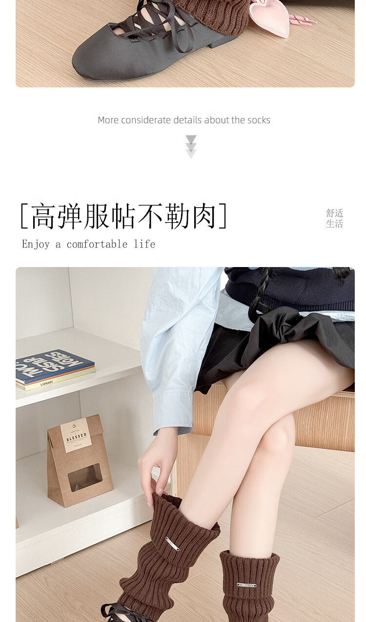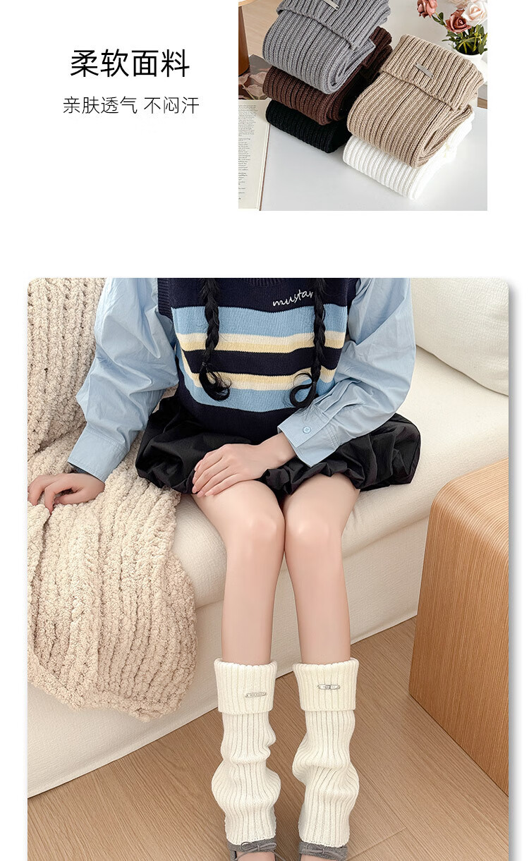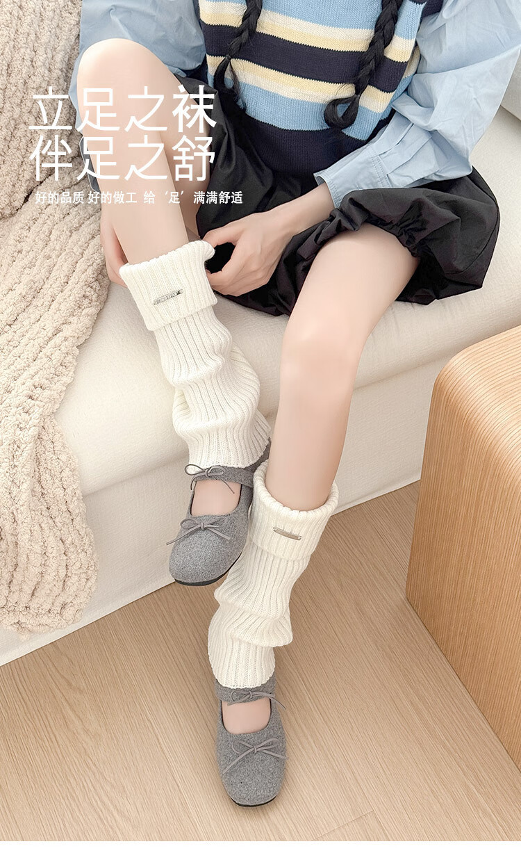 Zhuanying white metal pile socks women's autumn and winter knitted socks versatile y2k wear leg warmer socks wholesale white one size