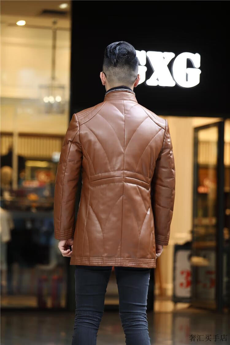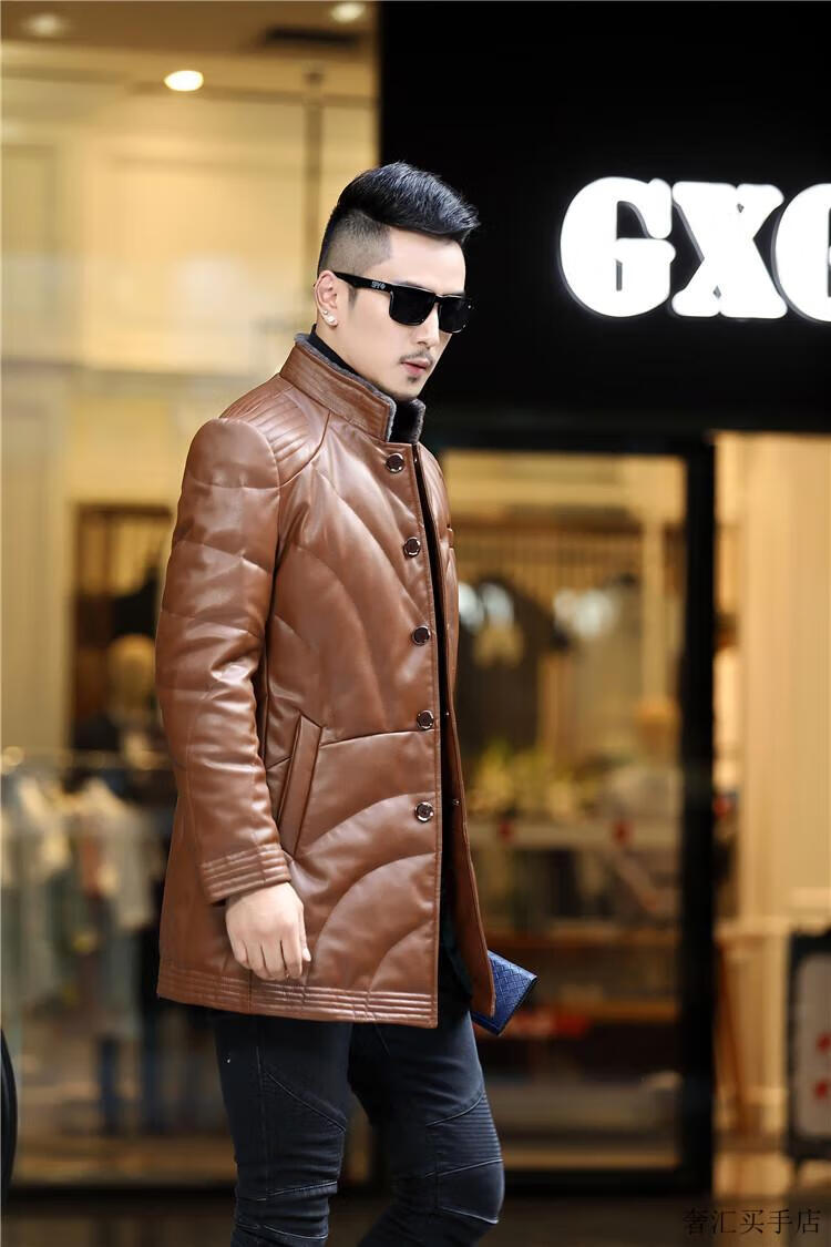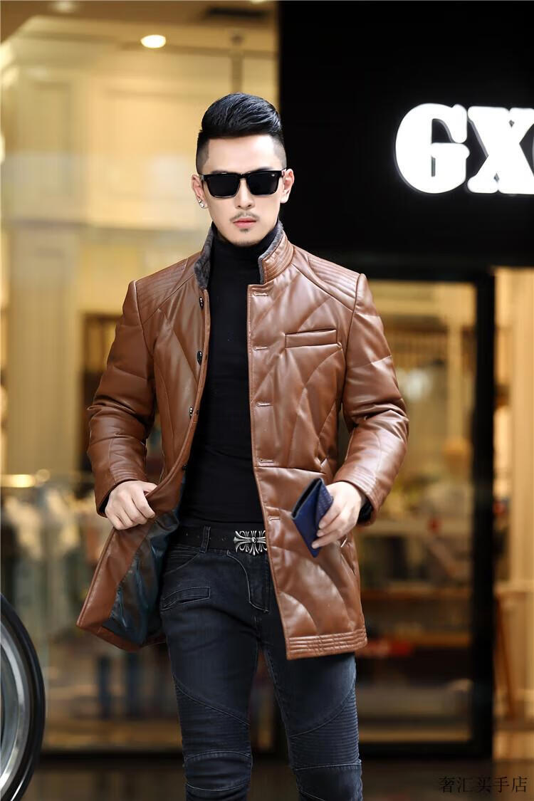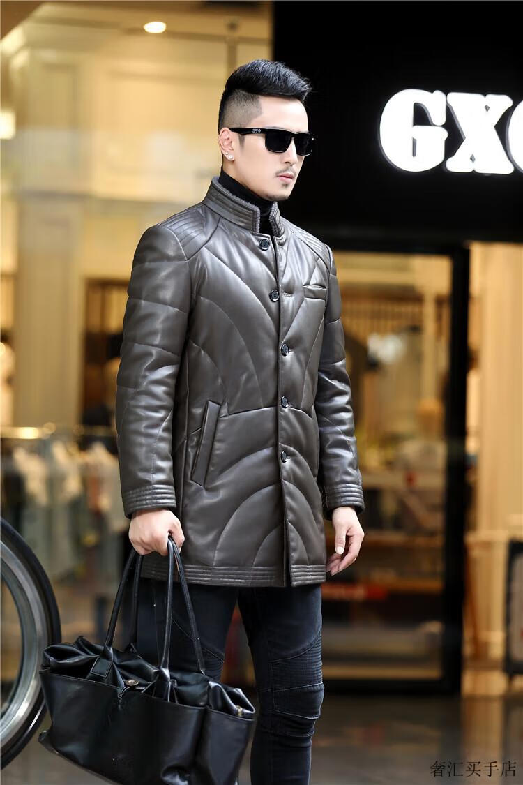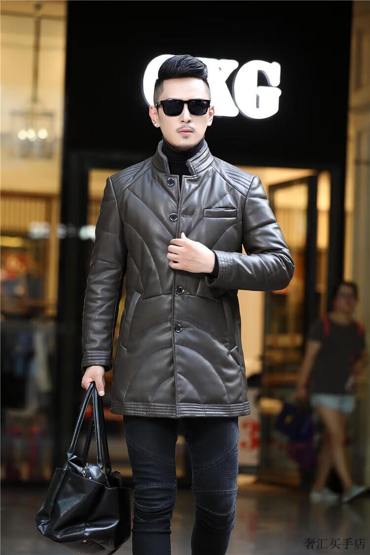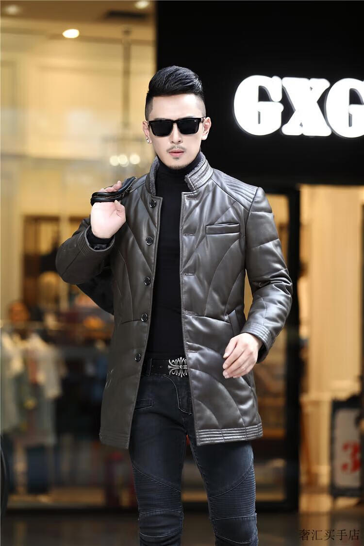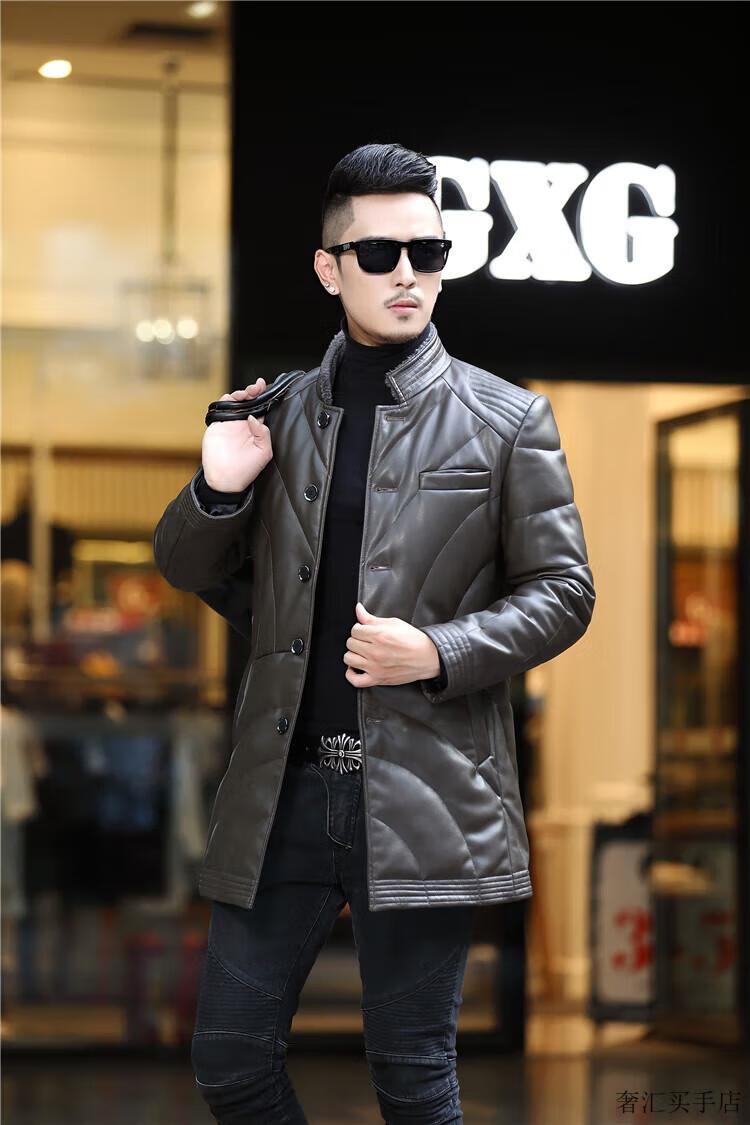 MAGIOPY international brand winter new leather clothes men's long leather coat slim Korean style youth stand-up collar windbreaker jacket trend international light luxury gray M