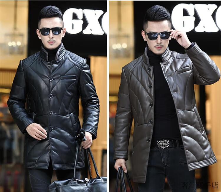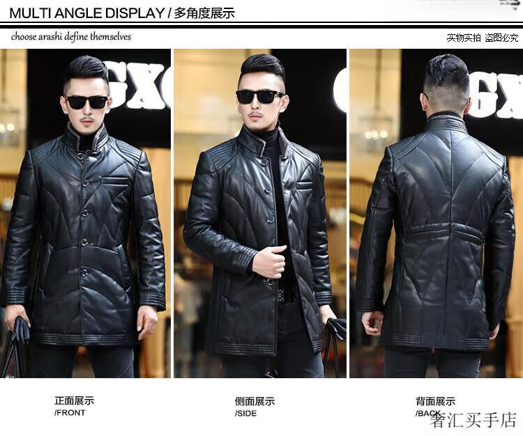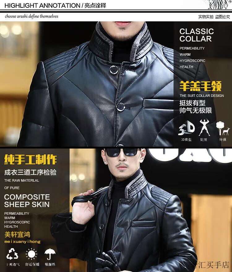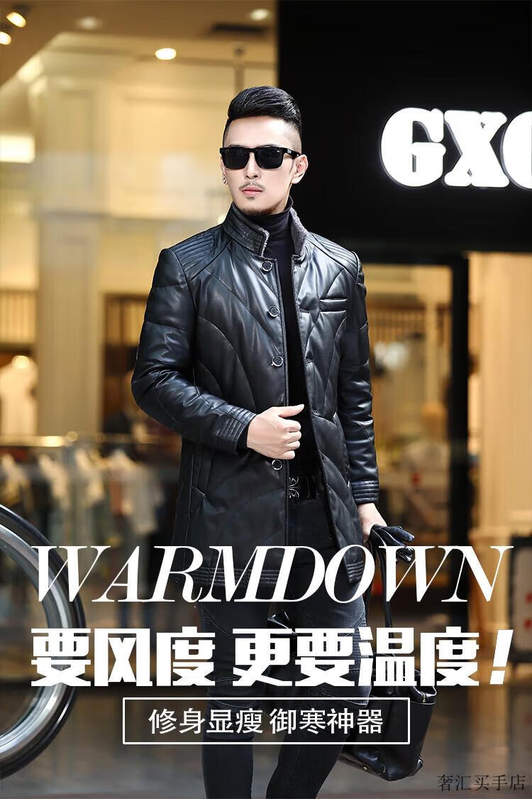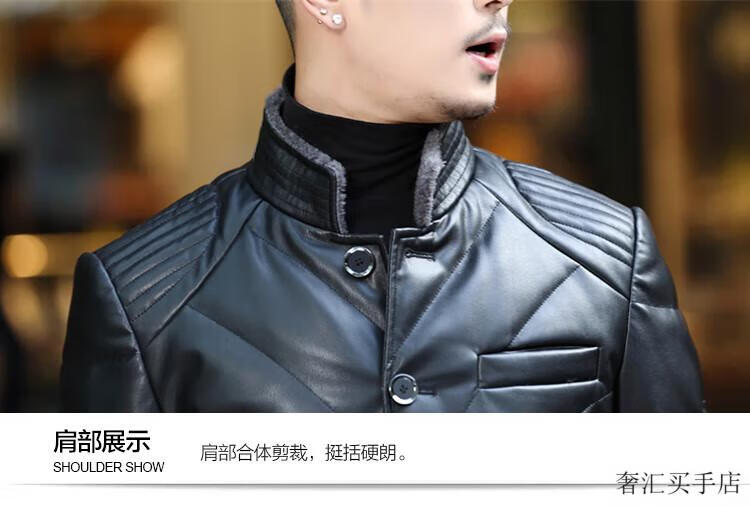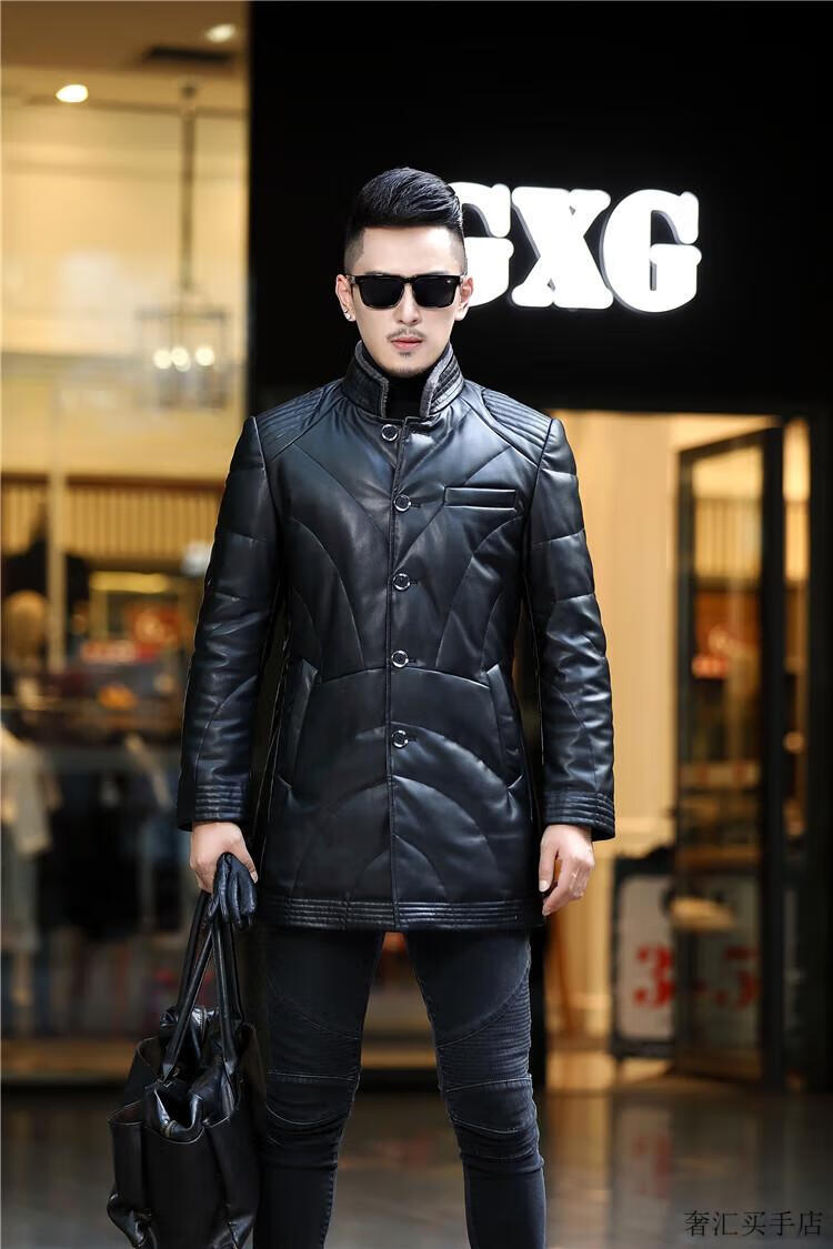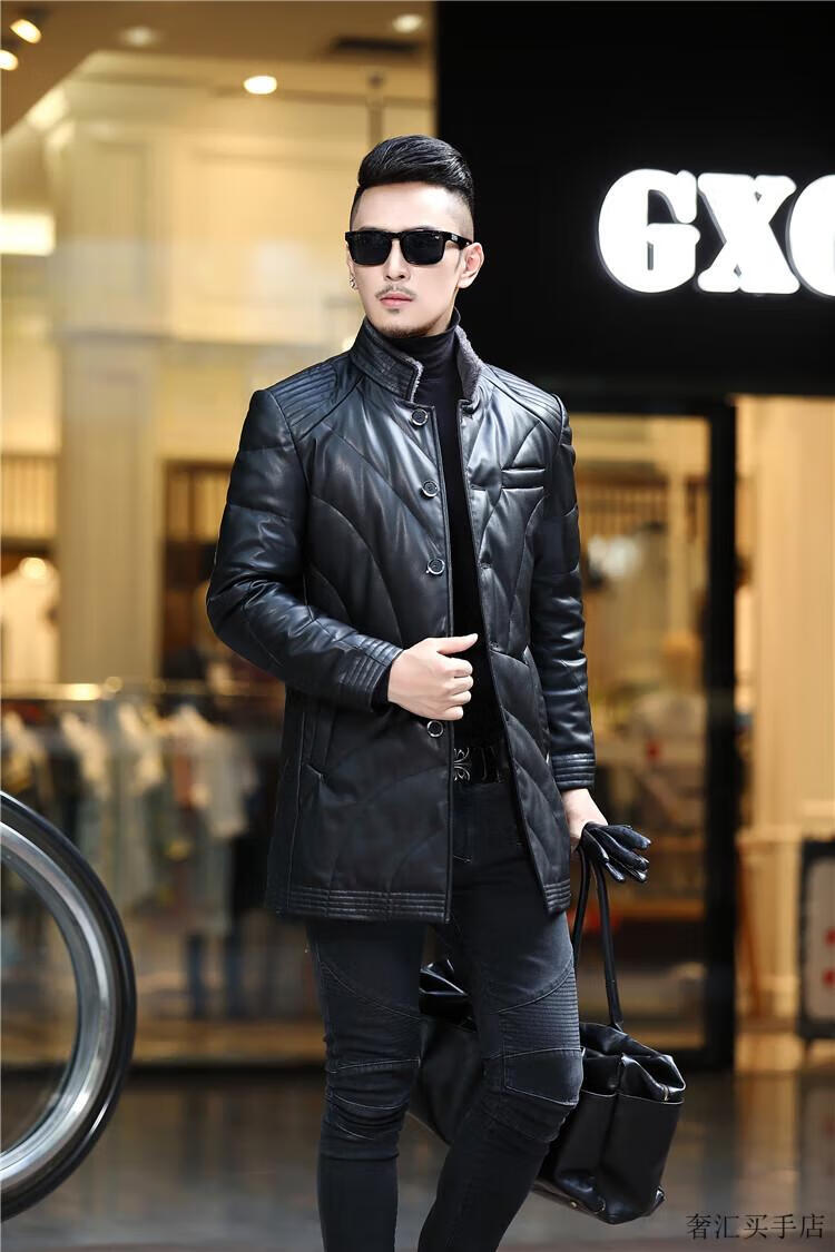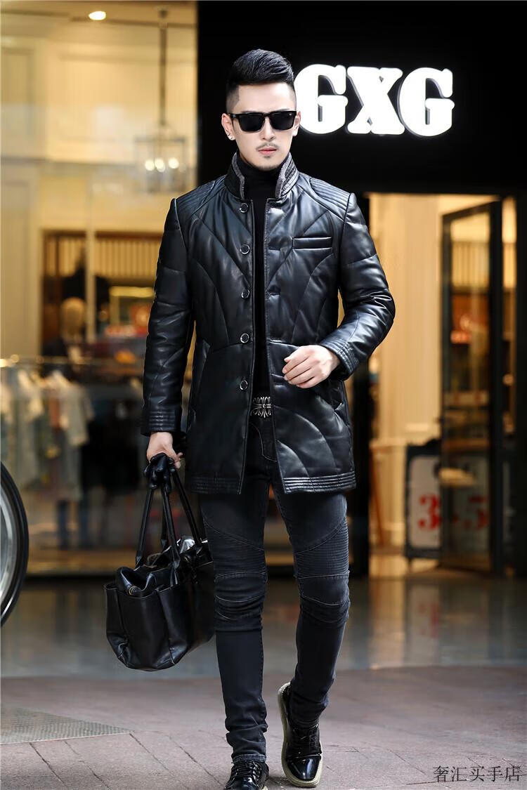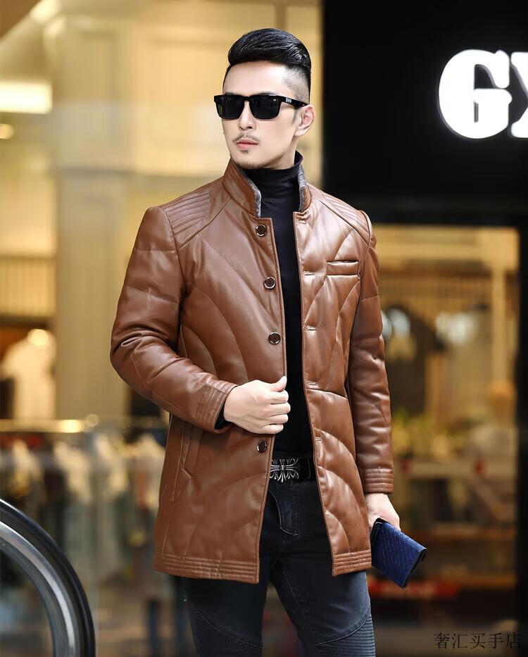 MAGIOPY international brand winter new leather clothes men's long leather coat slim Korean style youth stand-up collar windbreaker jacket trend international light luxury gray M