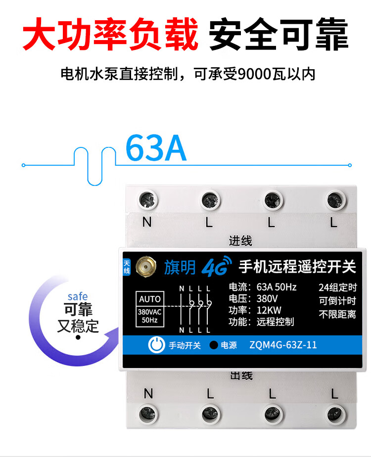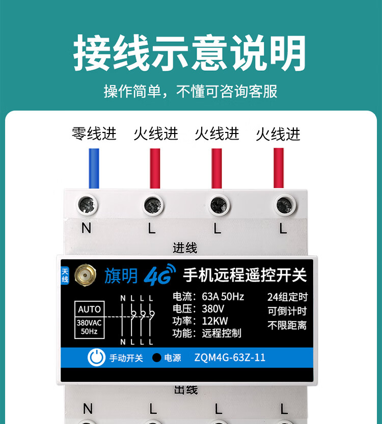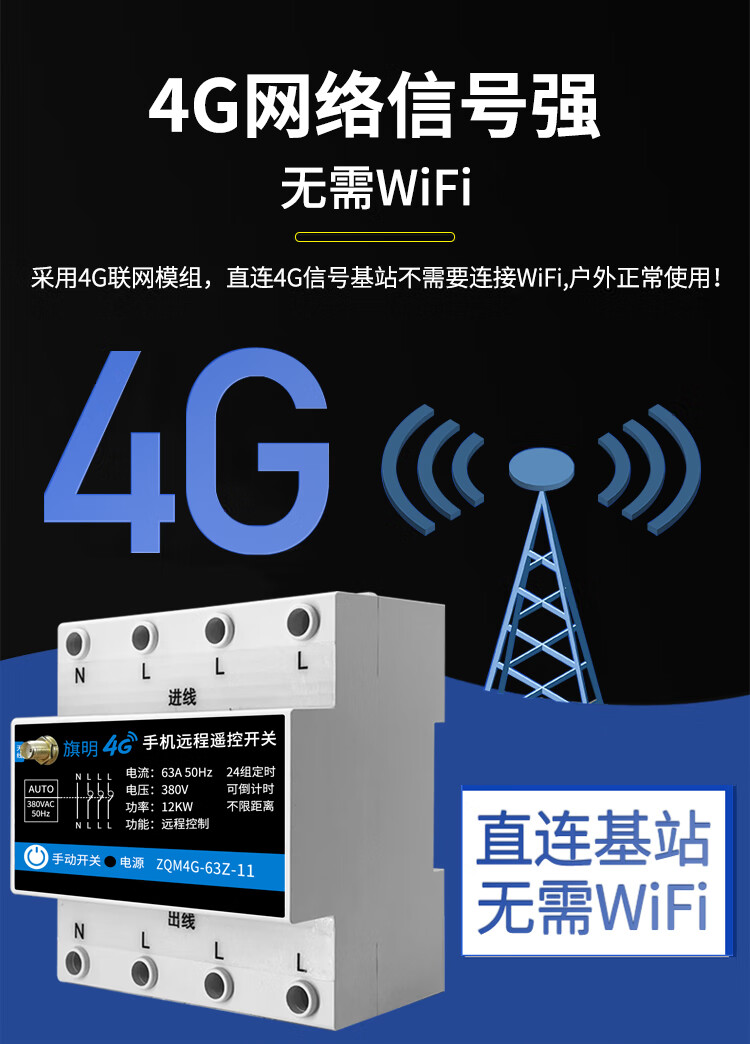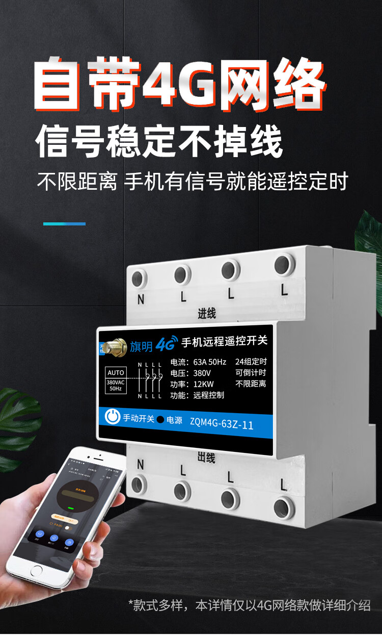 380V water pump fan intelligent remote controller timer power supply high power three-phase 4G mobile phone remote control switch 4G with phase loss protection three-phase 380V can load 30 kilowatts (30