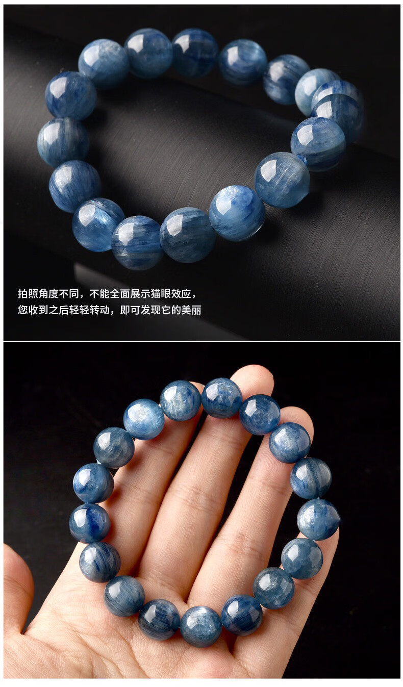 Natural niche gemstone kyanite bracelet old mineral cat's eye kyanite blue beads loose beads beaded bracelet 8mm
