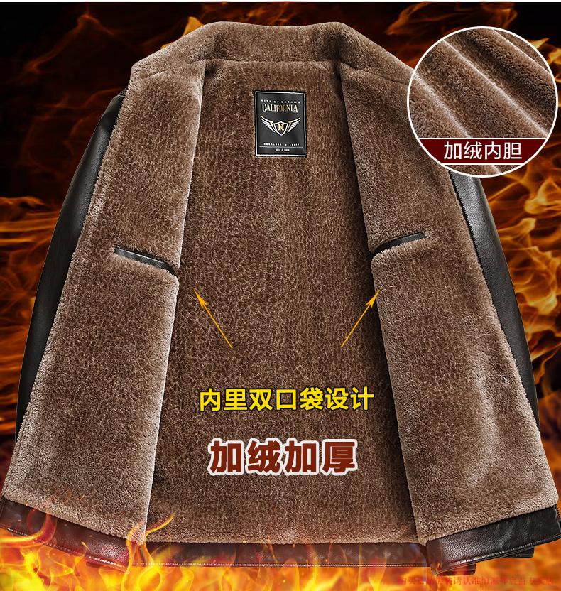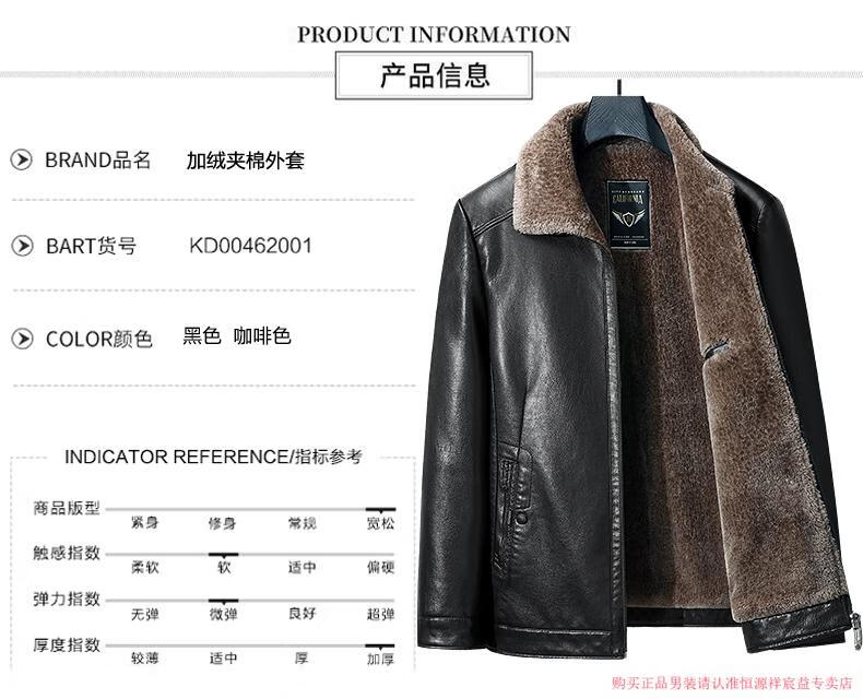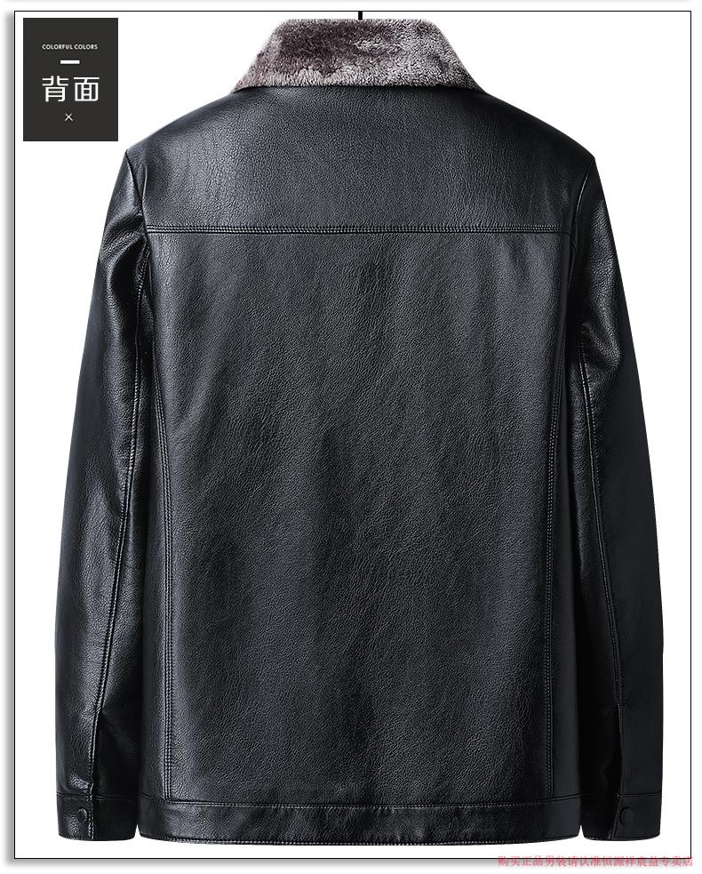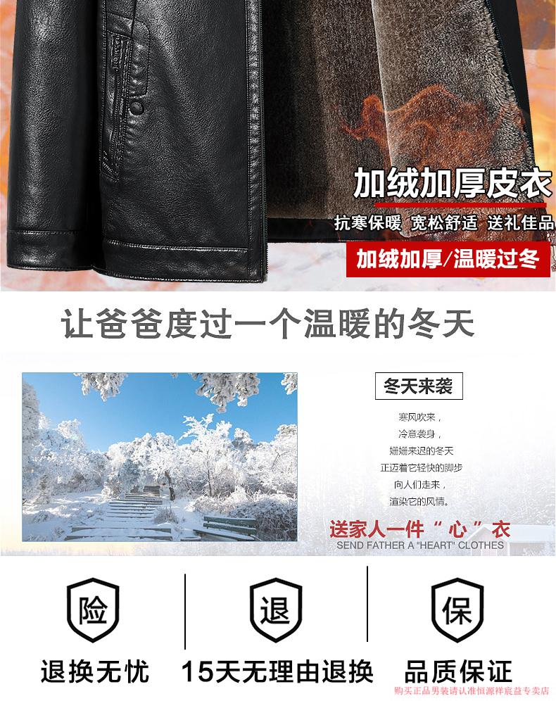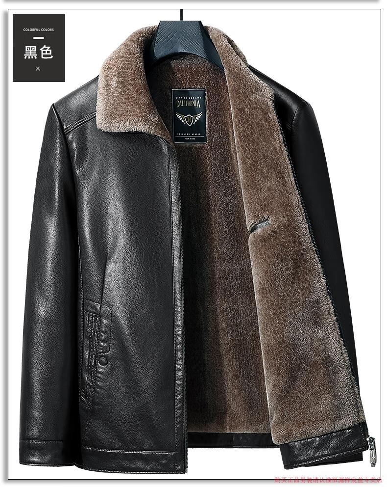 Hengyuanxiang 2025 new leather jacket for middle-aged and elderly people, plus velvet and thickened men's leather jacket, dad winter clothing, middle-aged outer suit, black M 170 (suitable for 80-Jin Jin is equal to 0.5 kg)