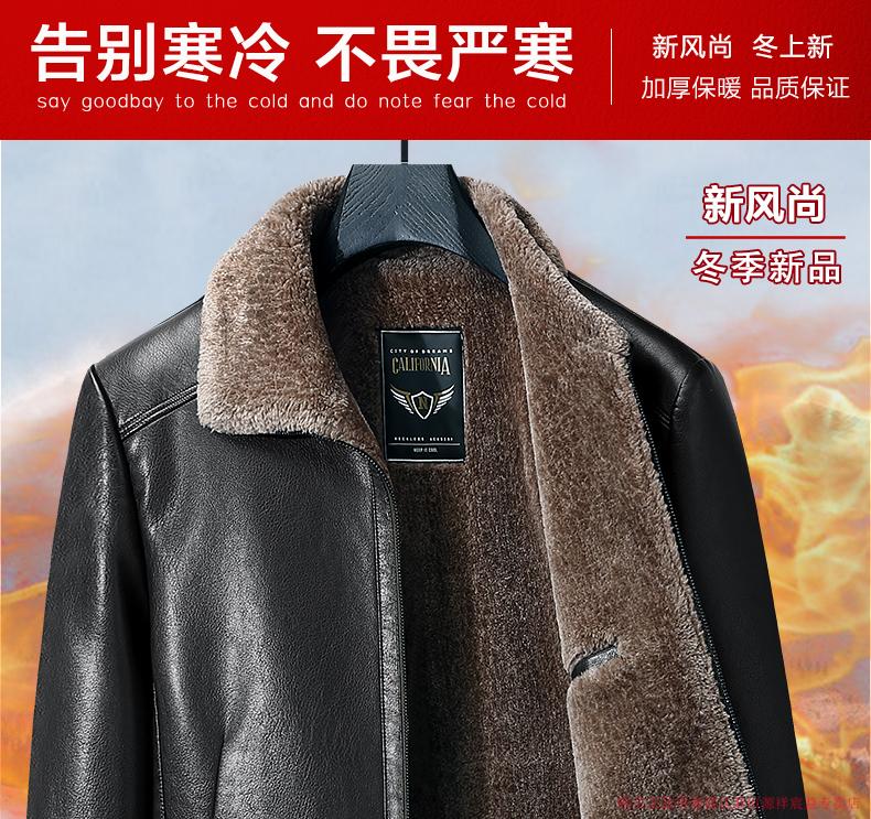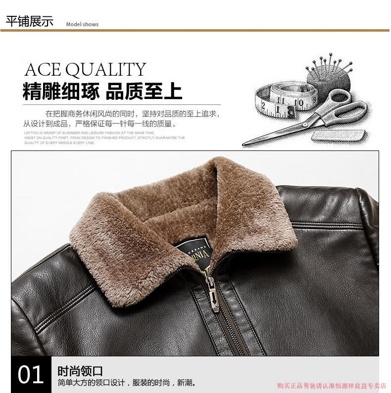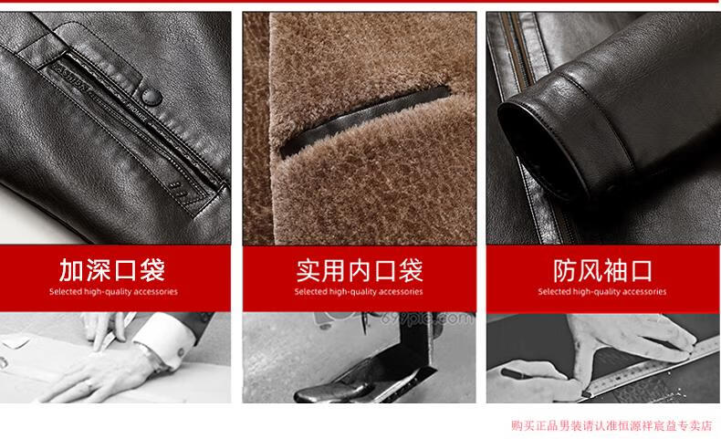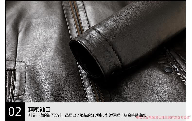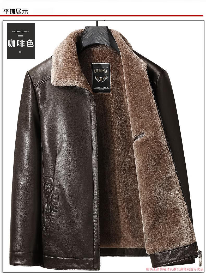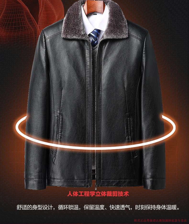 Hengyuanxiang 2025 new leather jacket for middle-aged and elderly people, plus velvet and thickened men's leather jacket, dad winter clothing, middle-aged outer suit, black M 170 (suitable for 80-Jin Jin is equal to 0.5 kg)