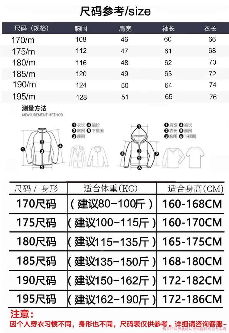 China (cm) 165 / 88-90 170 / 96-98 175 / 108-110 180 / 118-122 185 / 126-130