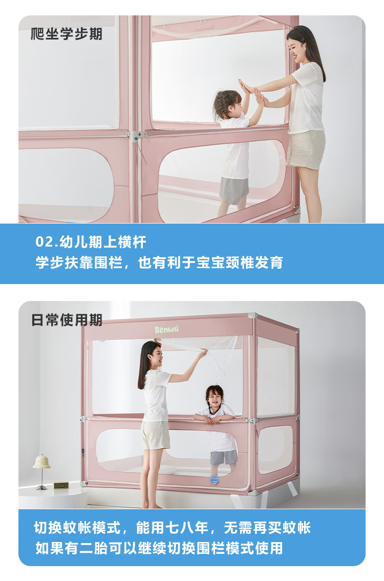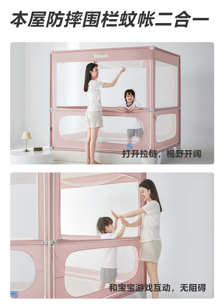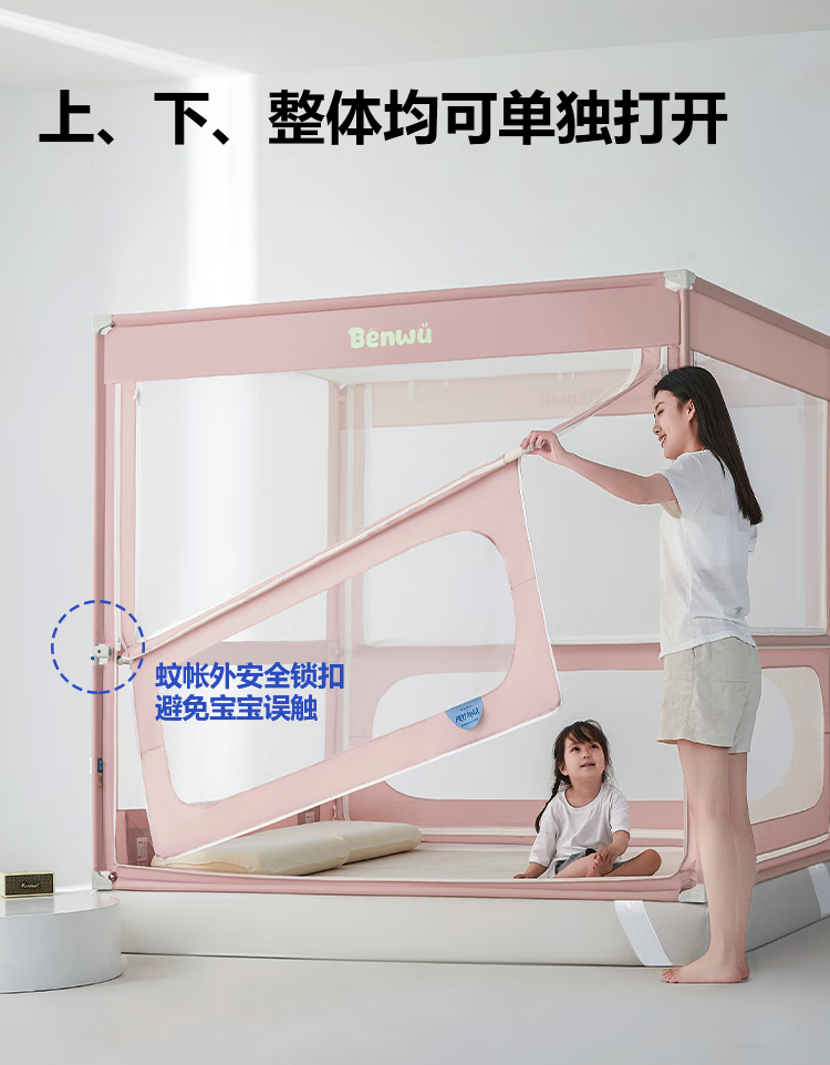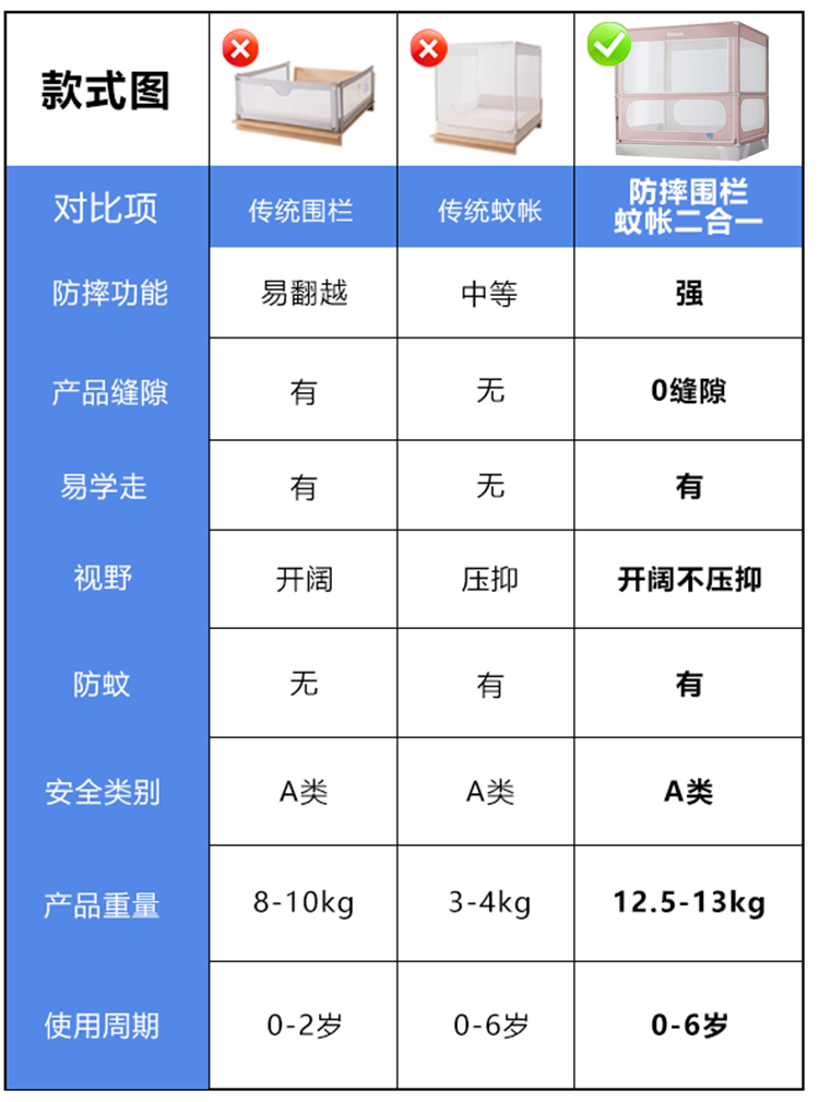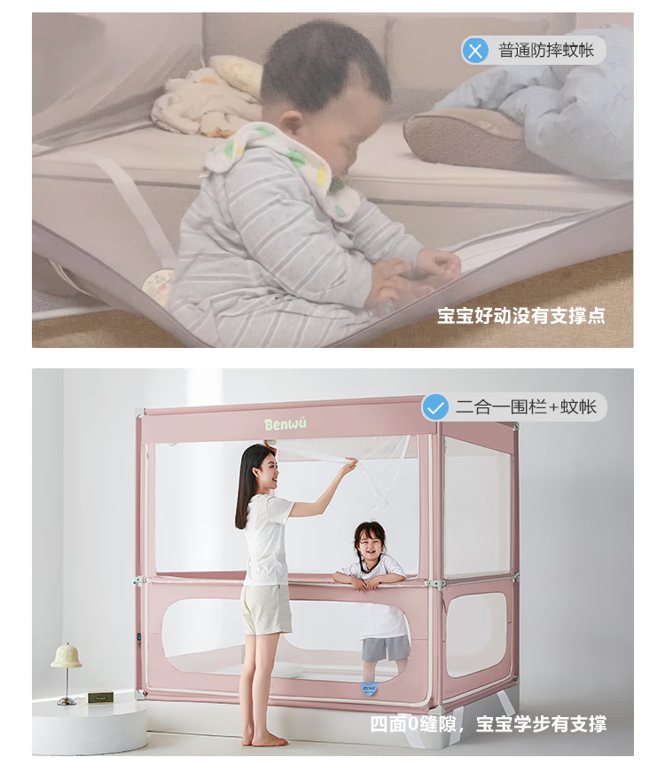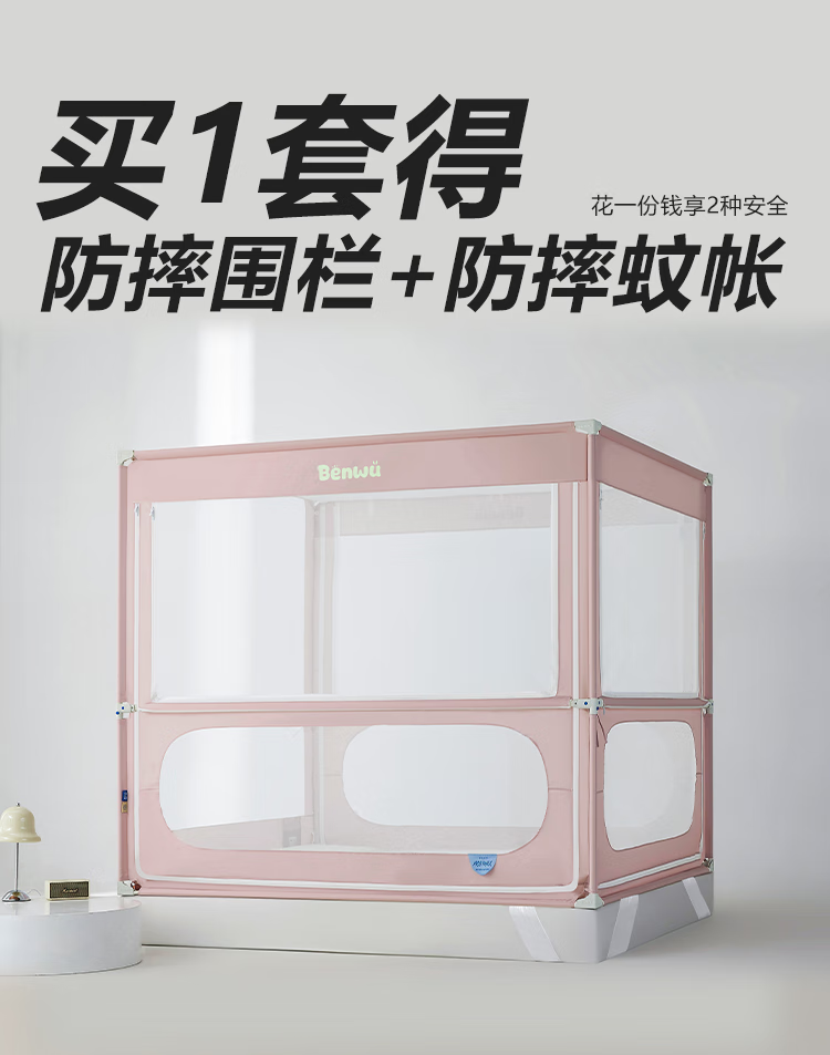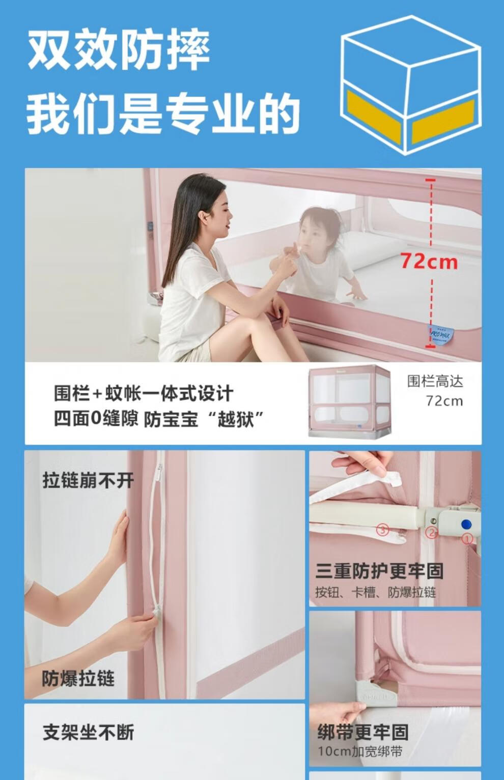 Our creative anti-fall fence mosquito net two-in-one 2025 new home bedroom maternal and infant anti-fall baby blue-anti-fall fence mosquito net two-in-one double effect suitable for 1.5x2m bed