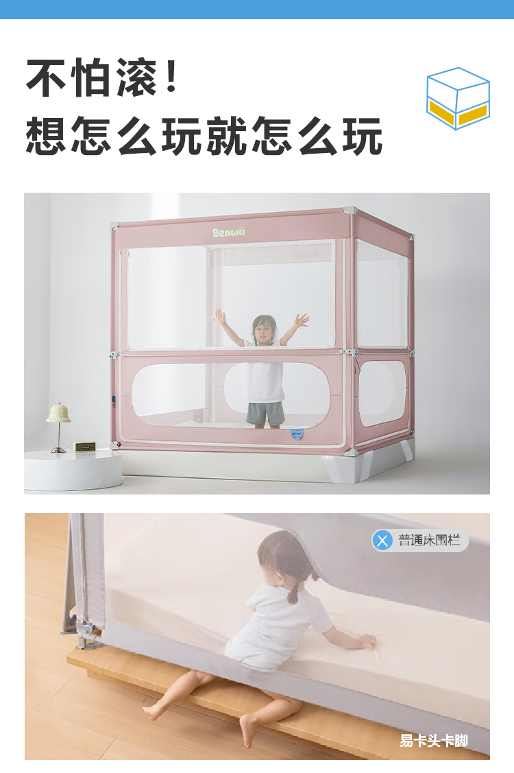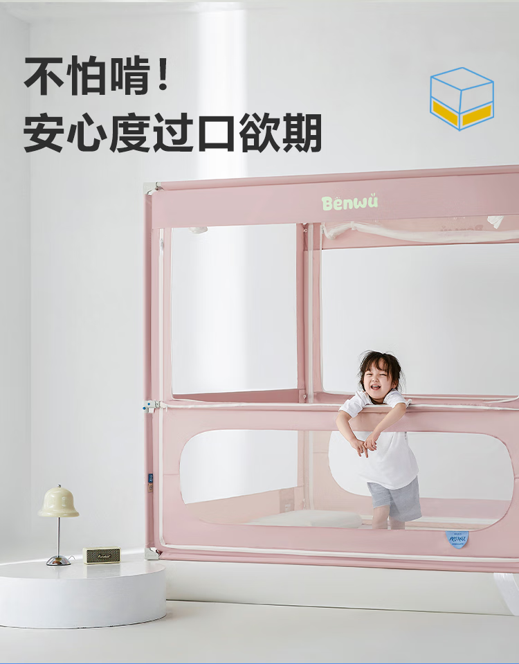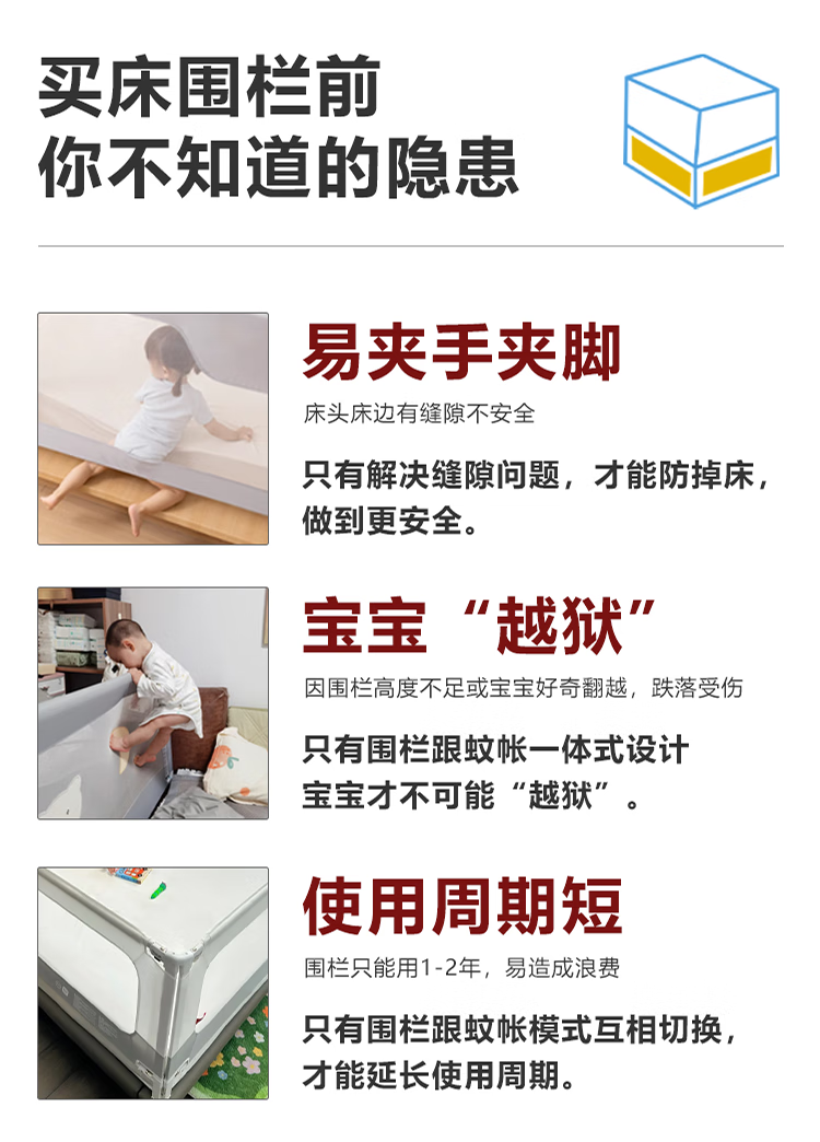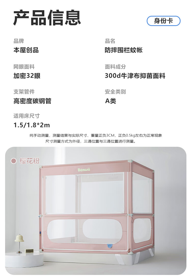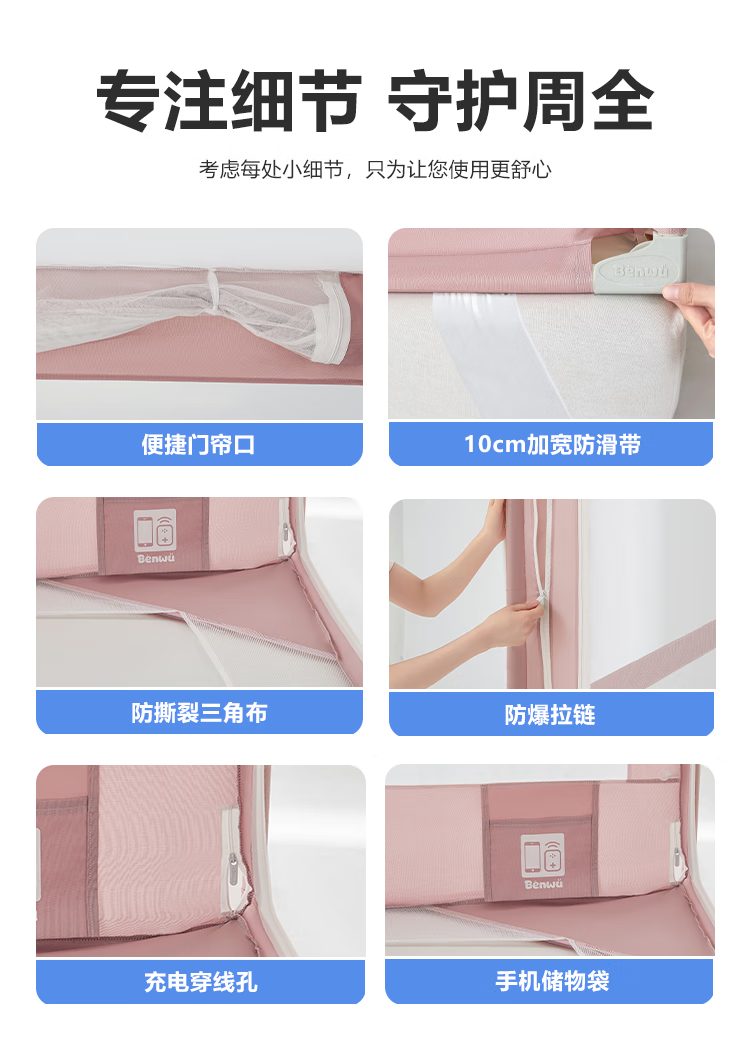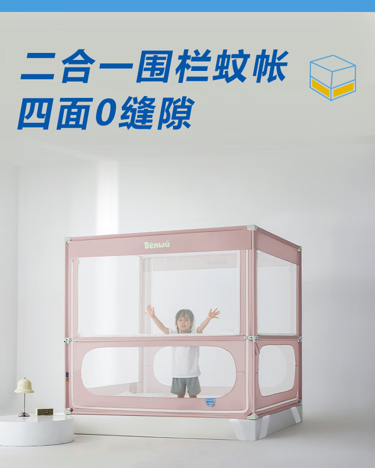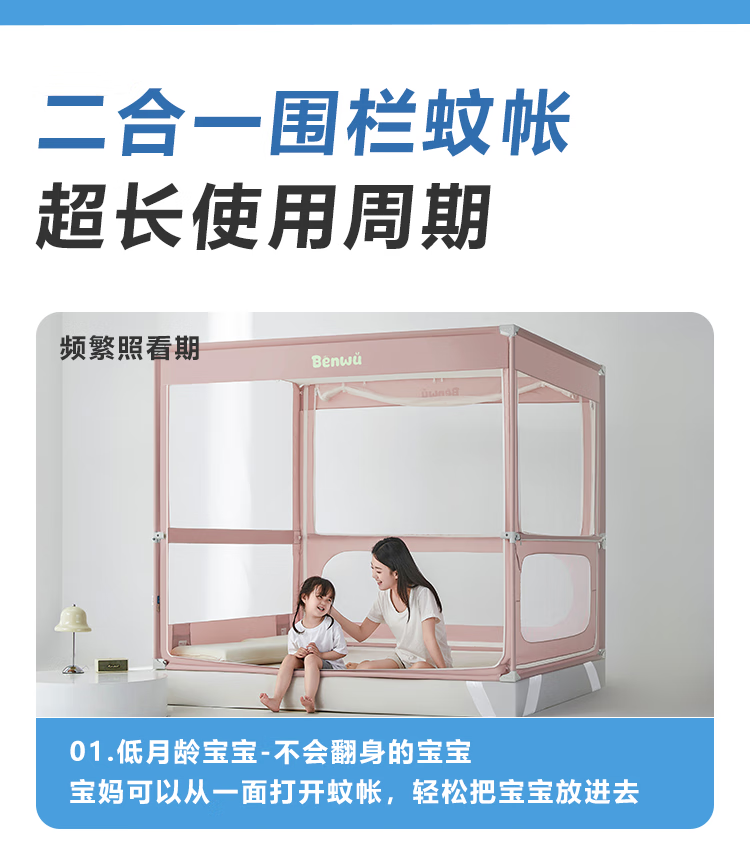 Our creative anti-fall fence mosquito net two-in-one 2025 new home bedroom maternal and infant anti-fall baby blue-anti-fall fence mosquito net two-in-one double effect suitable for 1.5x2m bed