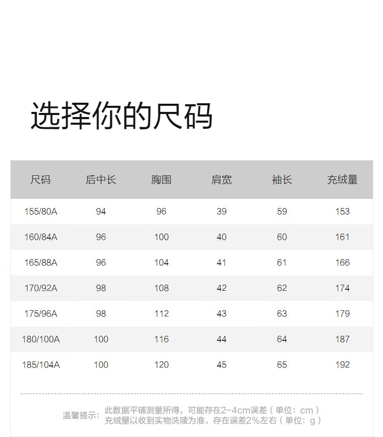 China (cm) 160-165/84-86 165-170 / 88-90 167-172 / 92-96 168-173 / 98-102 170-176 / 106-110