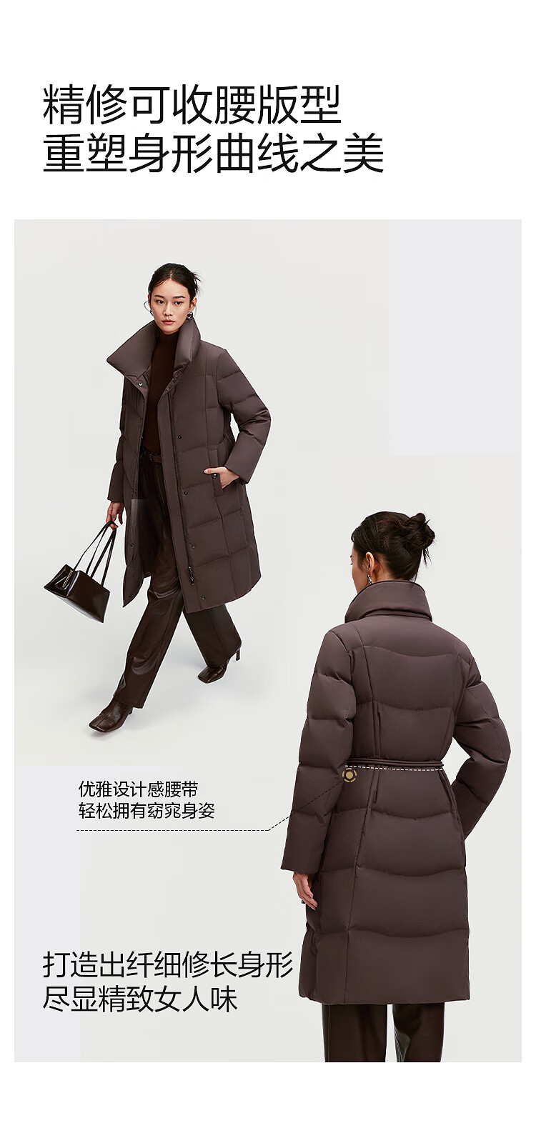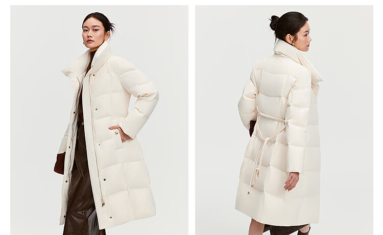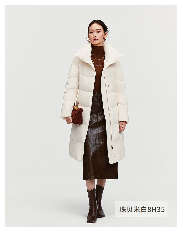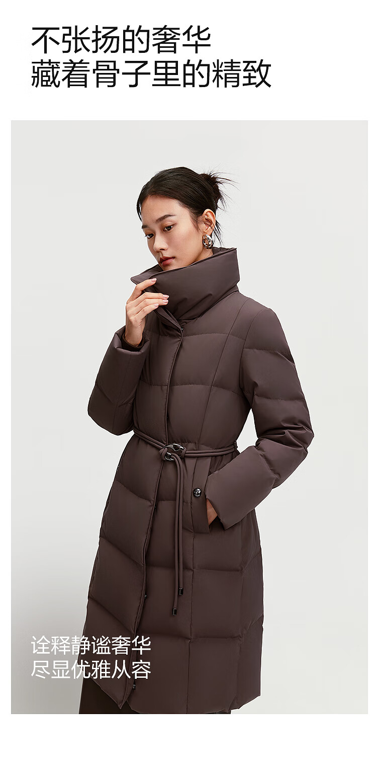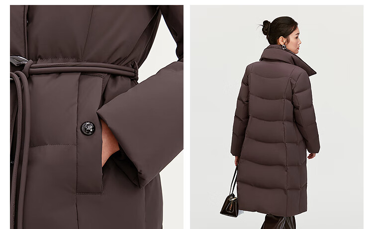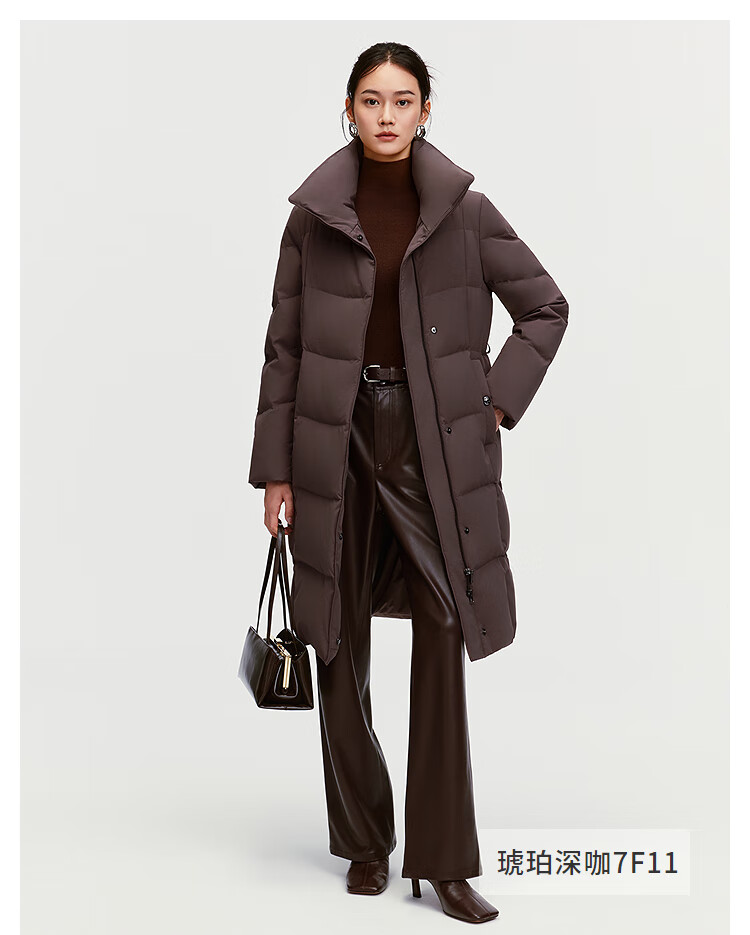 BOSIDENG down jacket women's 90 goose down mid-length commuting quiet luxury style waisted winter warm jacket B250244316 Amber Dark Coffee 7F11-Trend Recommendation S 160/84A Weight is about 100-110Jin Jin is equal to 0.5 kg