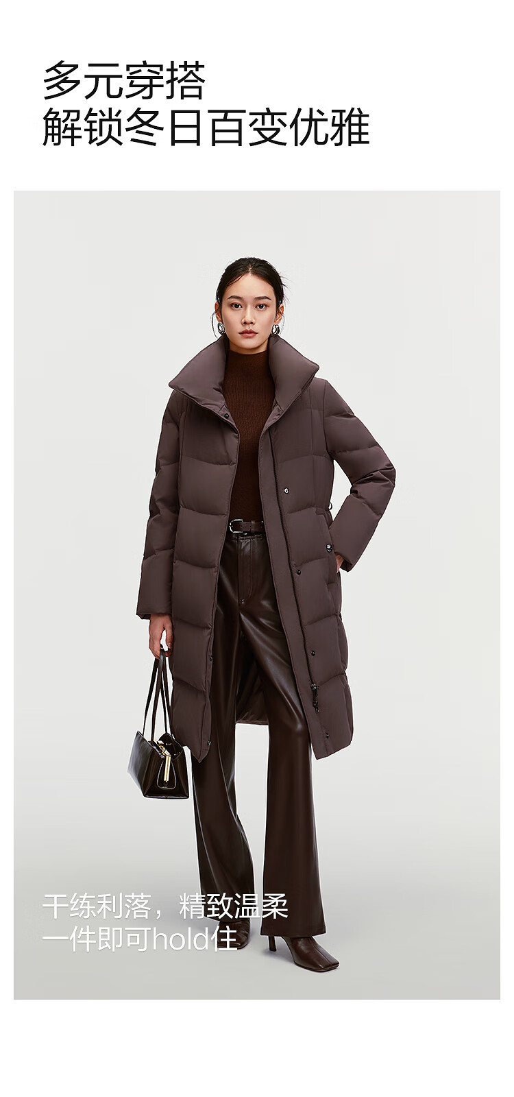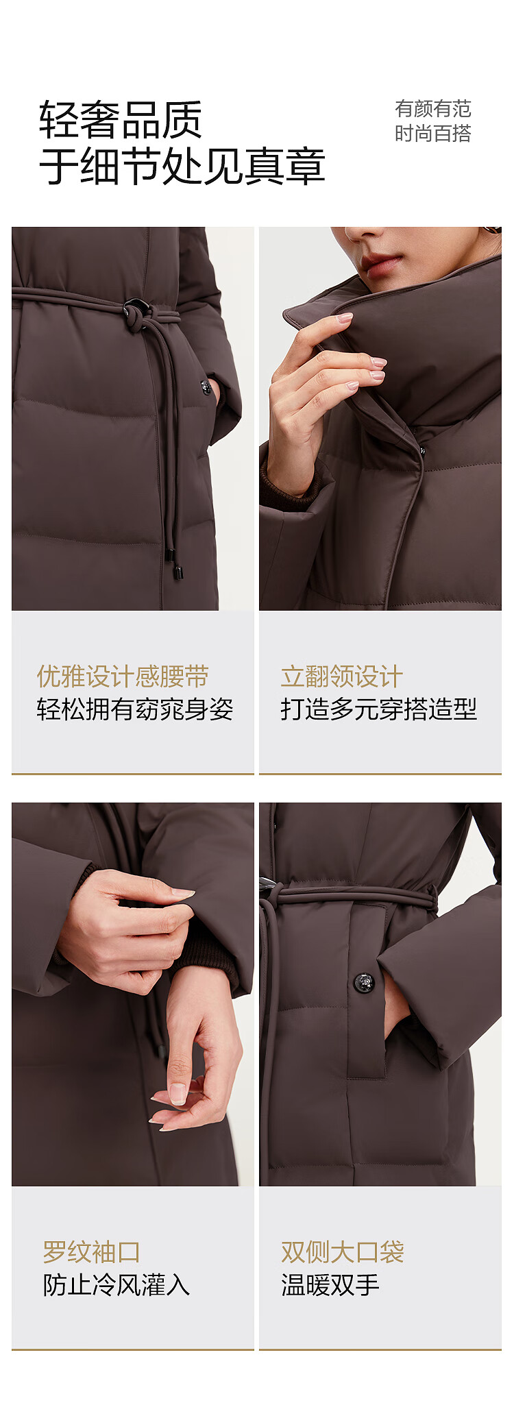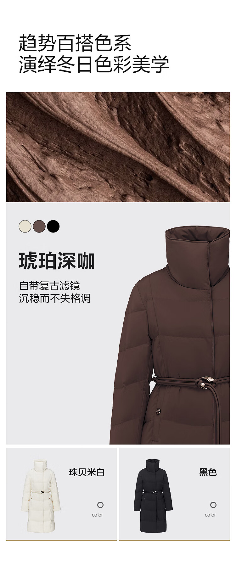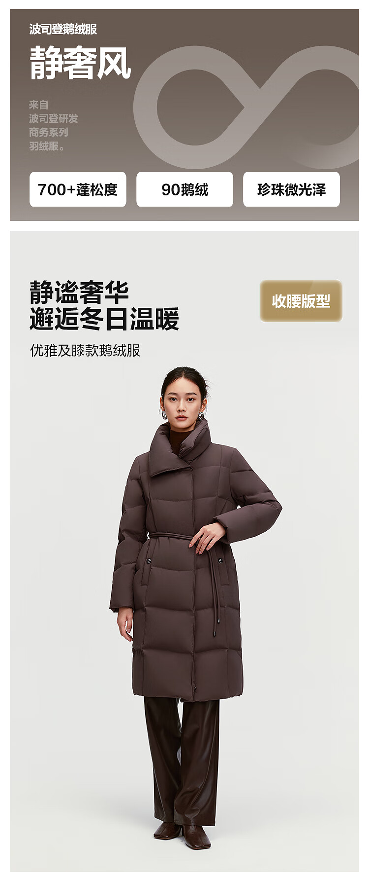 BOSIDENG down jacket women's 90 goose down mid-length commuting quiet luxury style waisted winter warm jacket B250244316 Amber Dark Coffee 7F11-Trend Recommendation S 160/84A Weight is about 100-110Jin Jin is equal to 0.5 kg