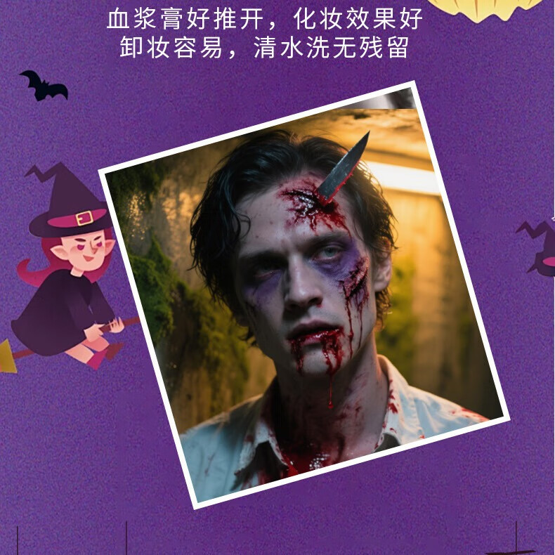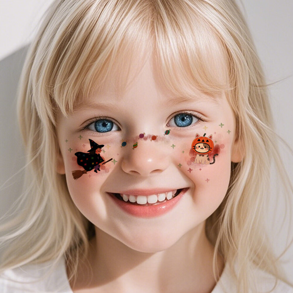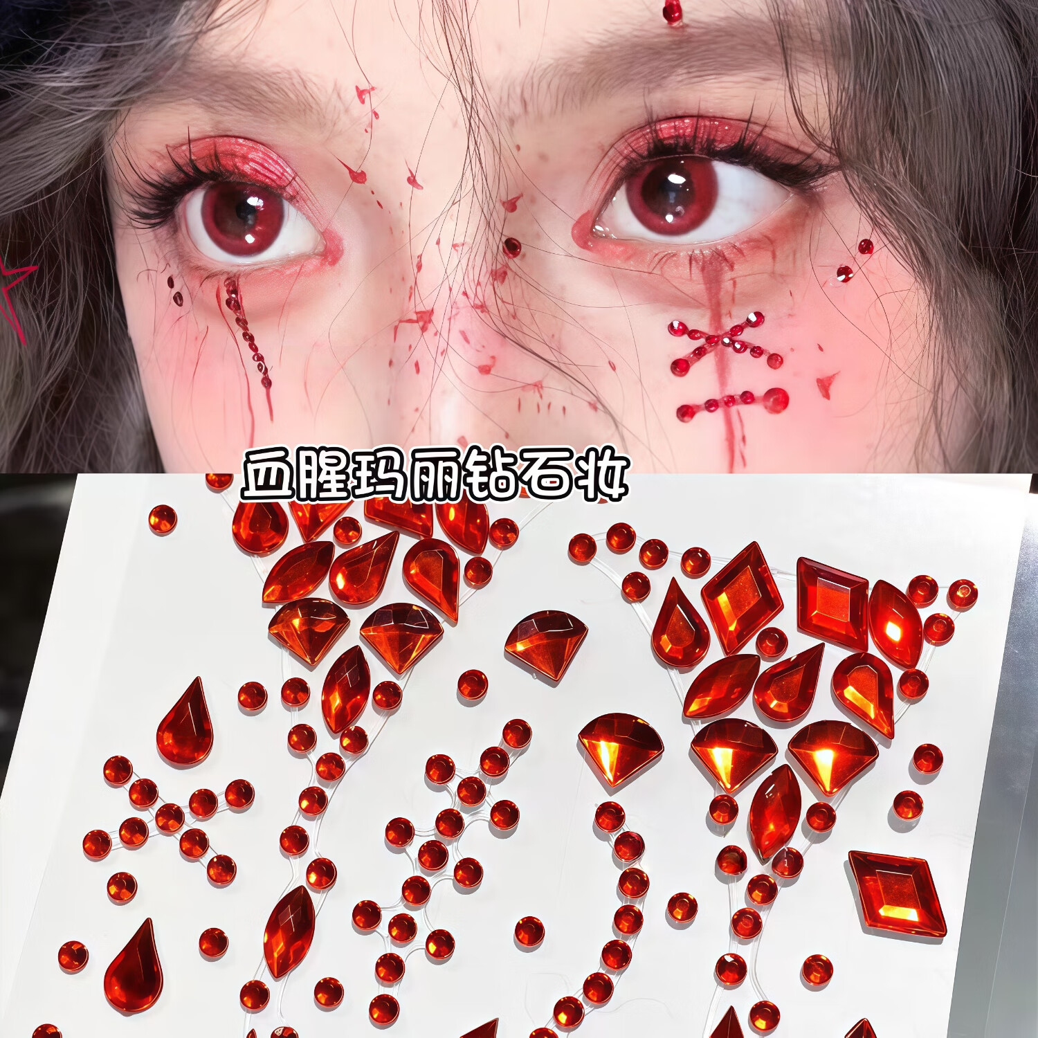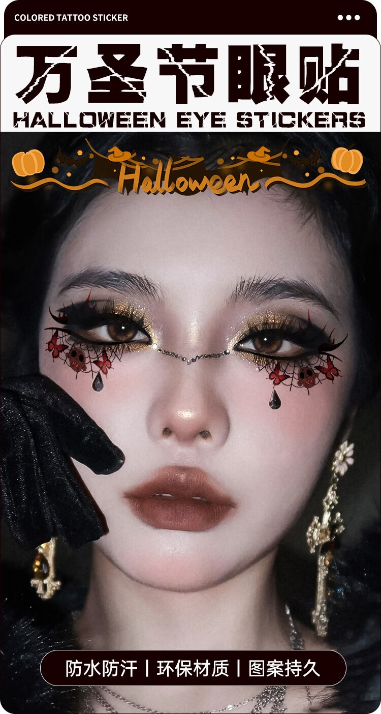 SNQP Halloween face stickers, blood diamond decorations, accessories, makeup stickers, props, makeup, plasma cream, fake blood tattoo stickers, Halloween eye makeup stickers, four types each 19.5*8CM