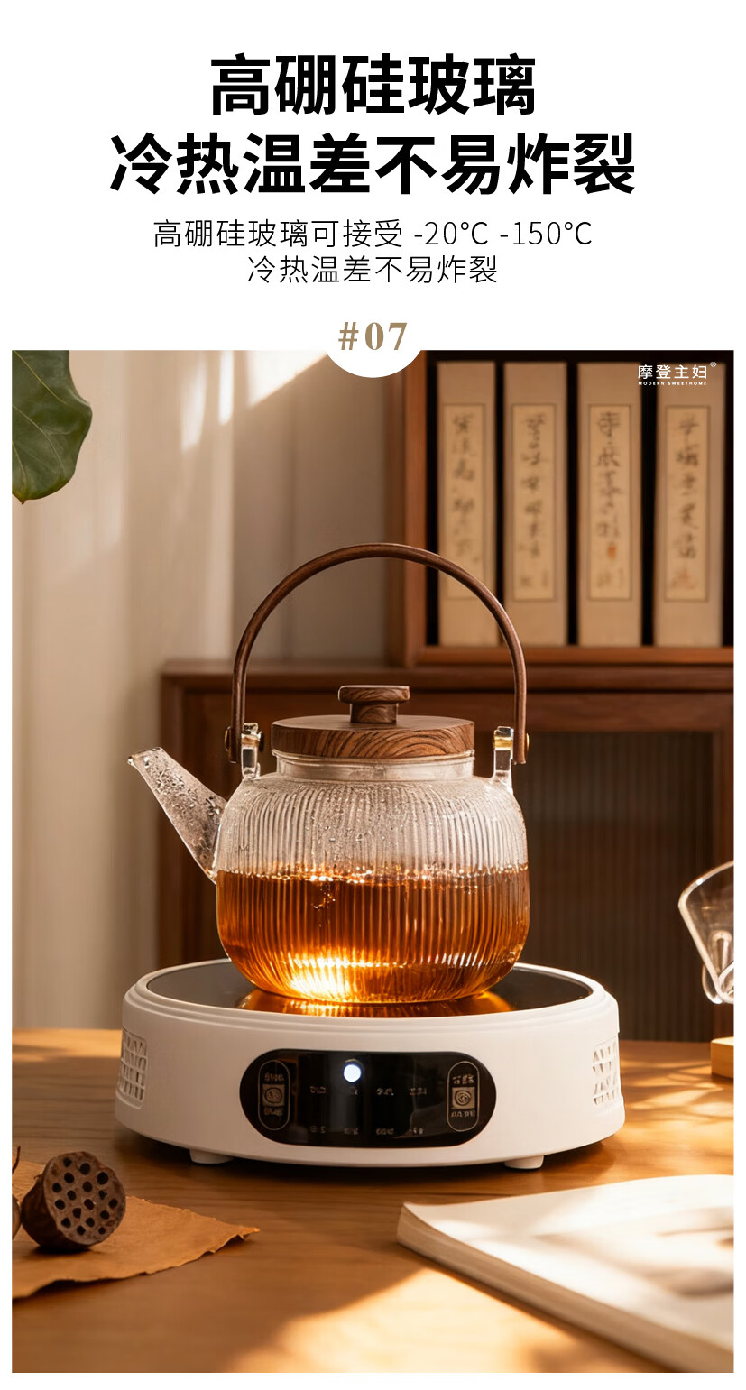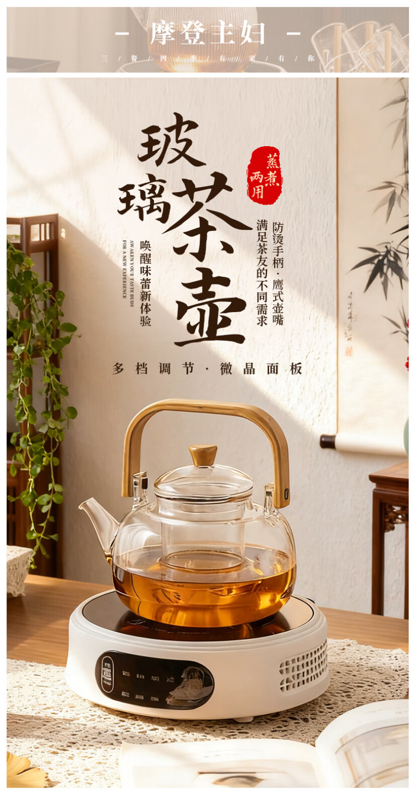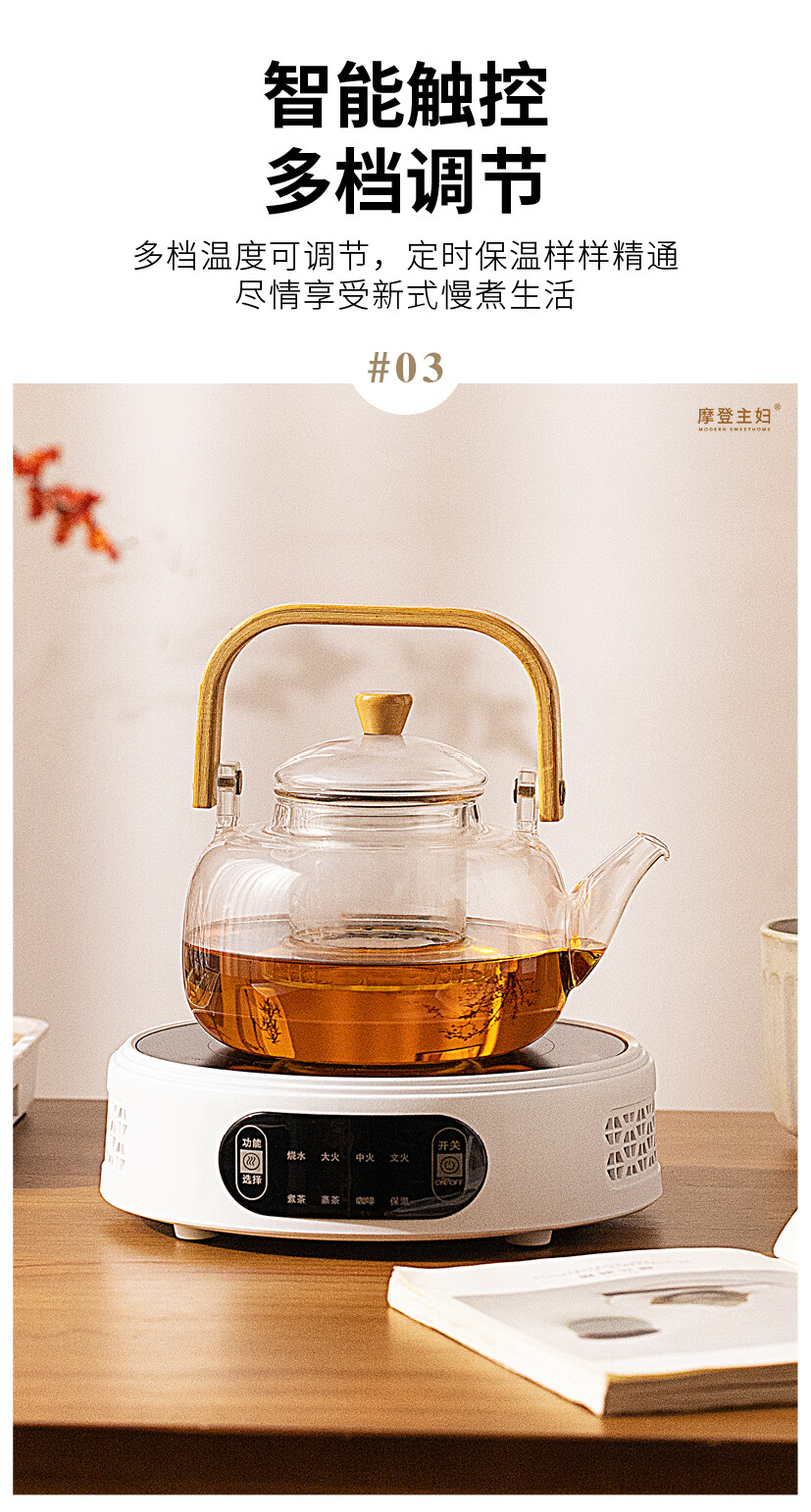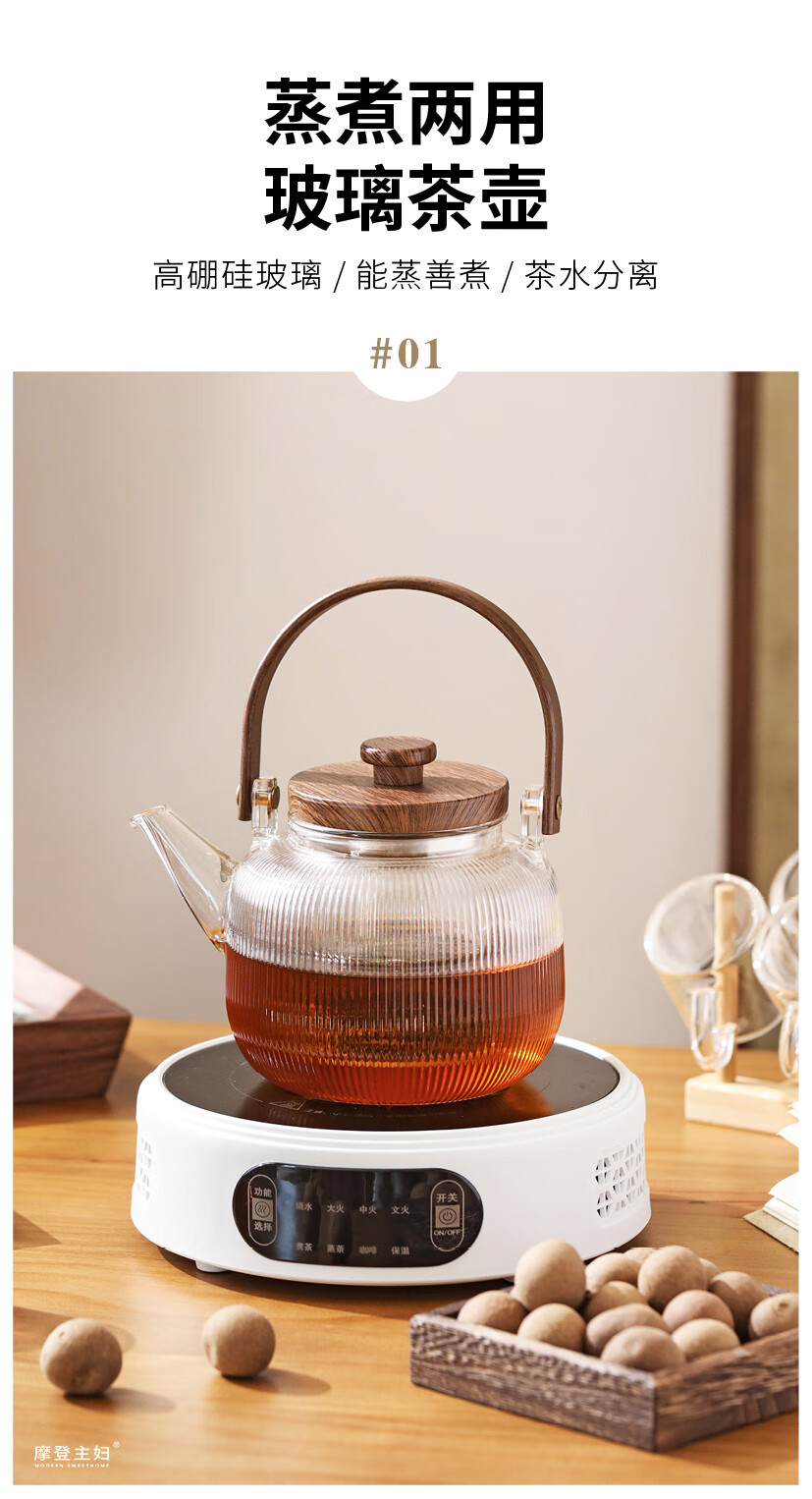 Modern Housewife Cooking Tea Set Around the Stove 2025 New Electric Ceramic Stove Health Pot Steaming Teapot Utensils Full Set Glass Kettle Flat Light Steaming Dual Kettle 1000ml