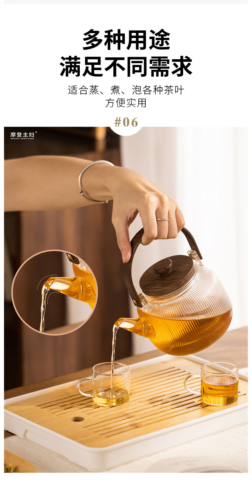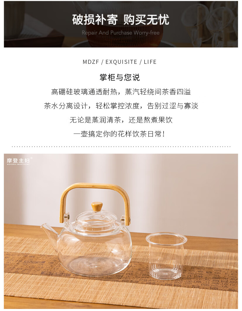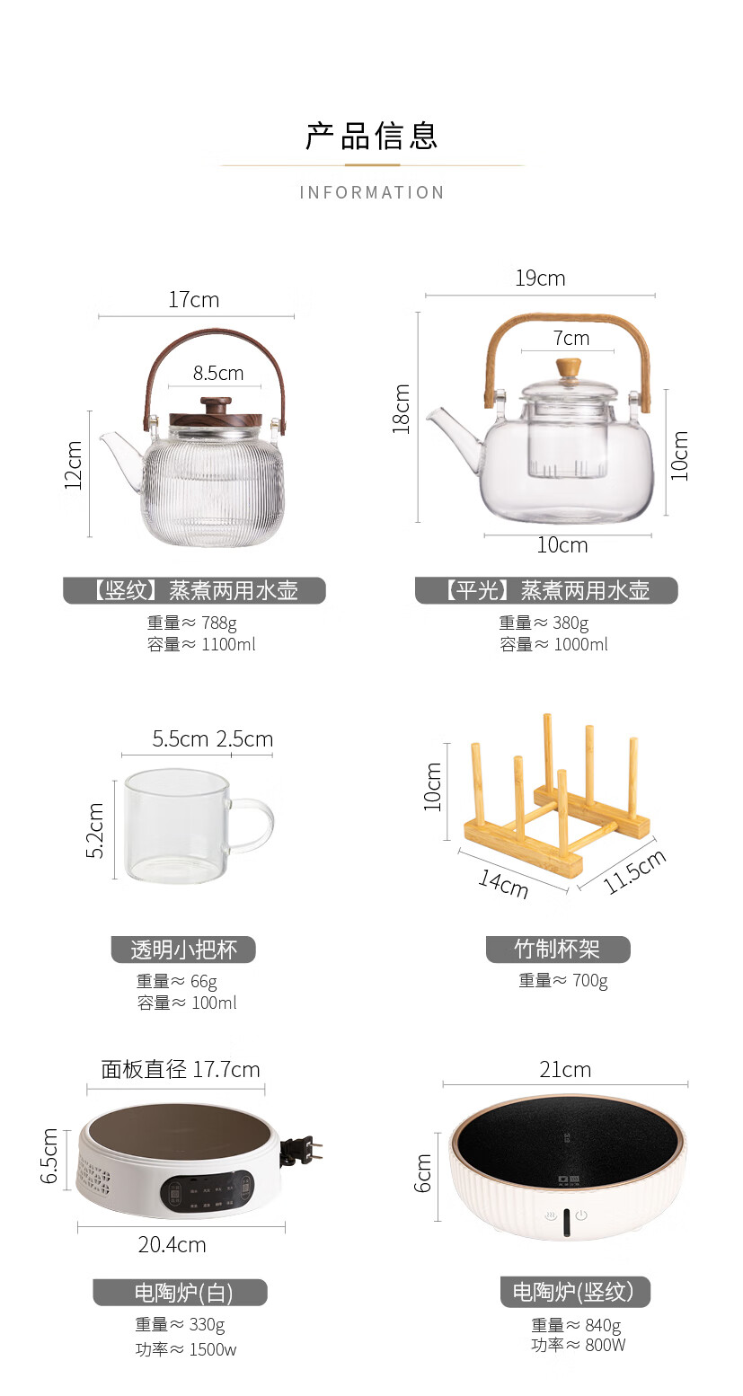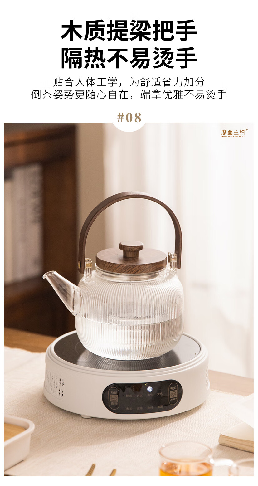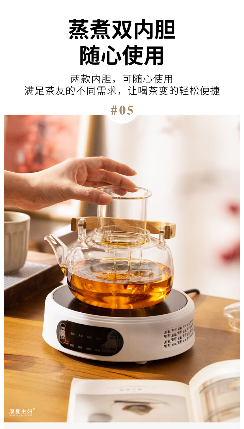 Modern Housewife Cooking Tea Set Around the Stove 2025 New Electric Ceramic Stove Health Pot Steaming Teapot Utensils Full Set Glass Kettle Flat Light Steaming Dual Kettle 1000ml