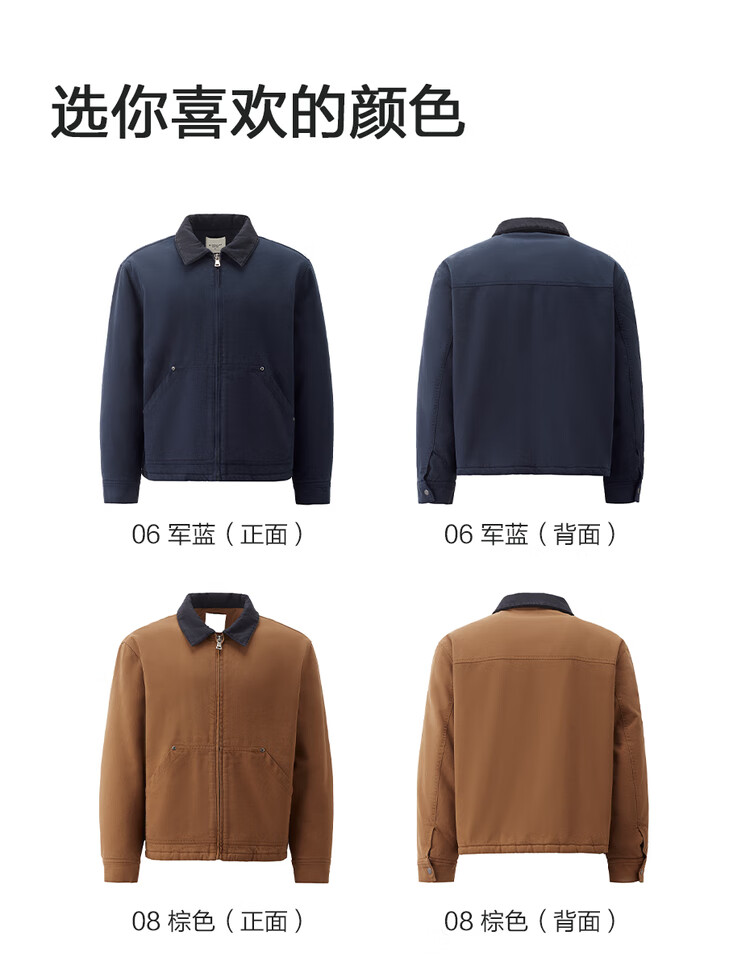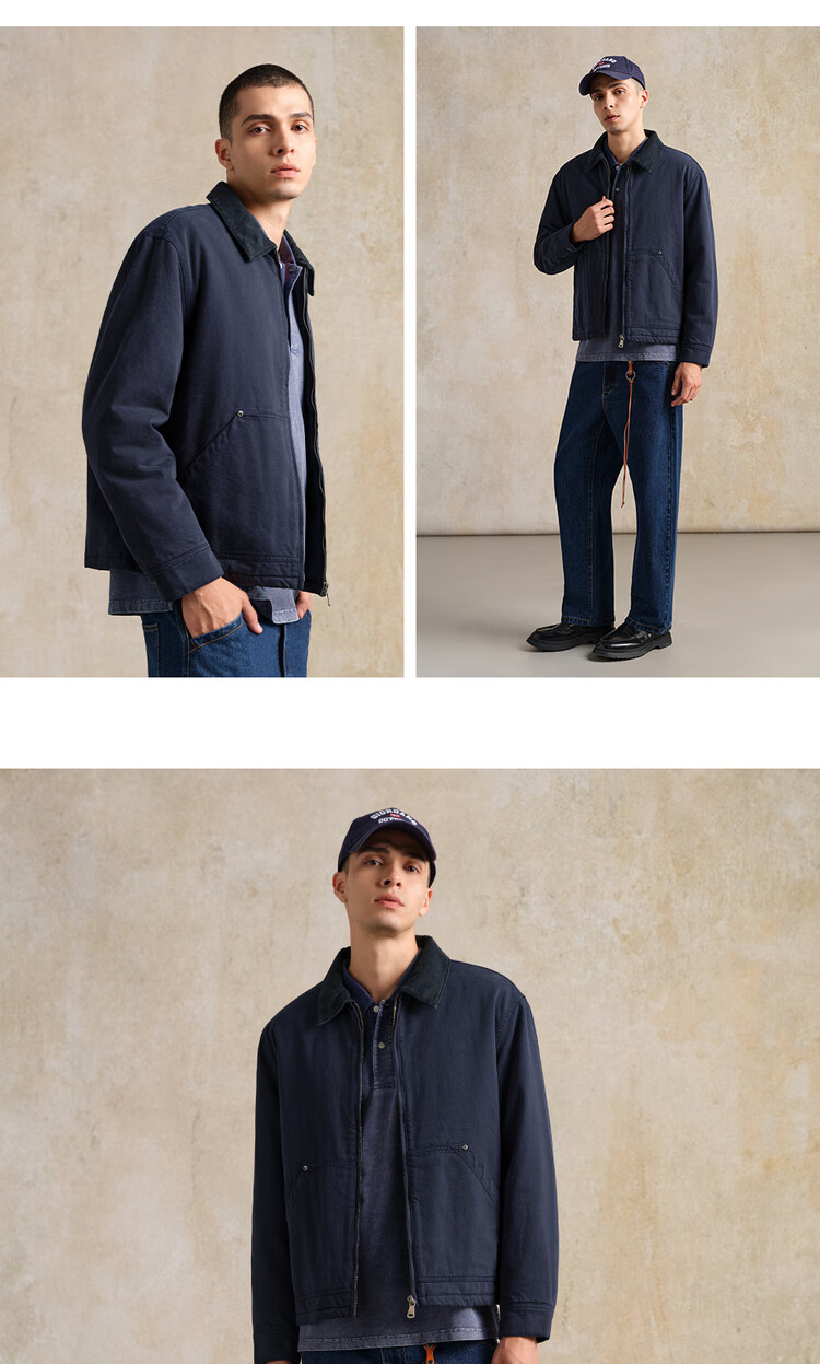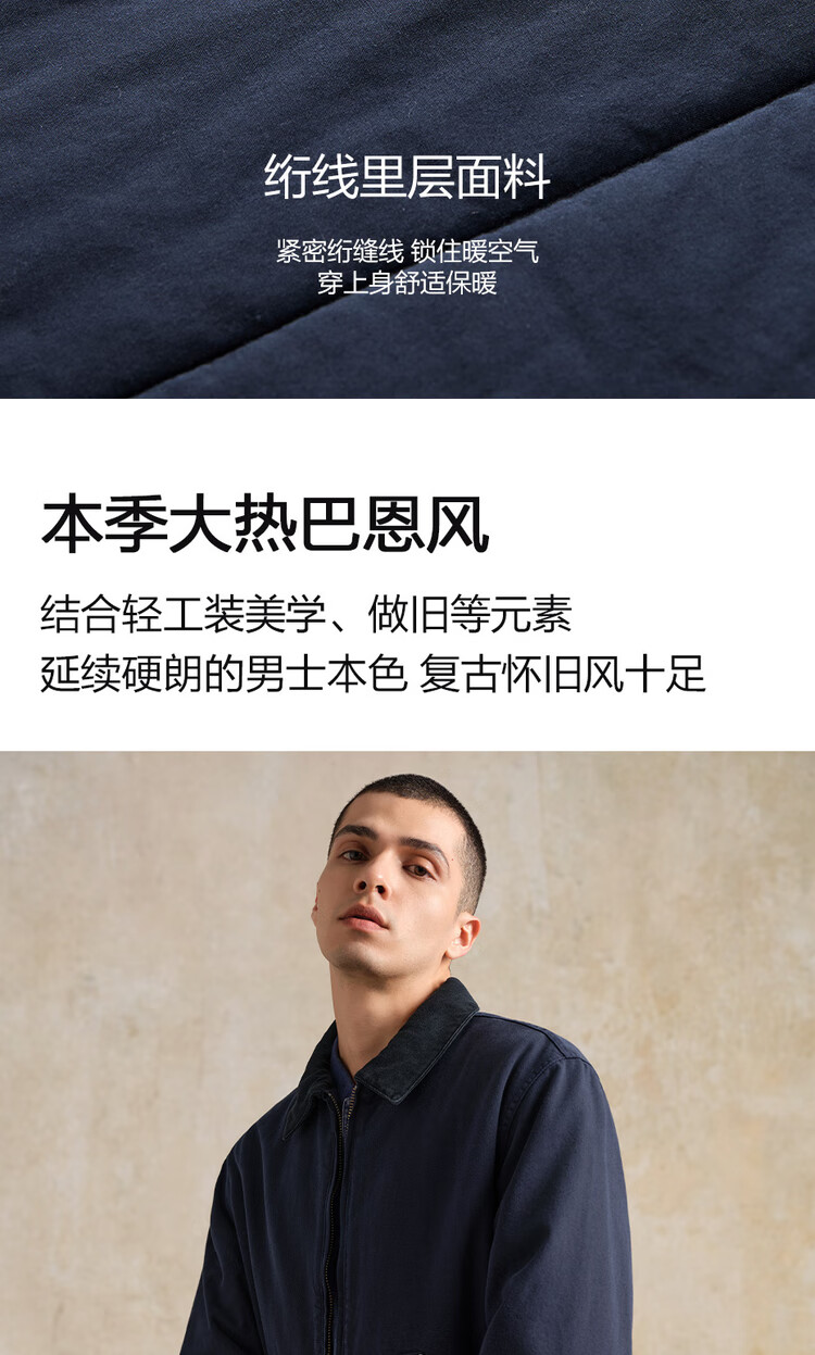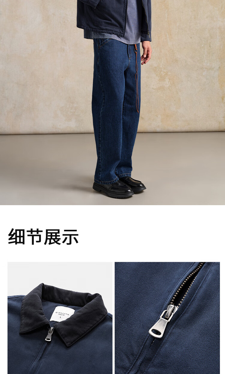 Giordano Designer Cotton Jacket Men's Pure Cotton Bath Style Contrast Color Lapel Cotton Jacket 18075818 06 Army Blue L
