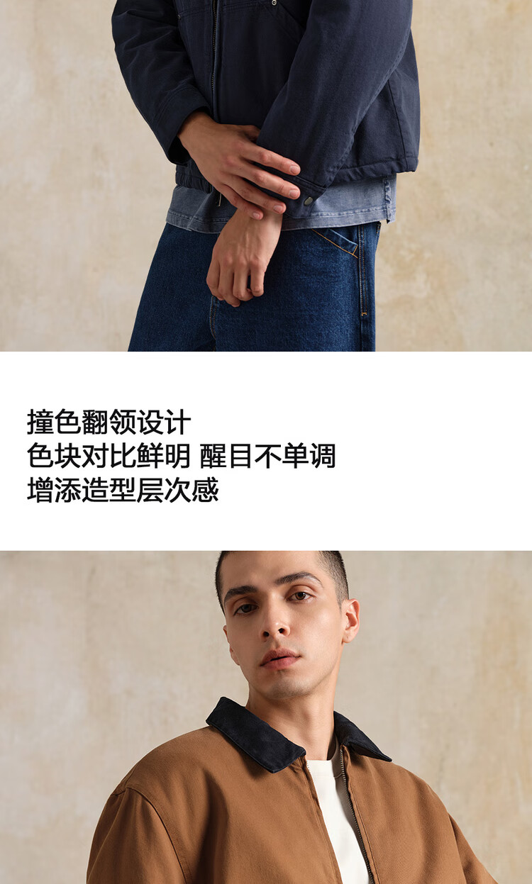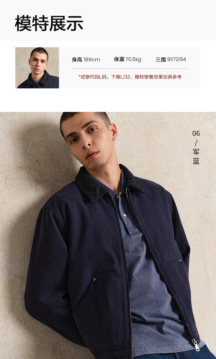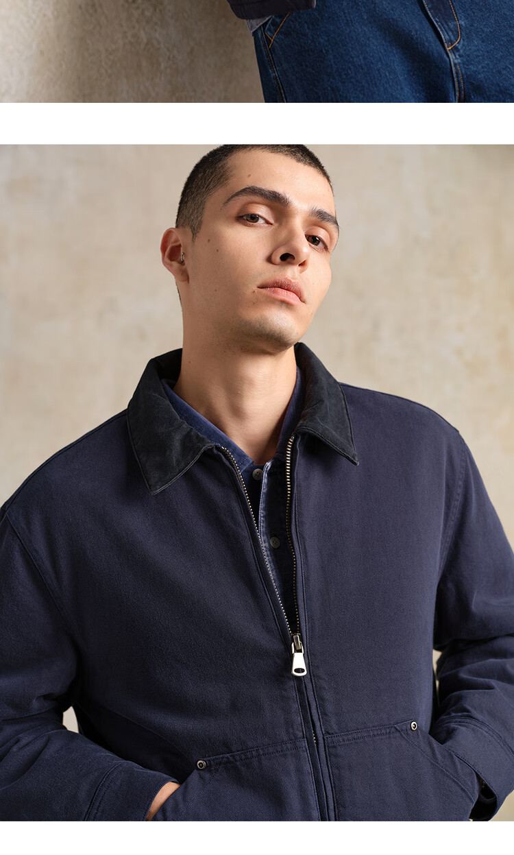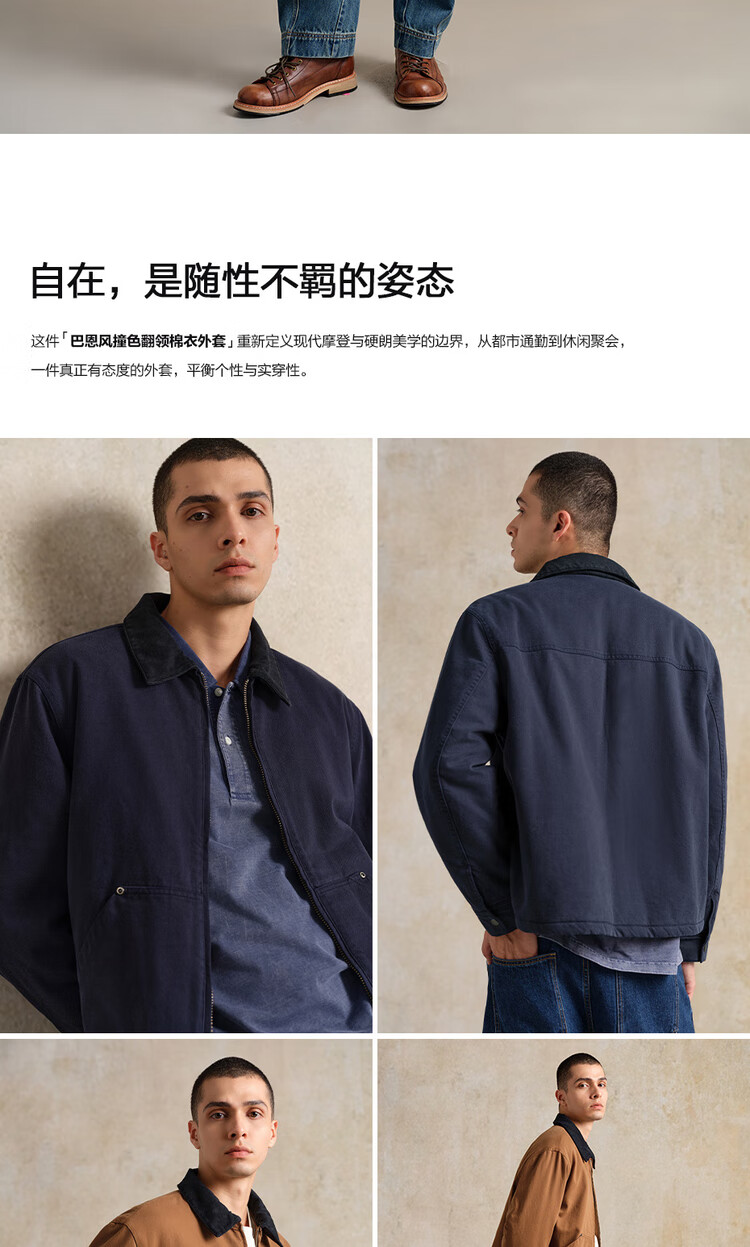 Giordano Designer Cotton Jacket Men's Pure Cotton Bath Style Contrast Color Lapel Cotton Jacket 18075818 06 Army Blue L