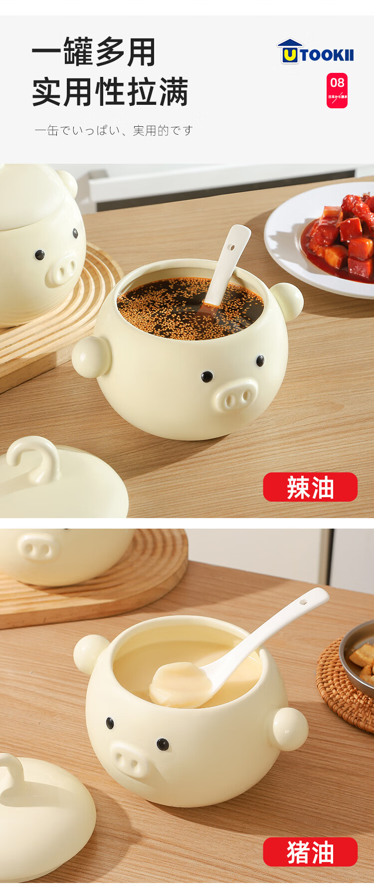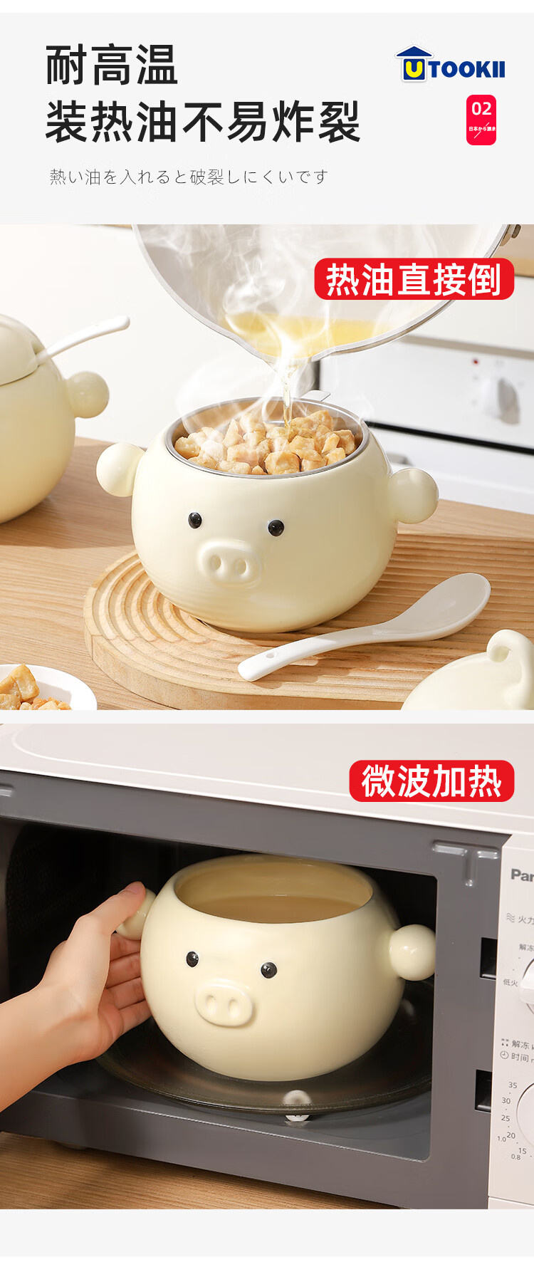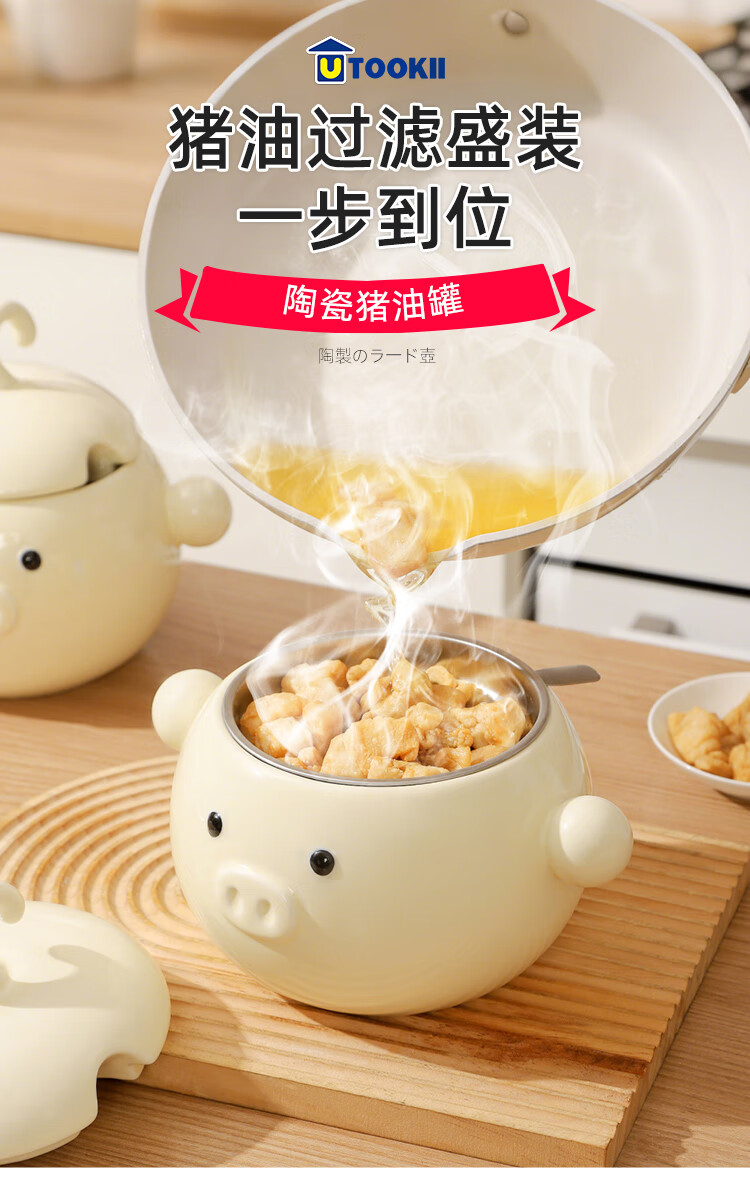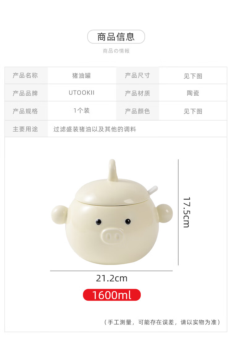 Imakara ceramic lard oil tank food grade high temperature resistant storage tank household tank special container with lid oil basin lard tank ceramic oil storage tank with stainless steel filter + spoon + lid 1600ml