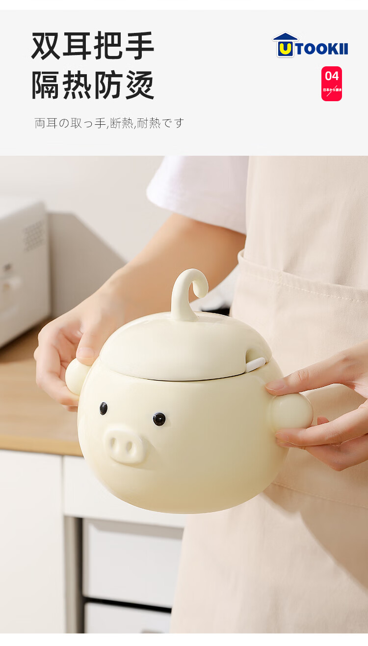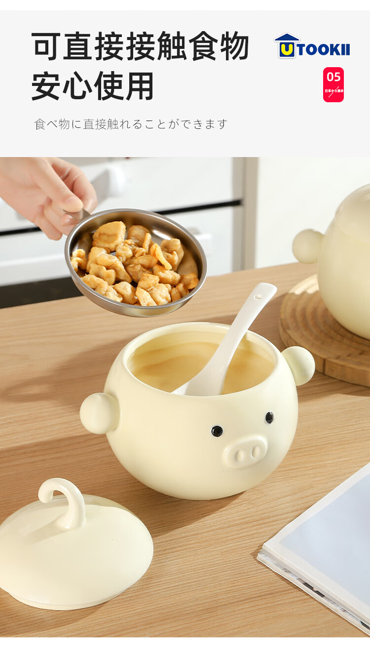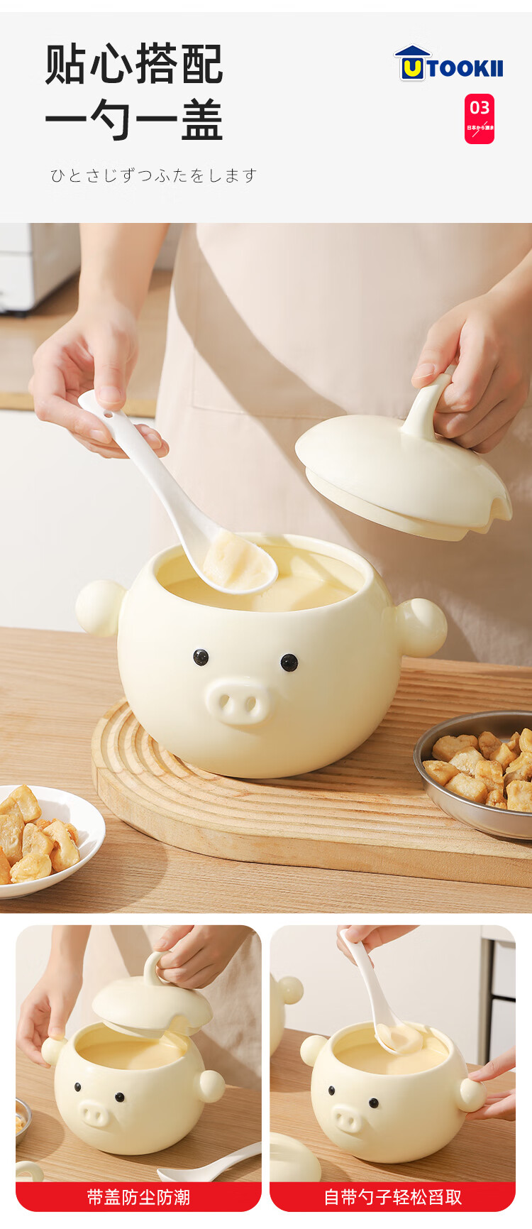 Imakara ceramic lard oil tank food grade high temperature resistant storage tank household tank special container with lid oil basin lard tank ceramic oil storage tank with stainless steel filter + spoon + lid 1600ml