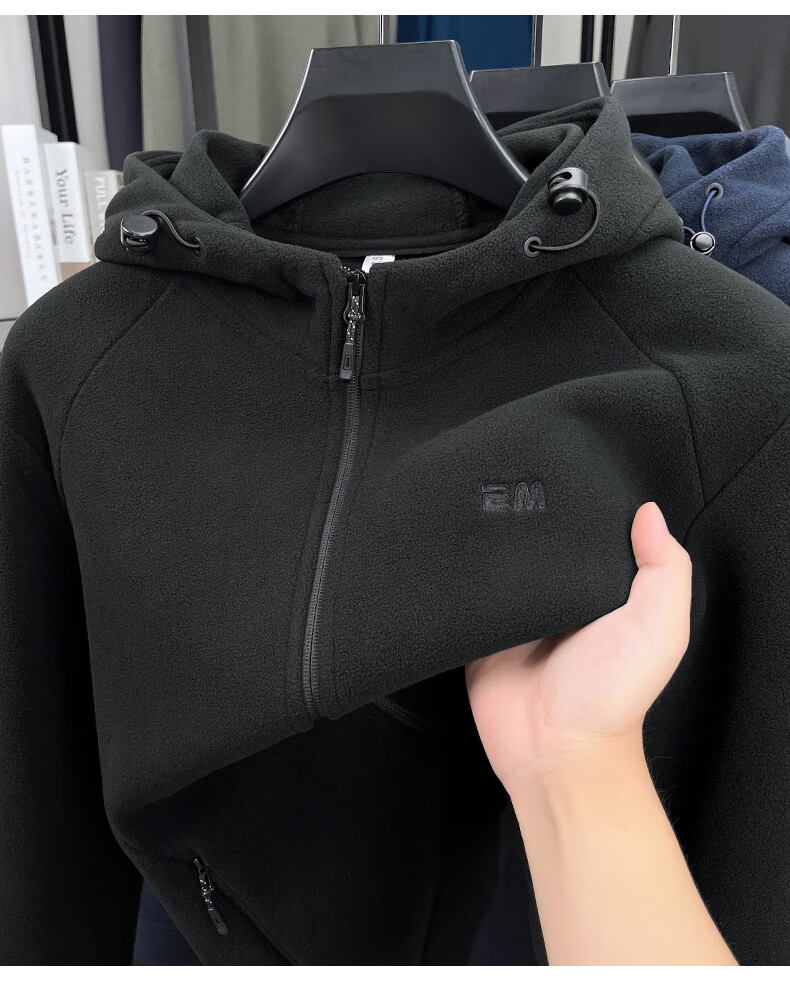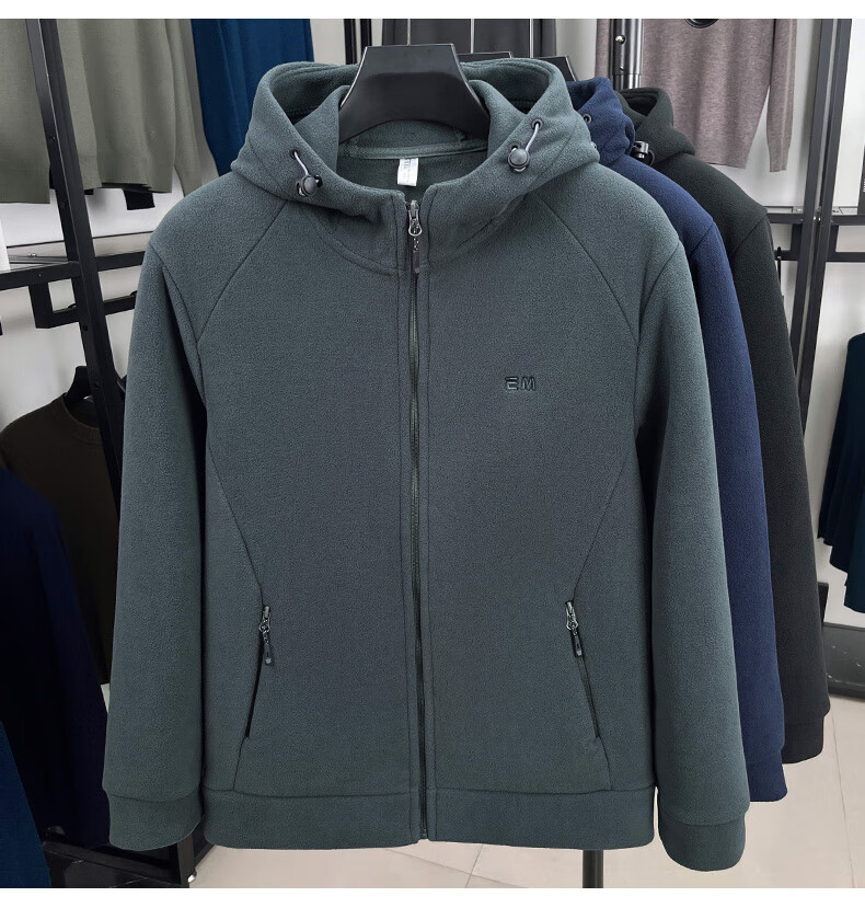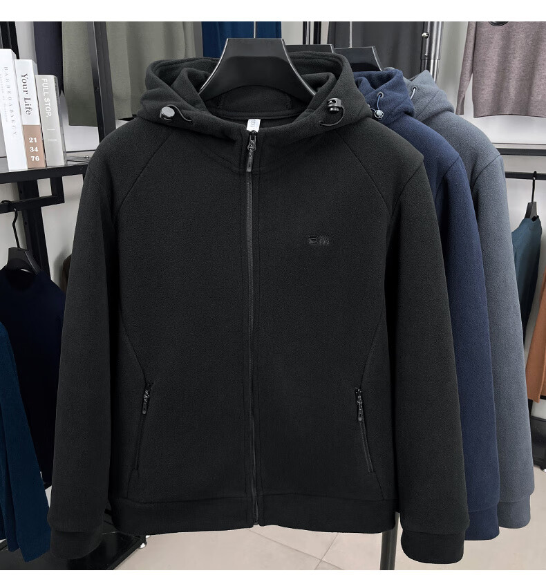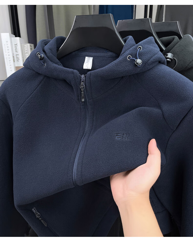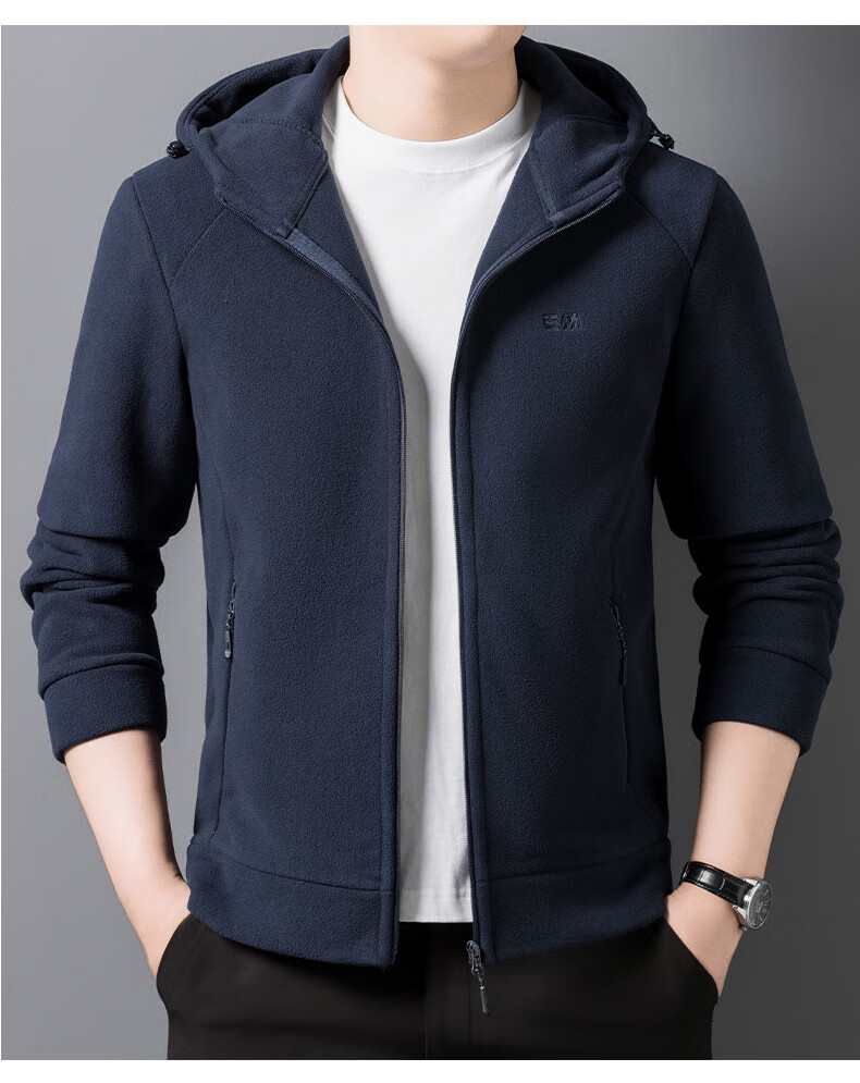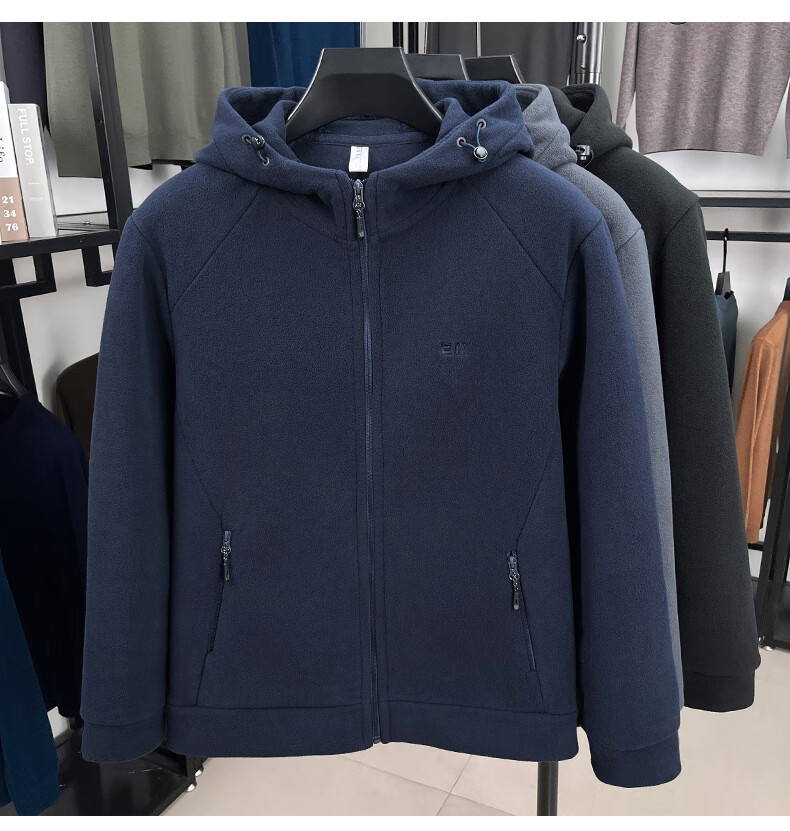 Hengyuanxiang hooded cardigan sweatshirt men's polar fleece fleece jacket liner long-sleeved sports zipper jacket jacket new navy blue 2XL 100-130Jin Jin equals 0.5 kg