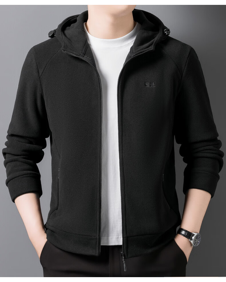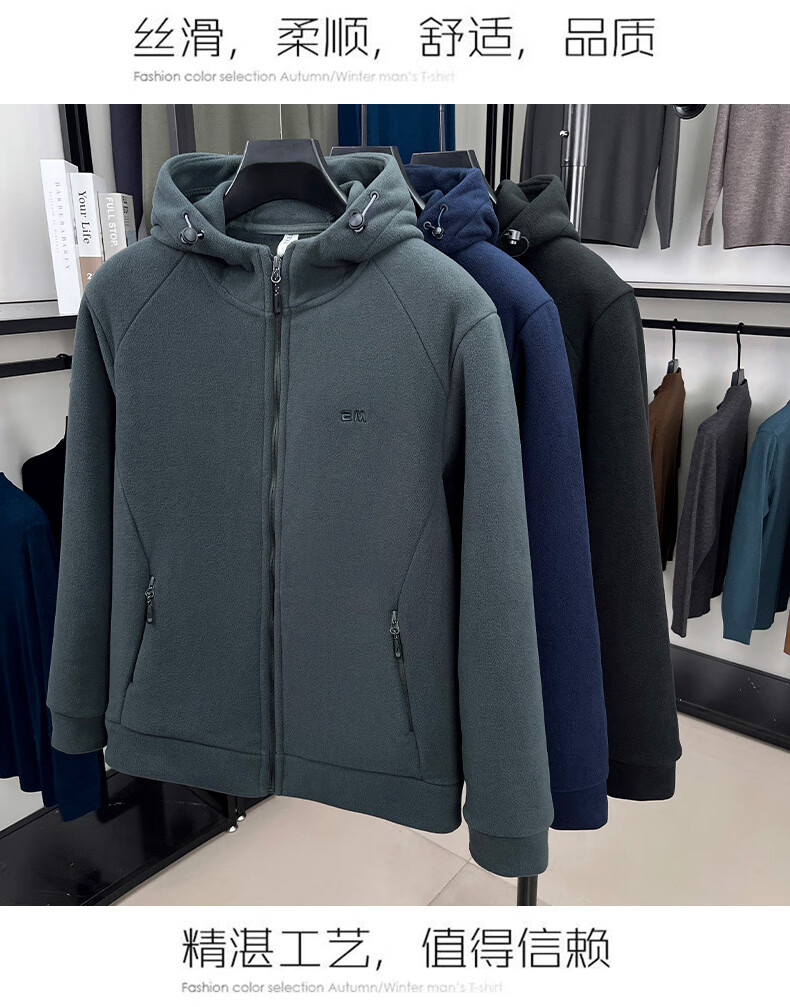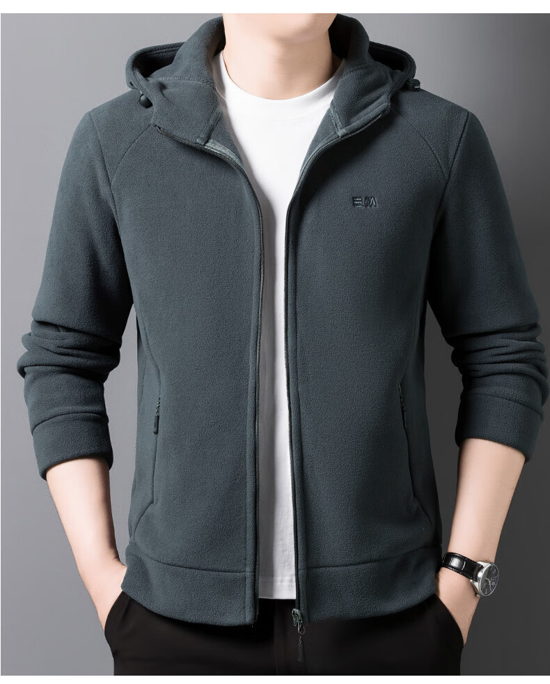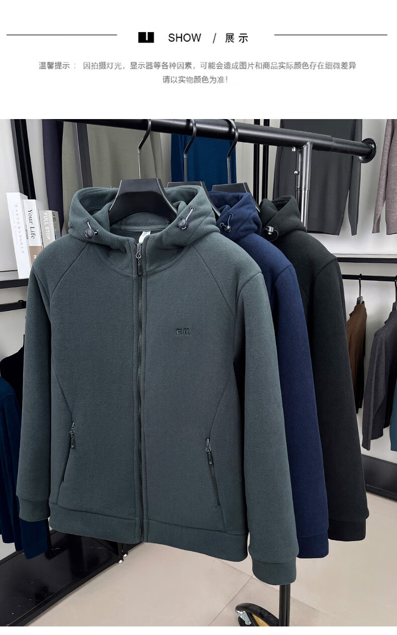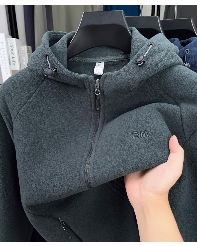 Hengyuanxiang hooded cardigan sweatshirt men's polar fleece fleece jacket liner long-sleeved sports zipper jacket jacket new navy blue 2XL 100-130Jin Jin equals 0.5 kg