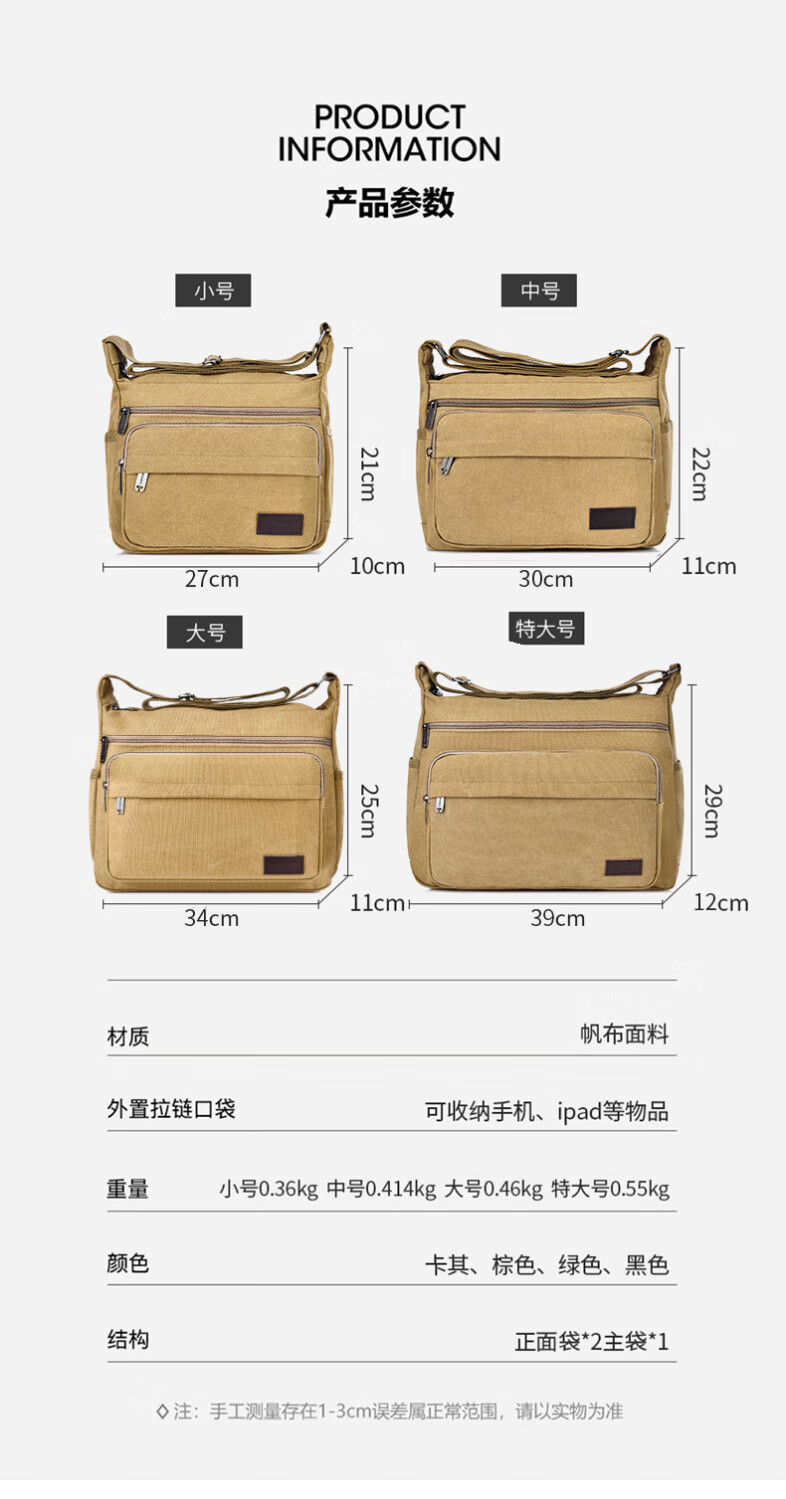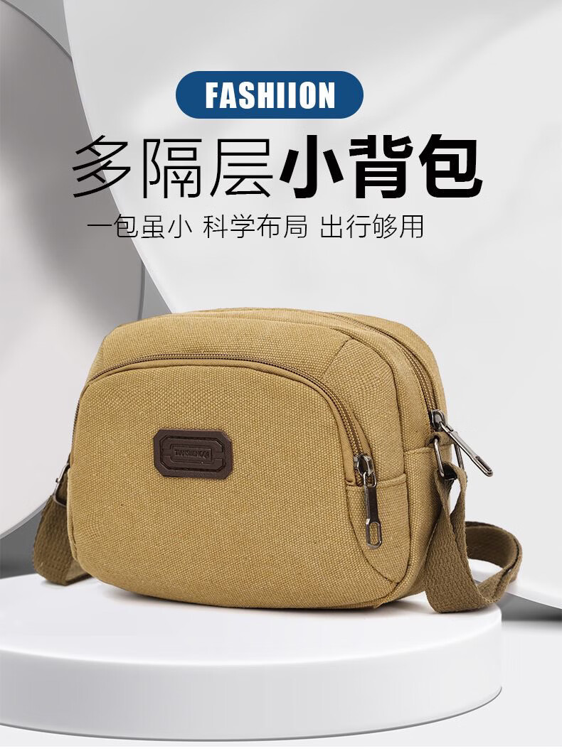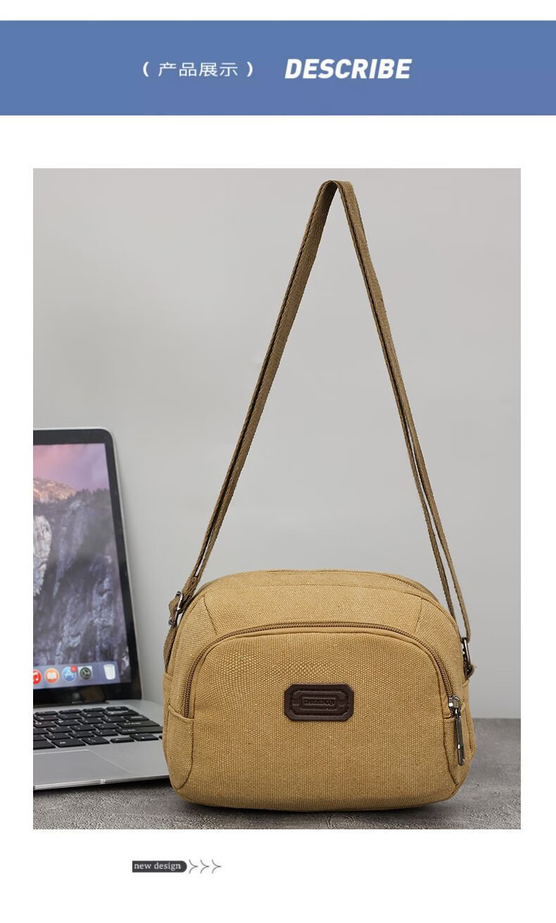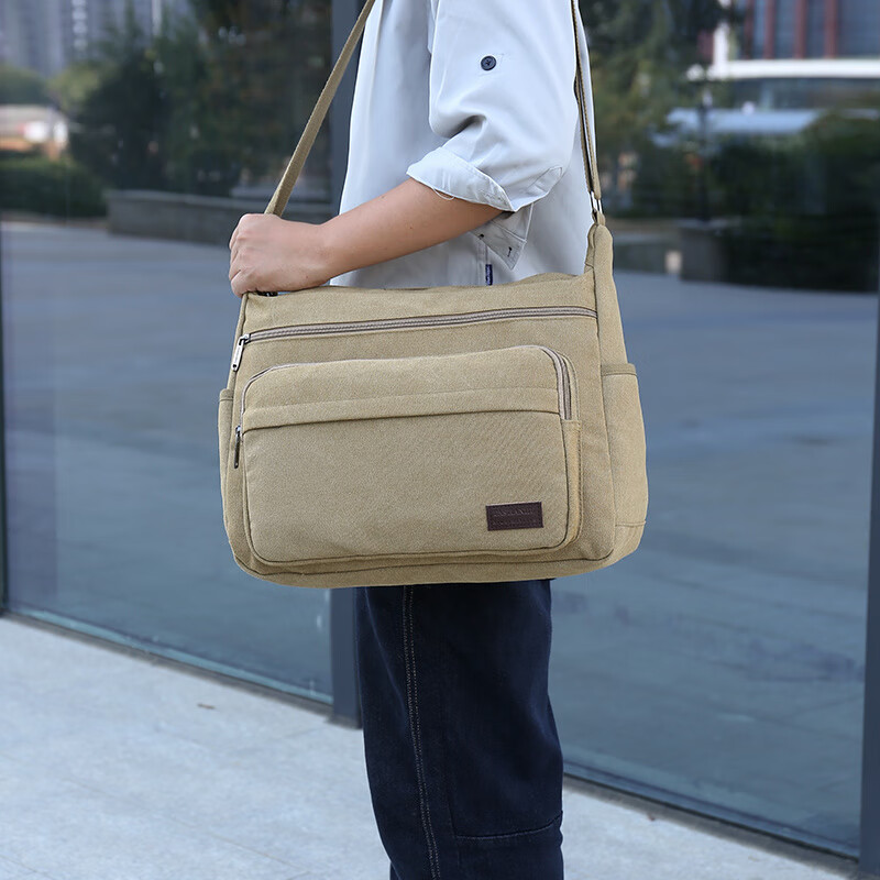 Vinoa men's canvas bag single shoulder crossbody bag multi-layer large capacity labor protection tool bag electrician tool bag durable business trip bag extra large military green